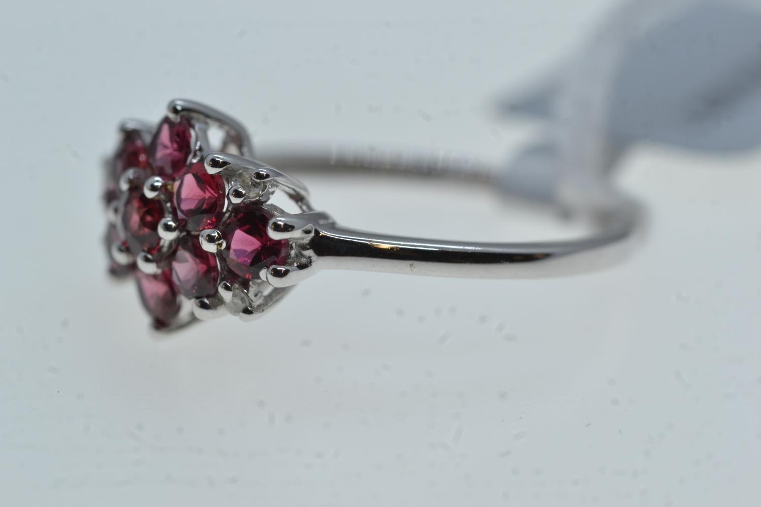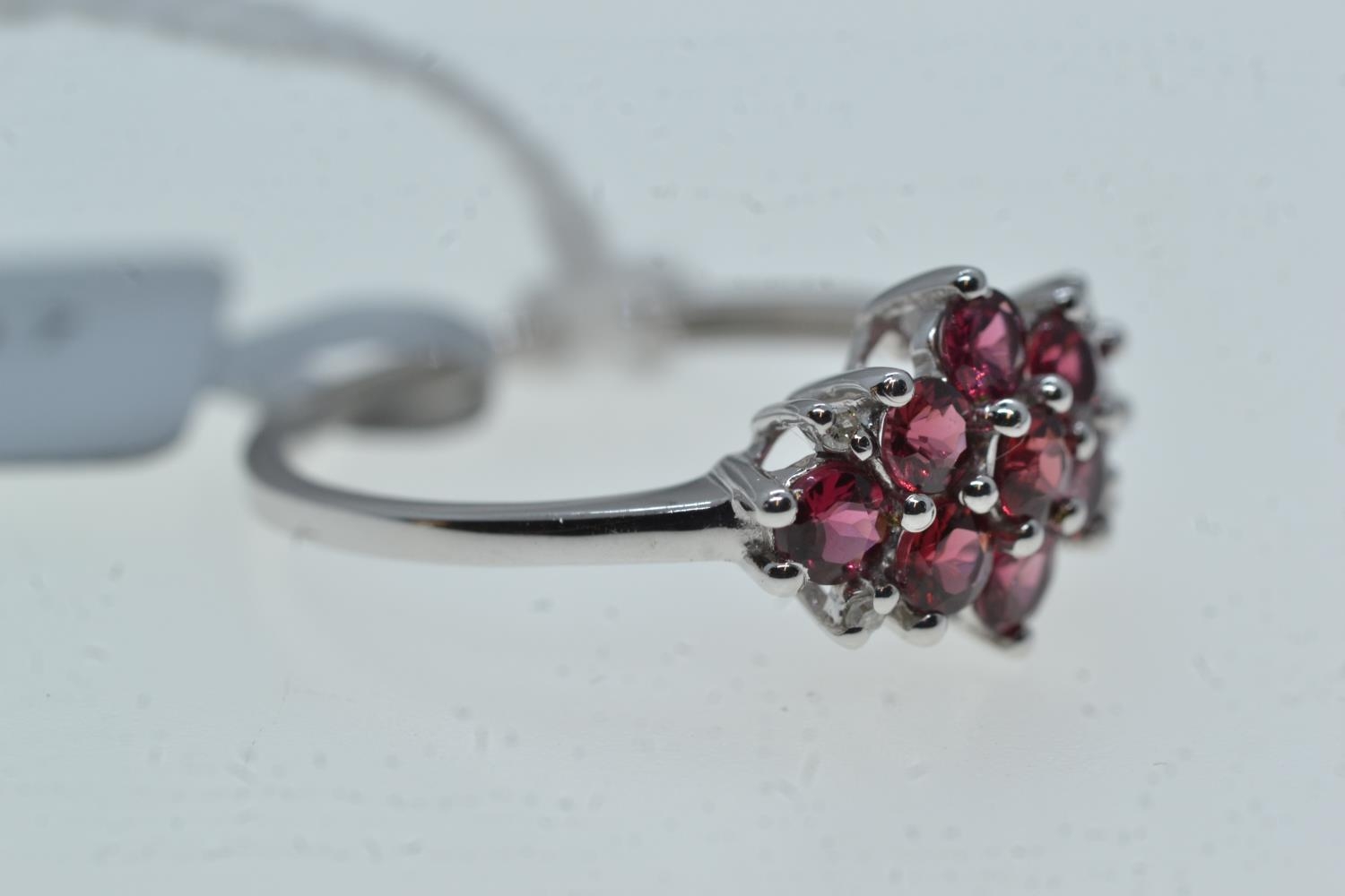 10ct white gold & red stone cluster ring, size O, 2.42 g...