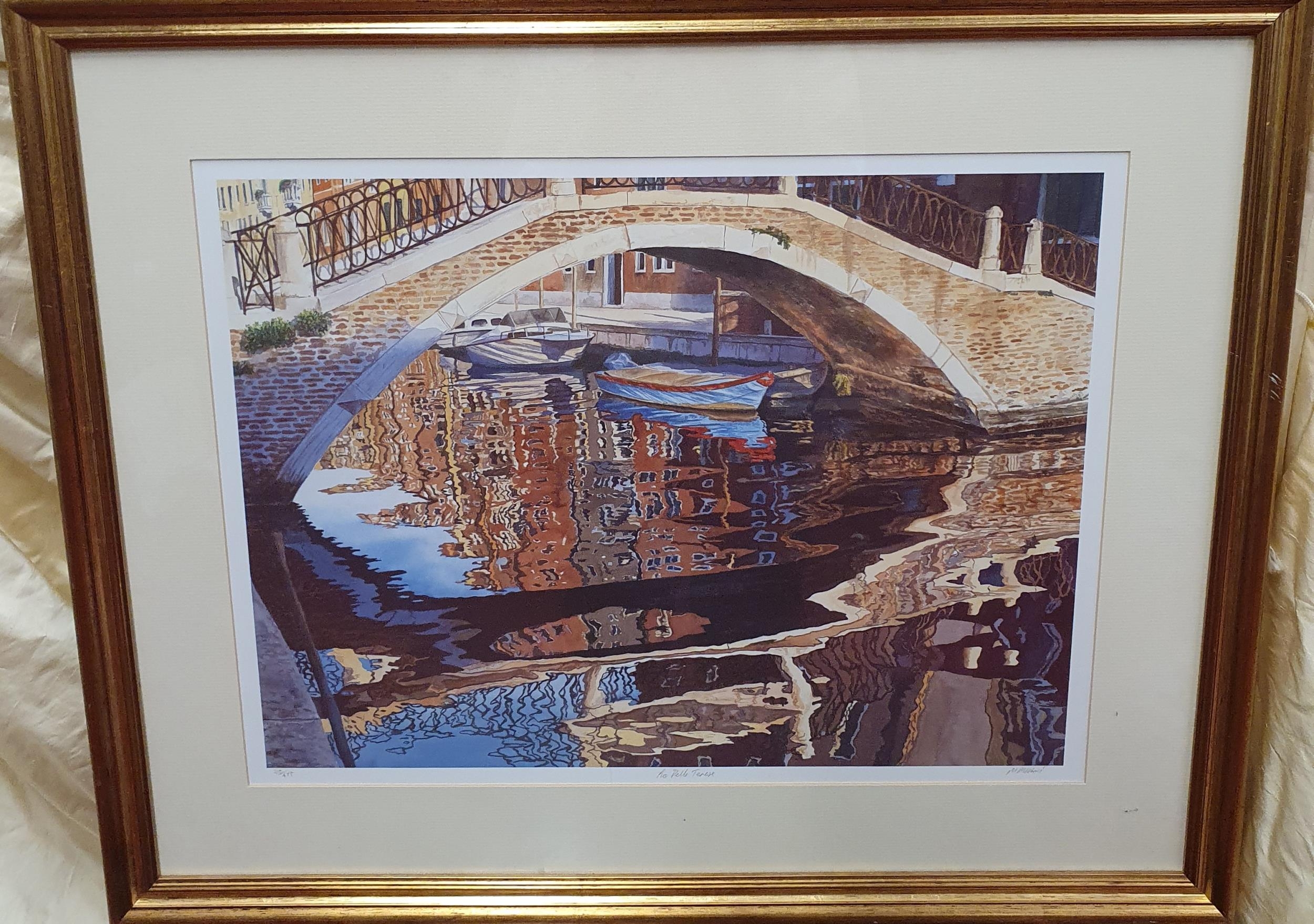 A limited edition coloured Print of a Venetian scene after Michael McDonagh Wood. Rio Delle Teresse. 40 x 53 cms approx.