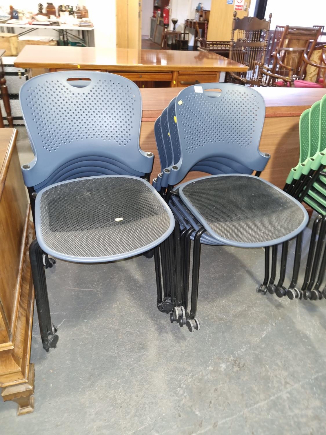 Nine grey/ blue Herman Miller- mesh seat stacking meeting chairs