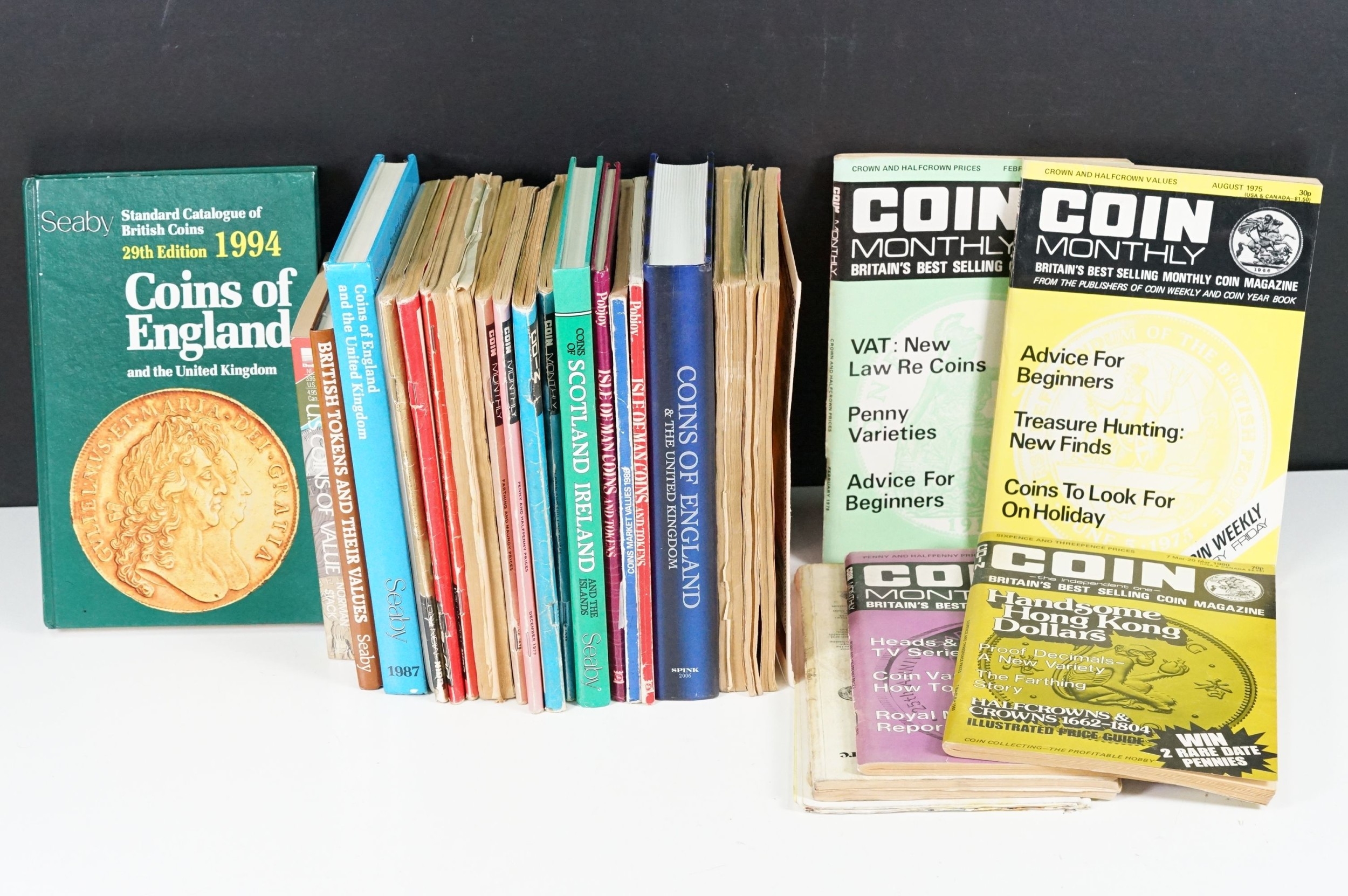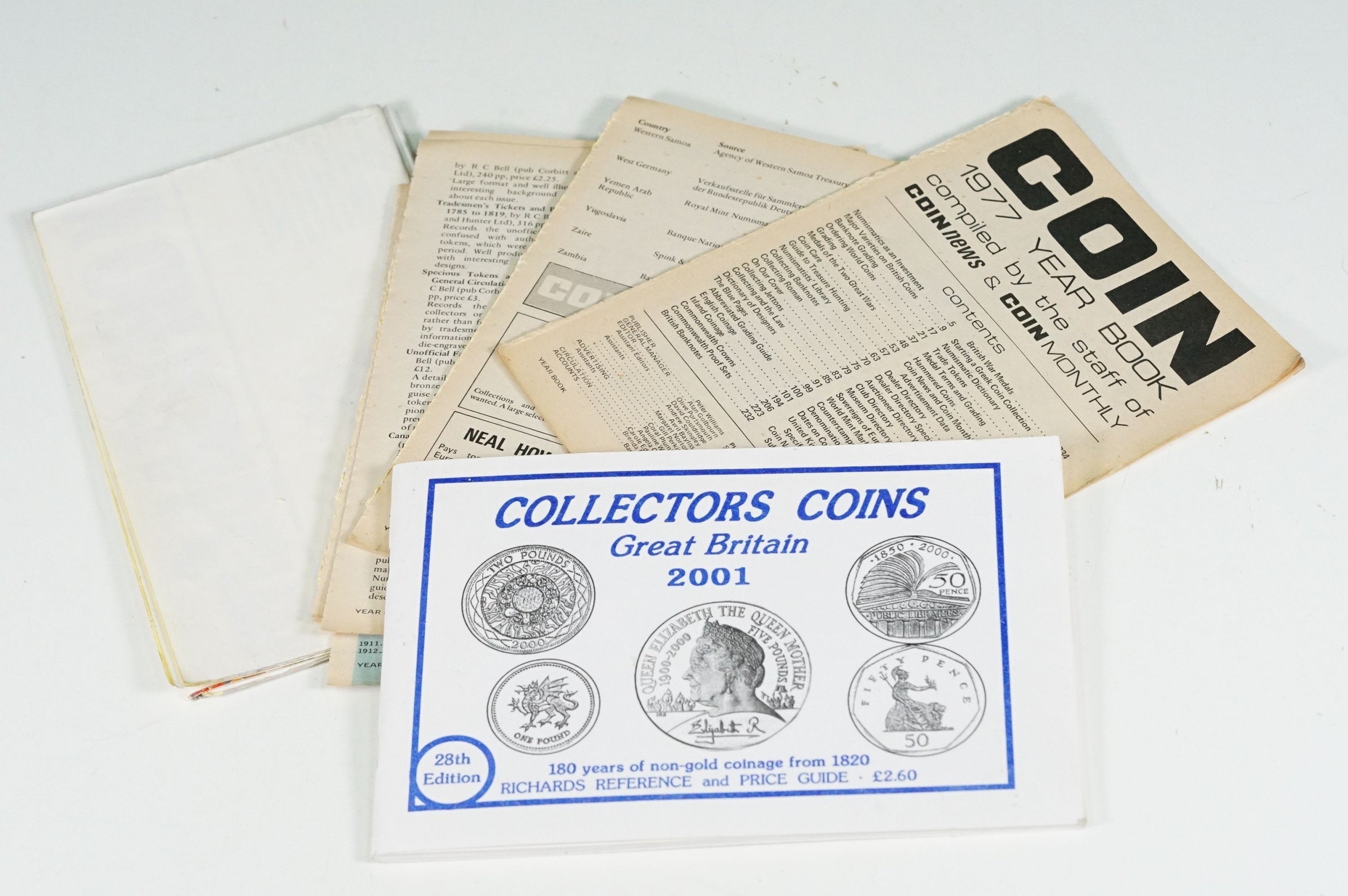 A collection of mixed coin related books and ephemera to include price guides and magazines.