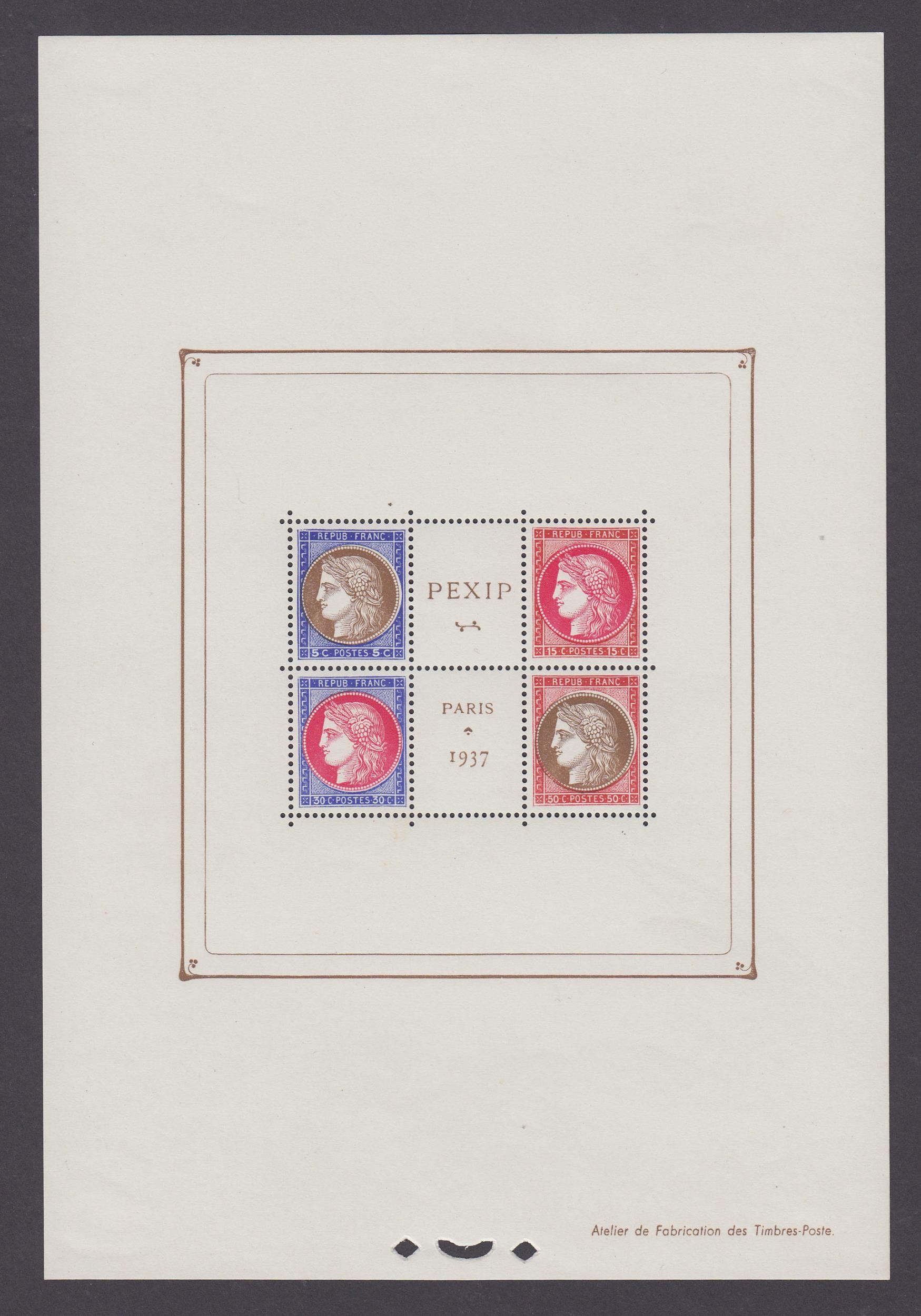 1937 Ceres Paris PEXIP mini sheet, lightly mounted in corners, MiBl3, SG MS58, Cat €800
