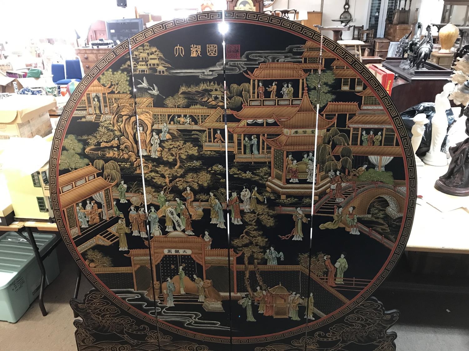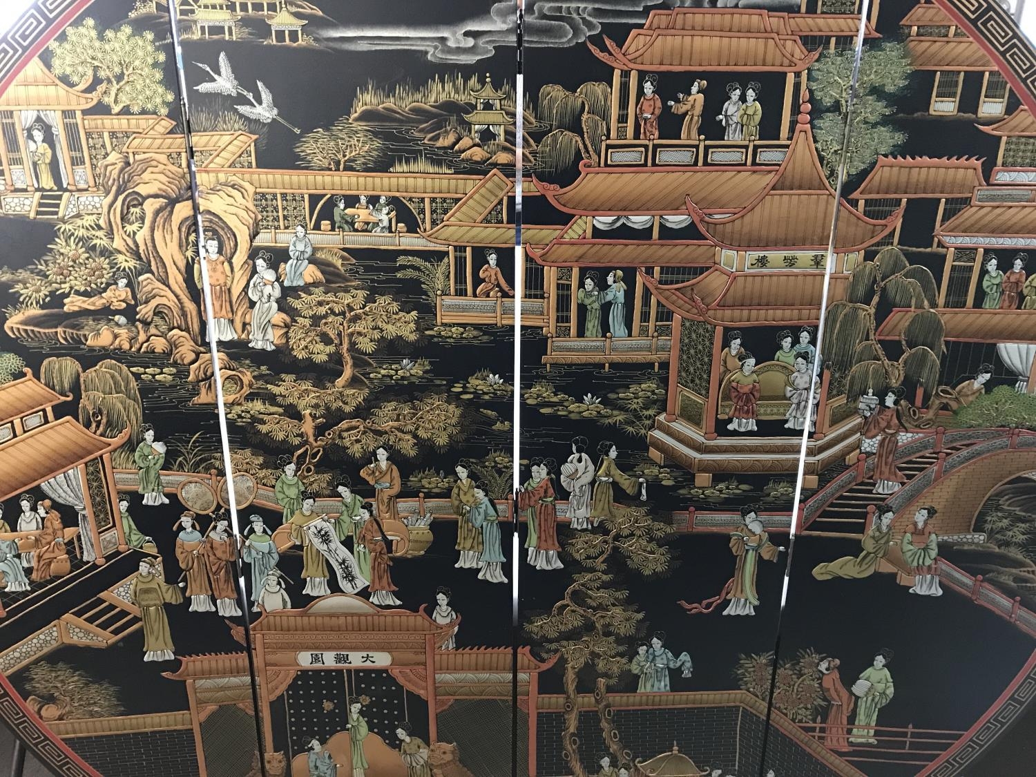 Chinese painted folding circular screen. Approximately 170cm wide by 185cm high.