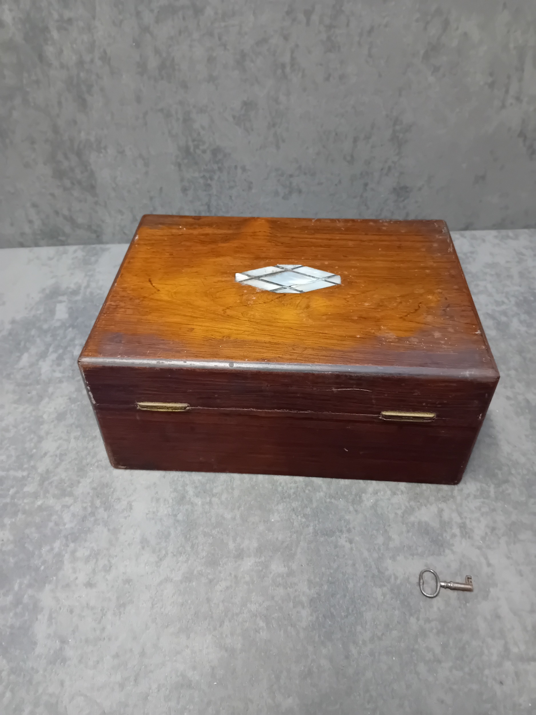 Antique 19th Century Mother of pearl Ladies Jewelry box with key as pictured