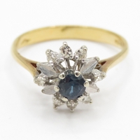 9ct gold diamond and yellow sapphire cluster ring (2.8g) Size T