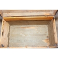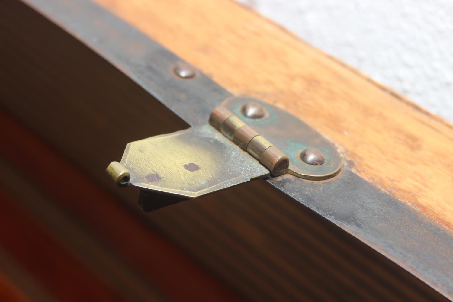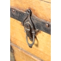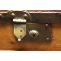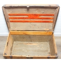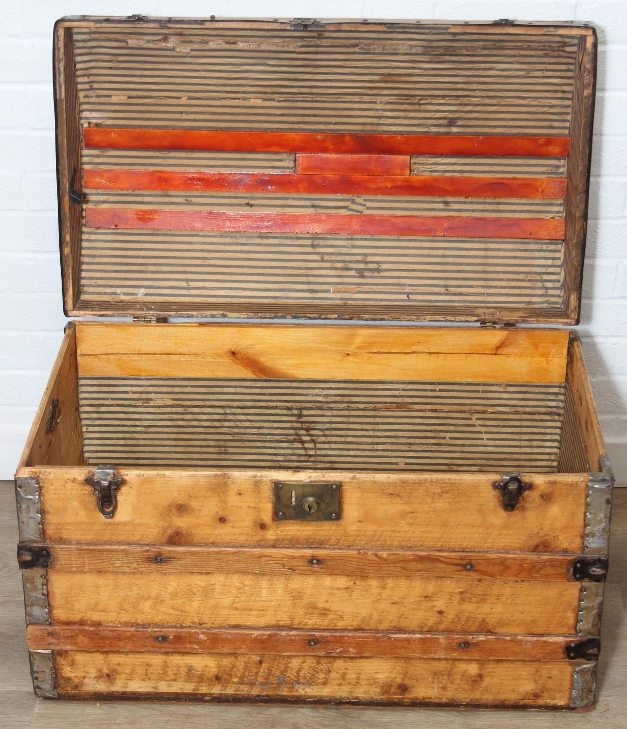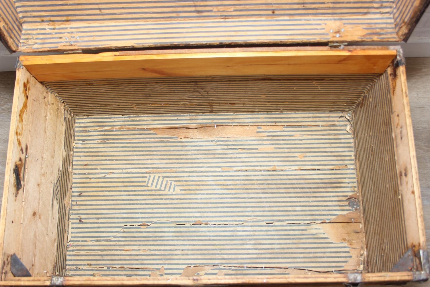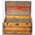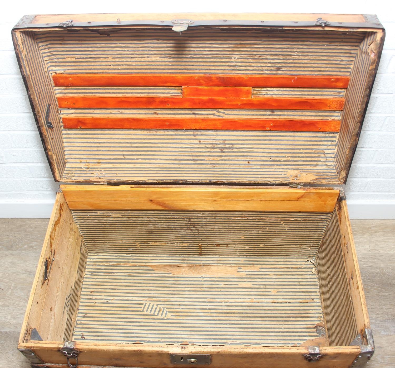 An antique stripped pine dome topped trunk with iron fittings, 83cm x 46cm x 54cm
