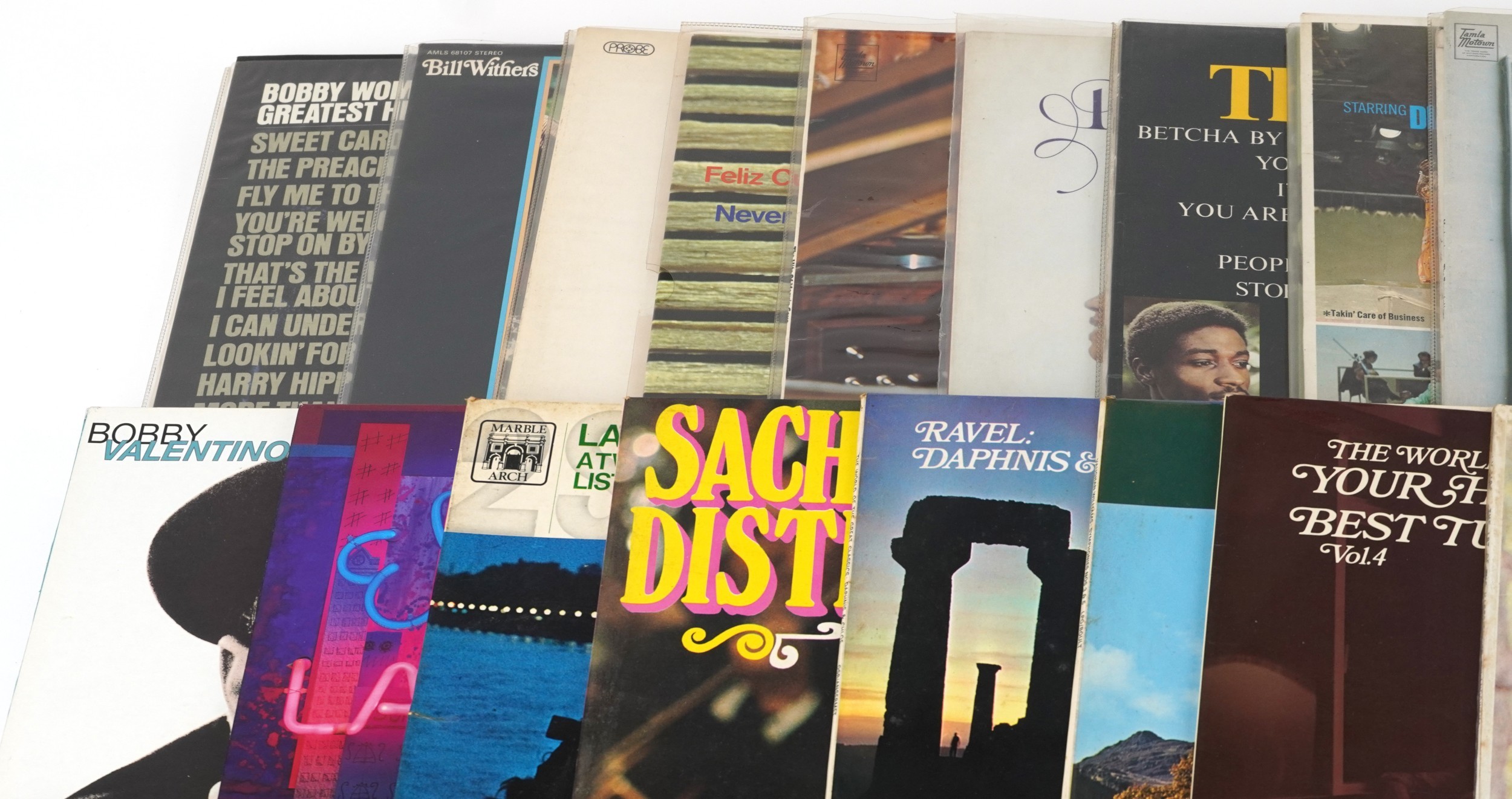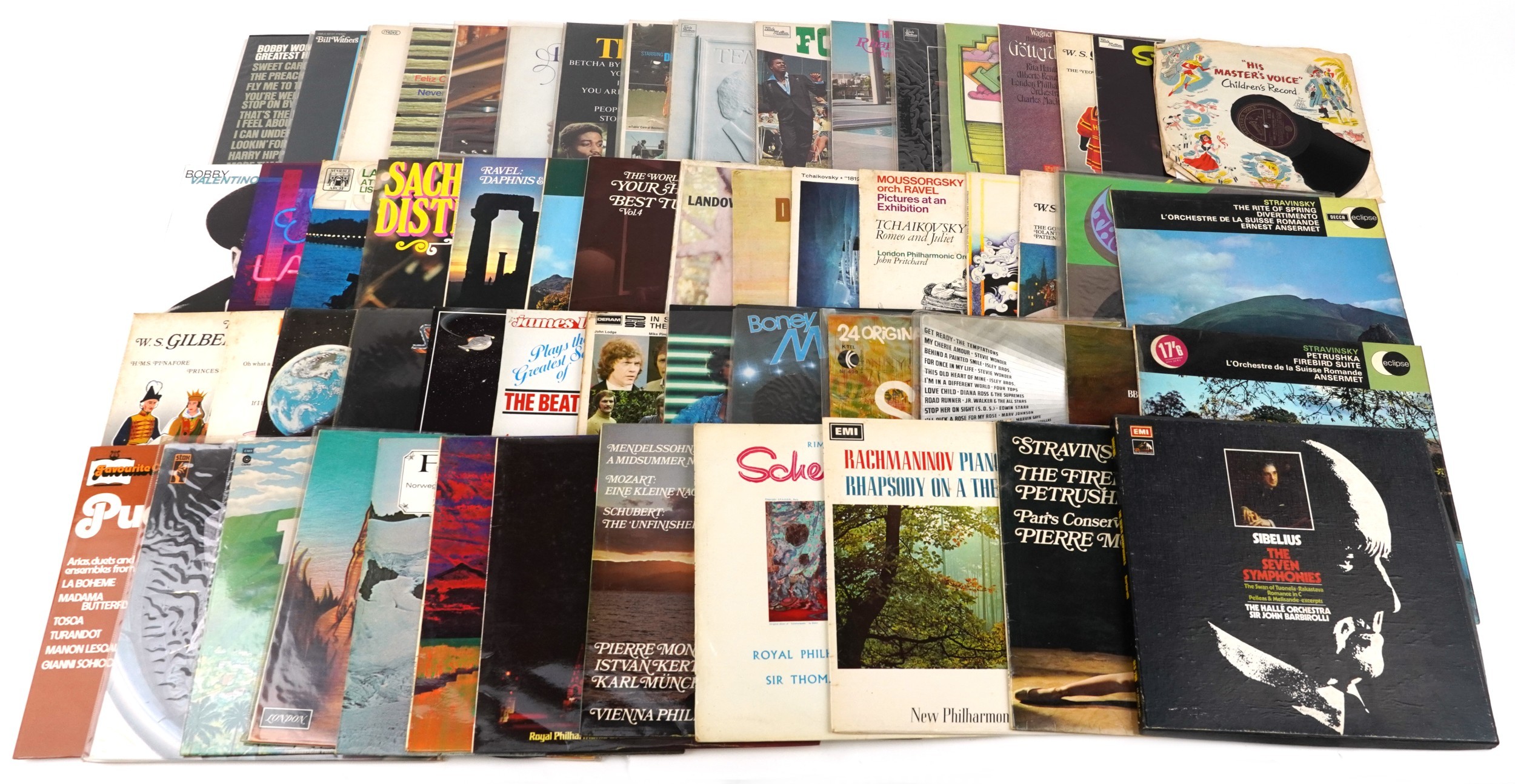 Vinyl LP records including ABBA, Mainstreet People, The Temptations, Barry White and Stevie Wonder.