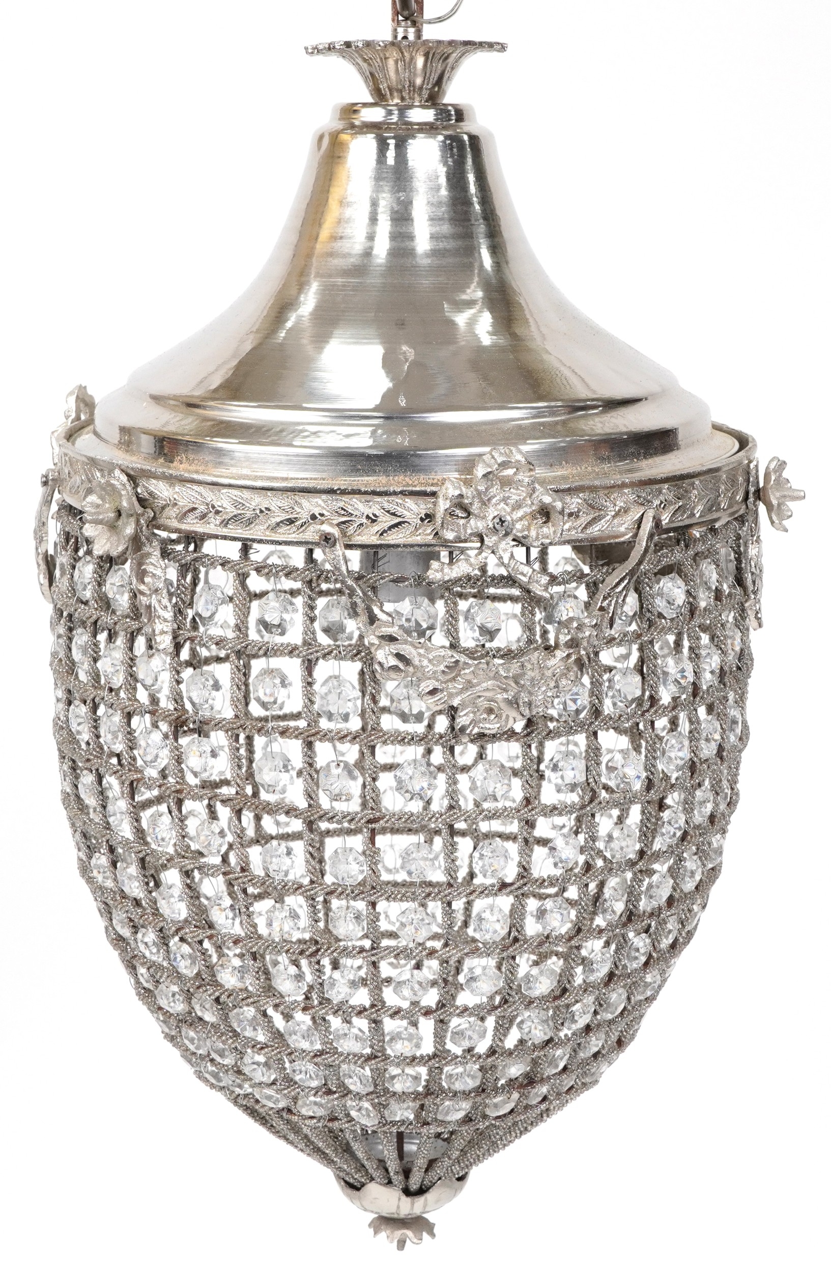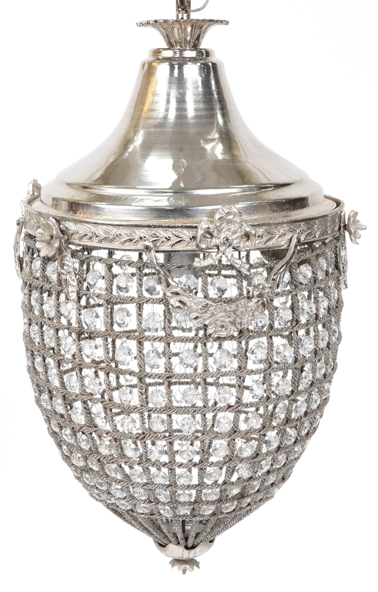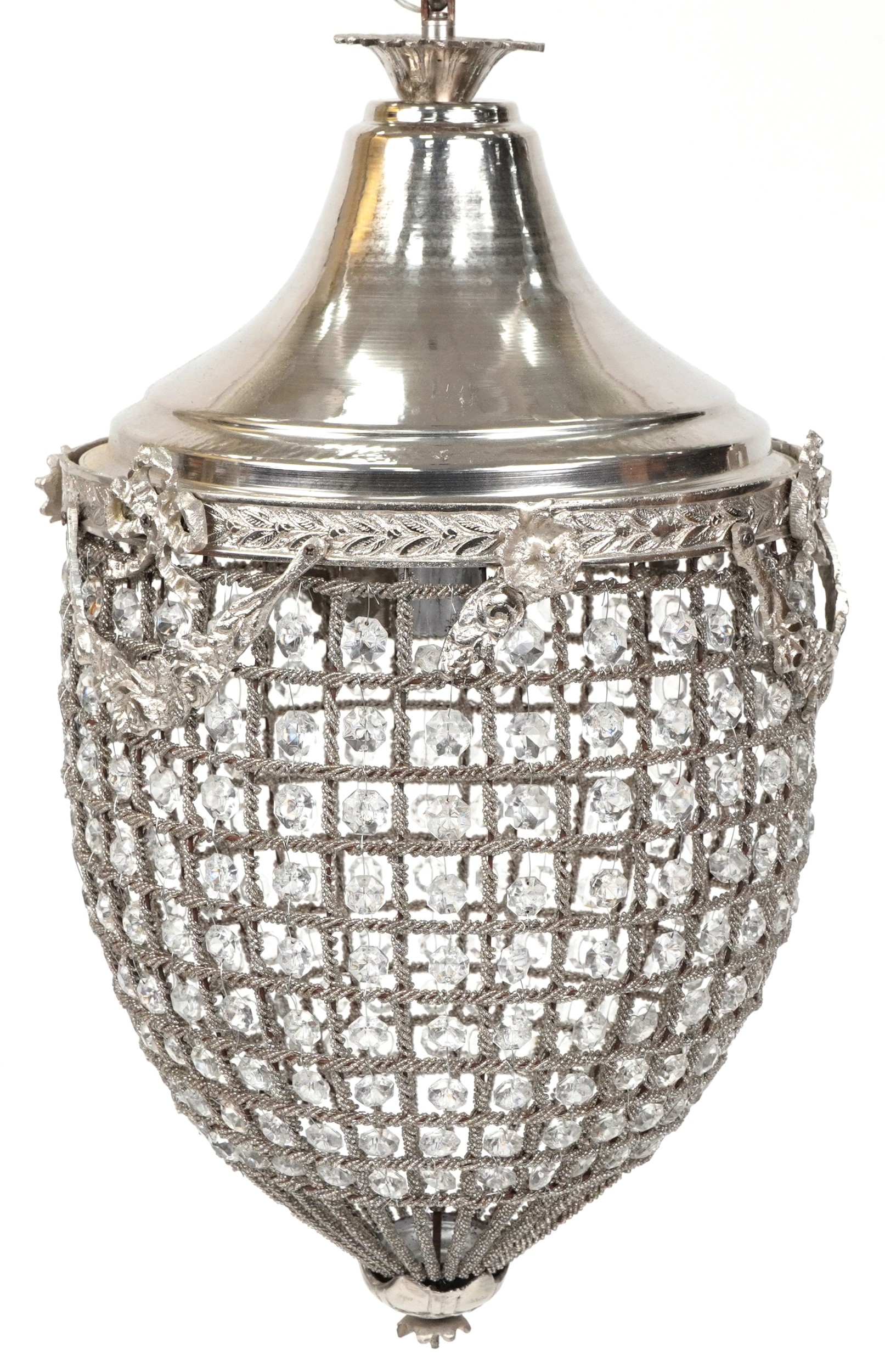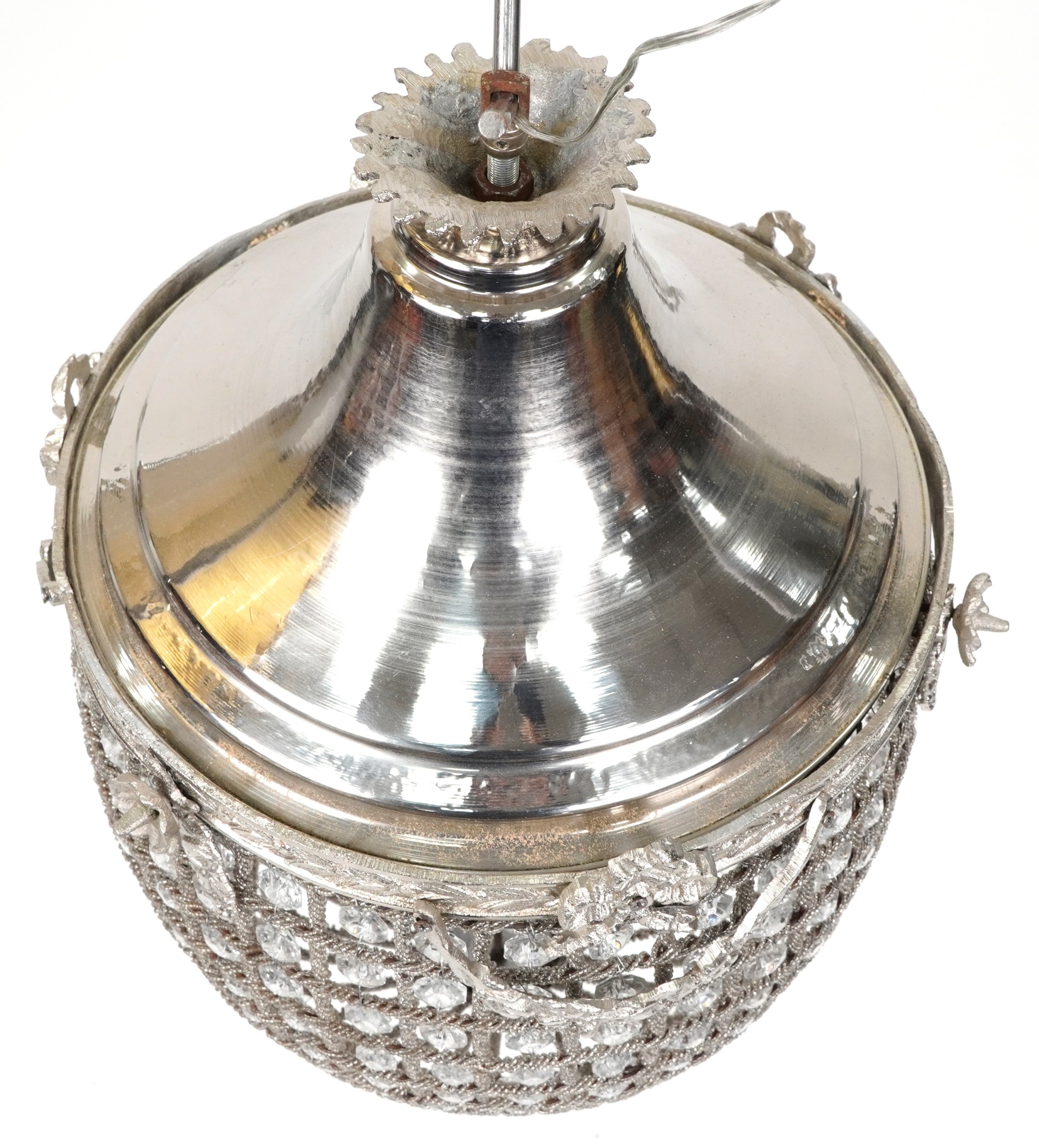 A modern silvered metal ceiling light, H-60cm.