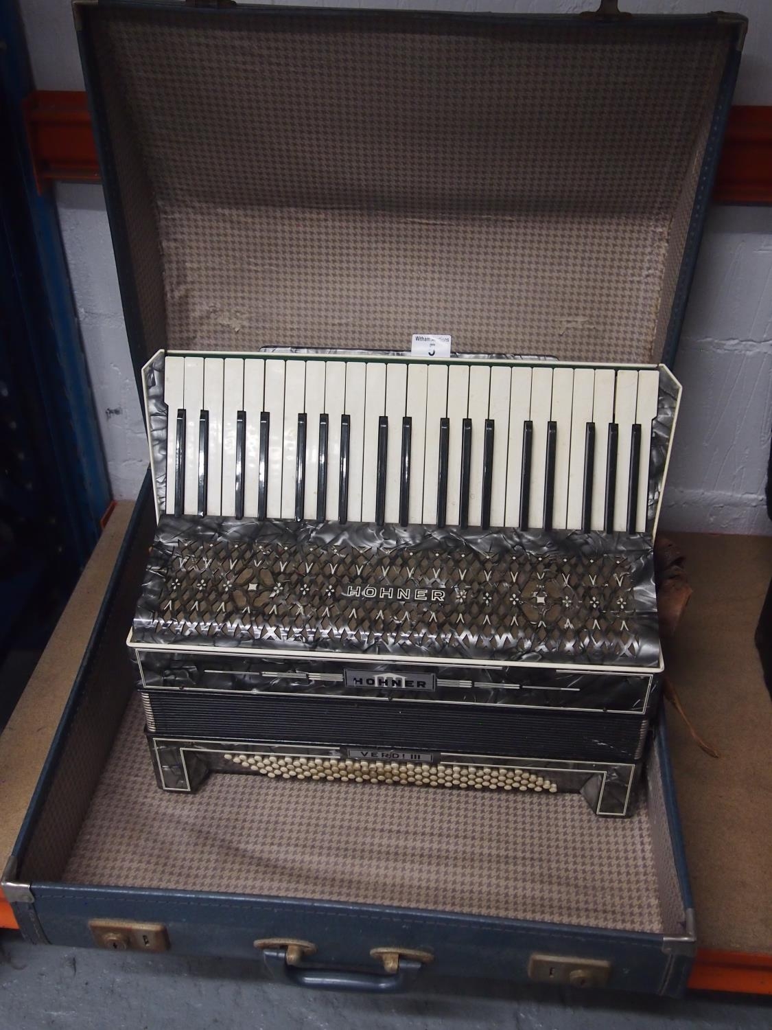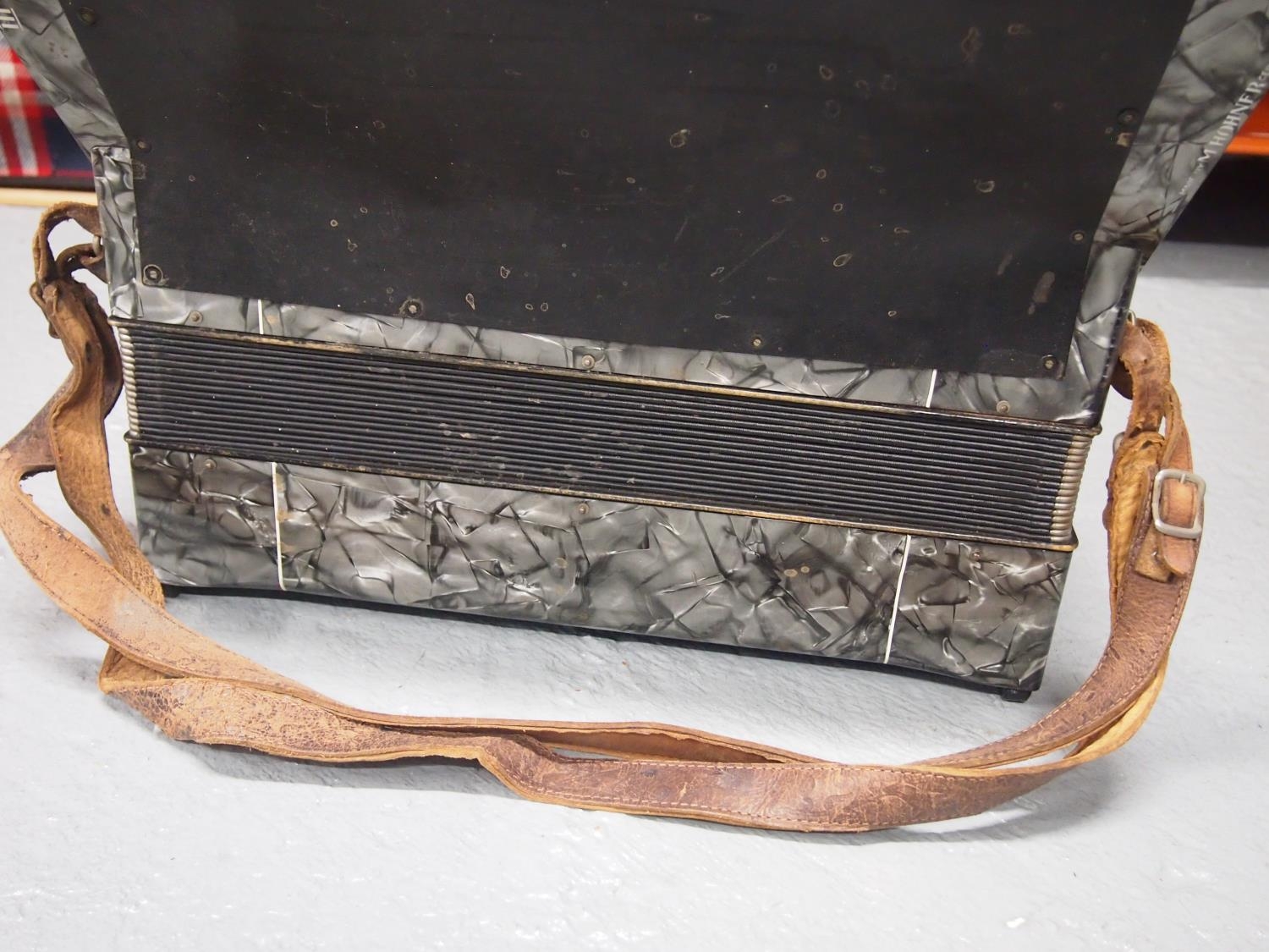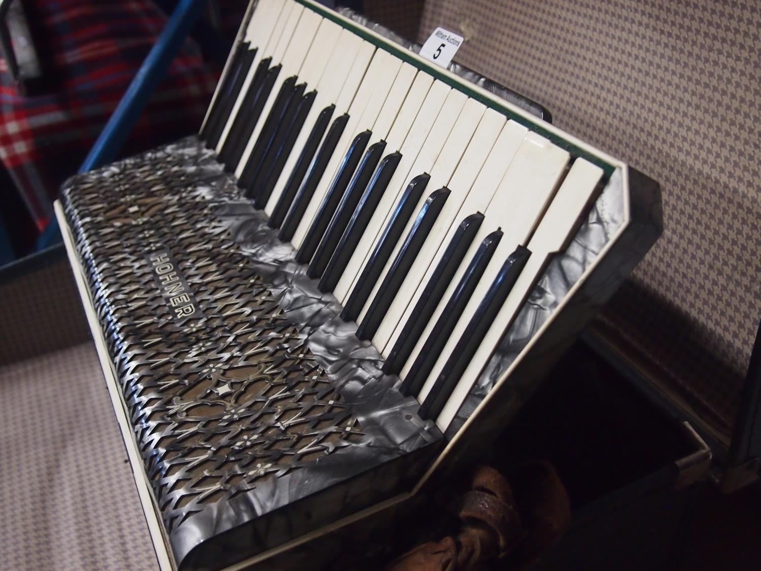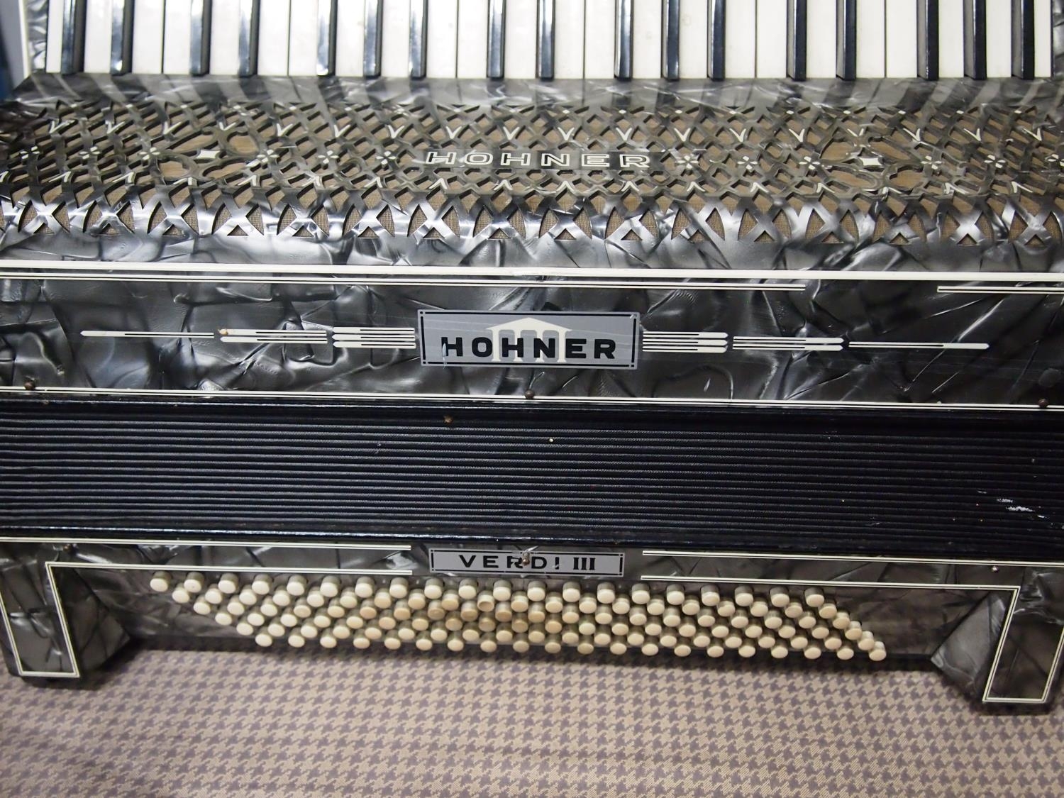 Hohner Verdi III B, vintage piano accordion with case and straps, finished in a mother of pearl effect design, 120 Bass, 41 keys