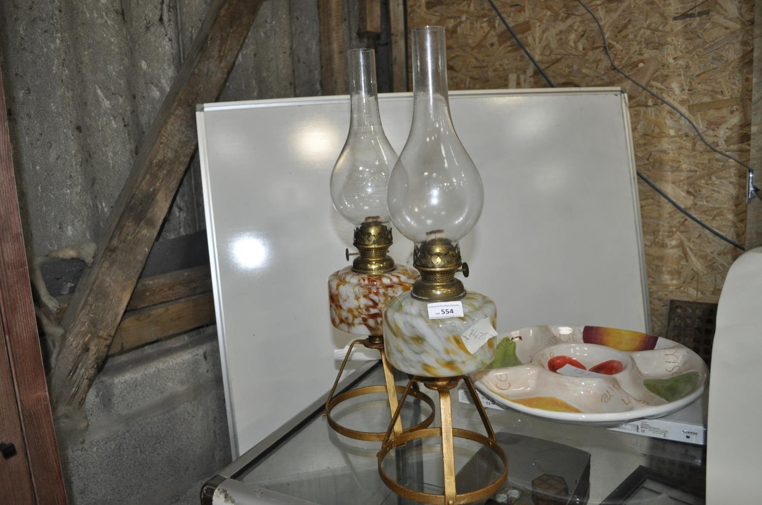 PAIR OF RARE GLASS OIL LAMPS AND FLUES
