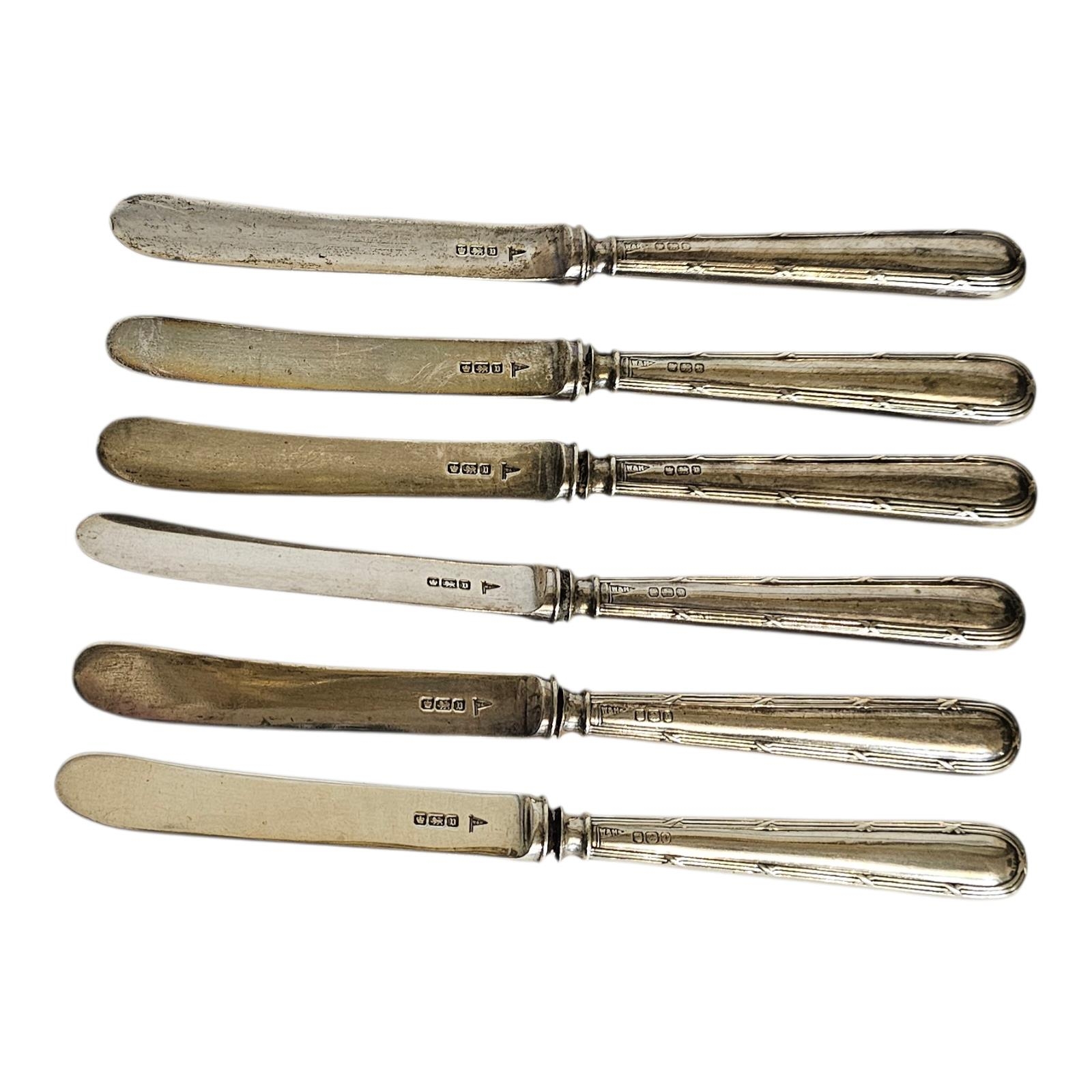 WALKER AND HALL, A SET OF SIX EARLY 20TH CENTURY SILVER HANDLED BUTTER KNIVES