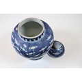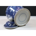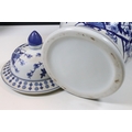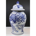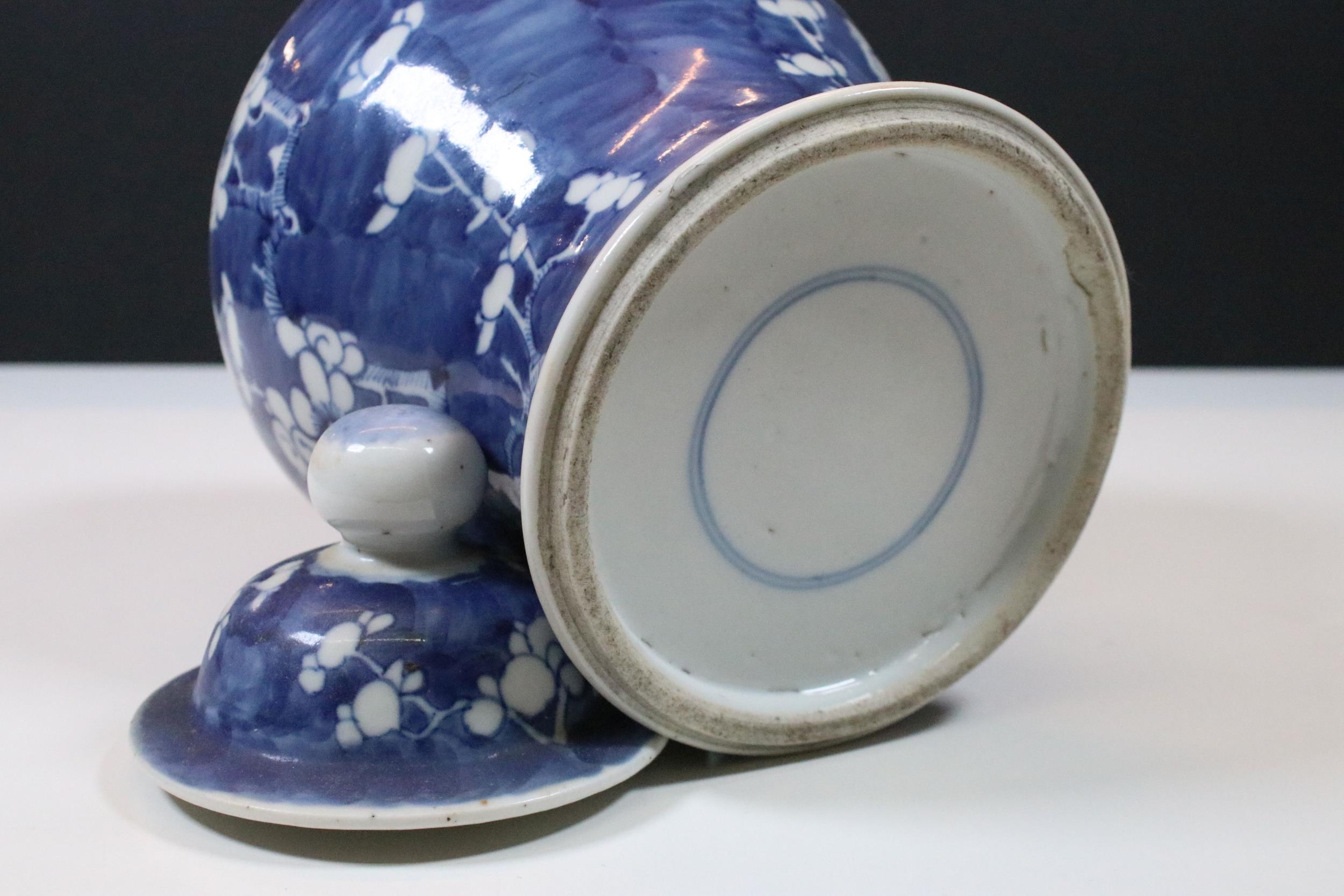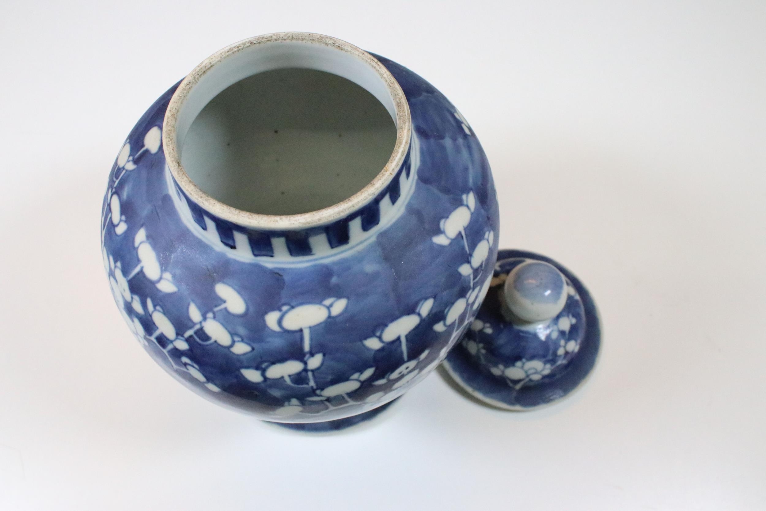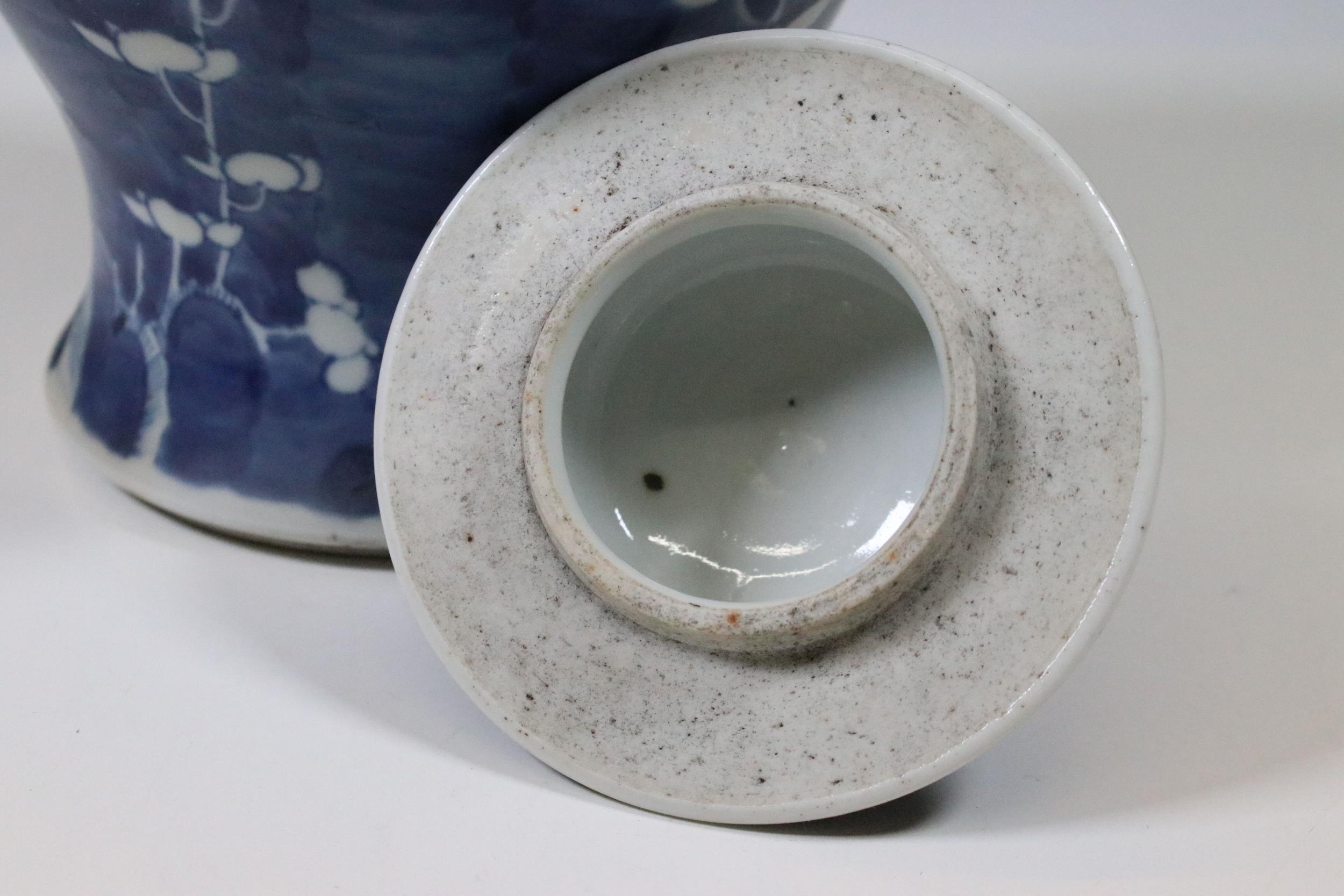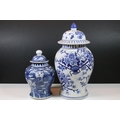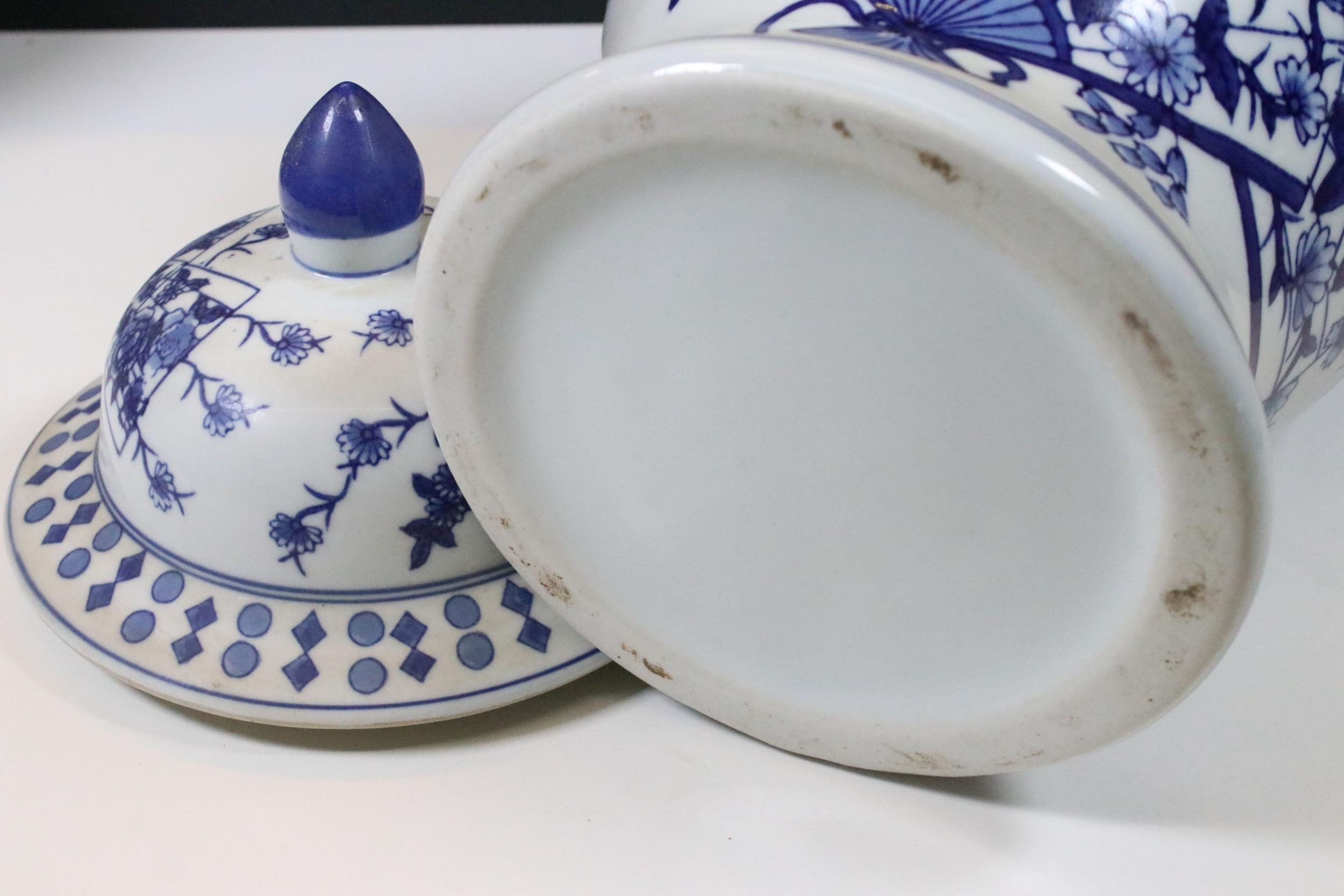 Two Chinese porcelain lidded vases to include 19th Century Prunus pattern example, with 2 x blue rings to base, possibly Kang Xi and large 20th Century lidded vase with floral and fan decoration