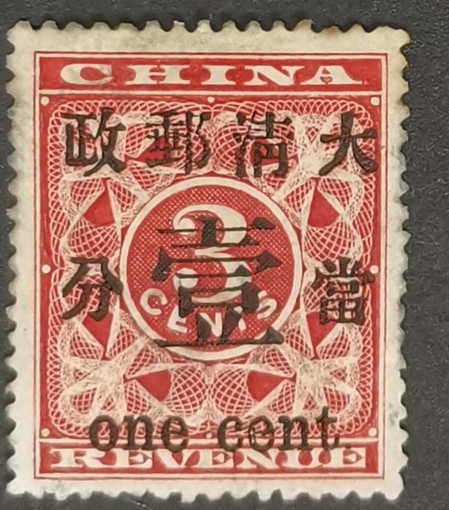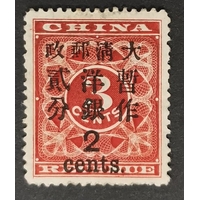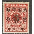 CHINA. 1897 red revenue 1c on 3c apparently unused but a little soiled. SG88. (1)