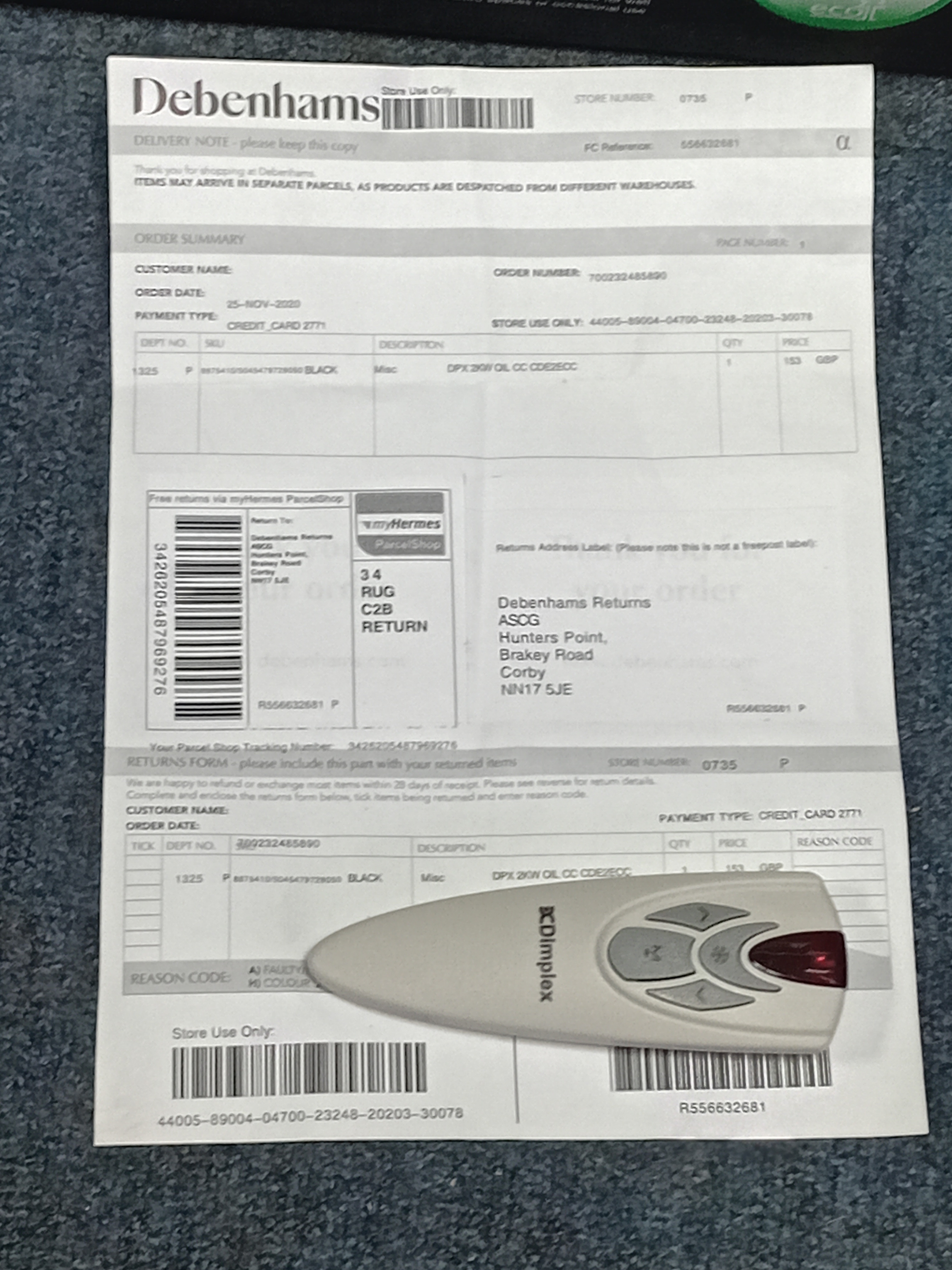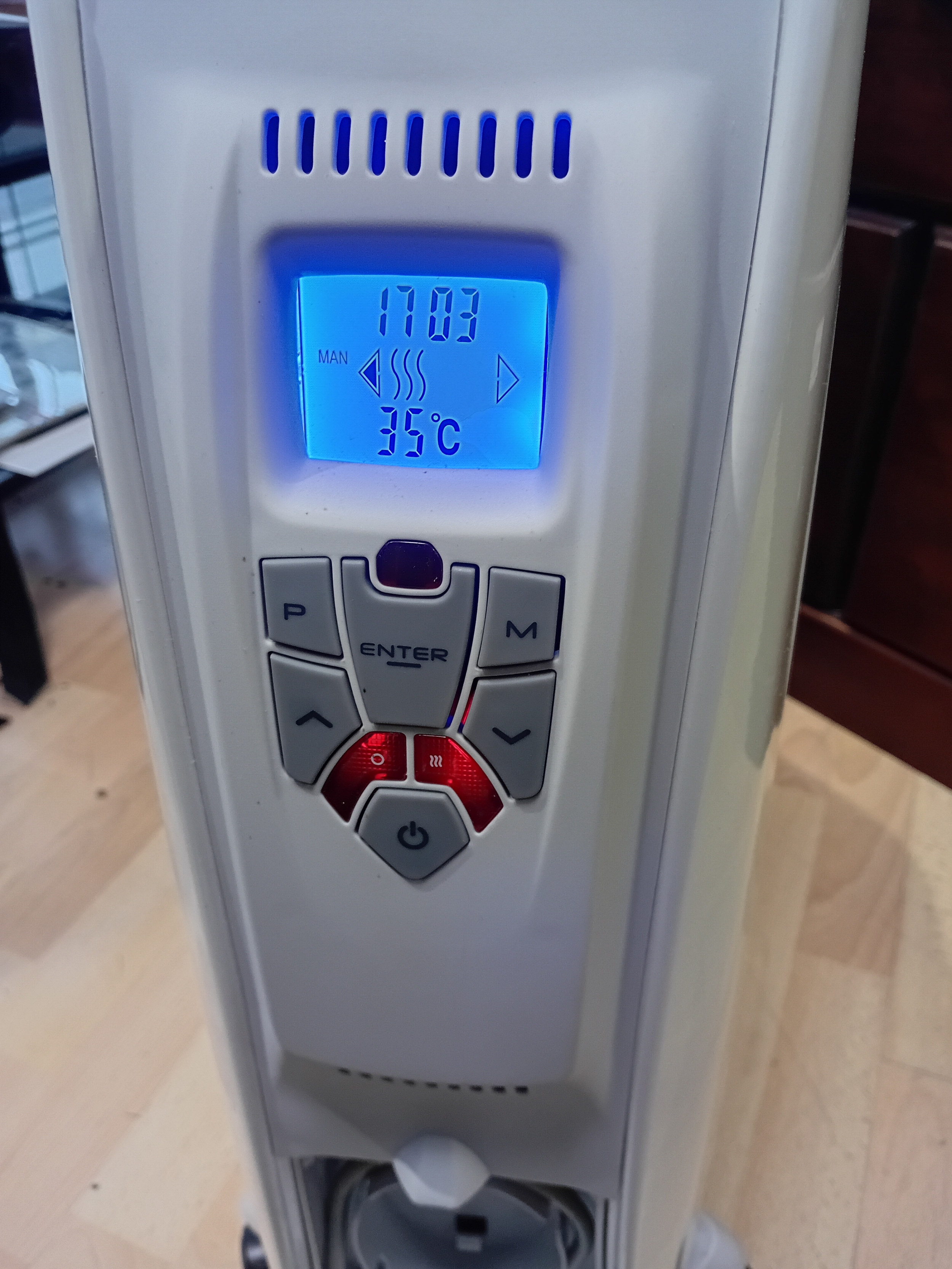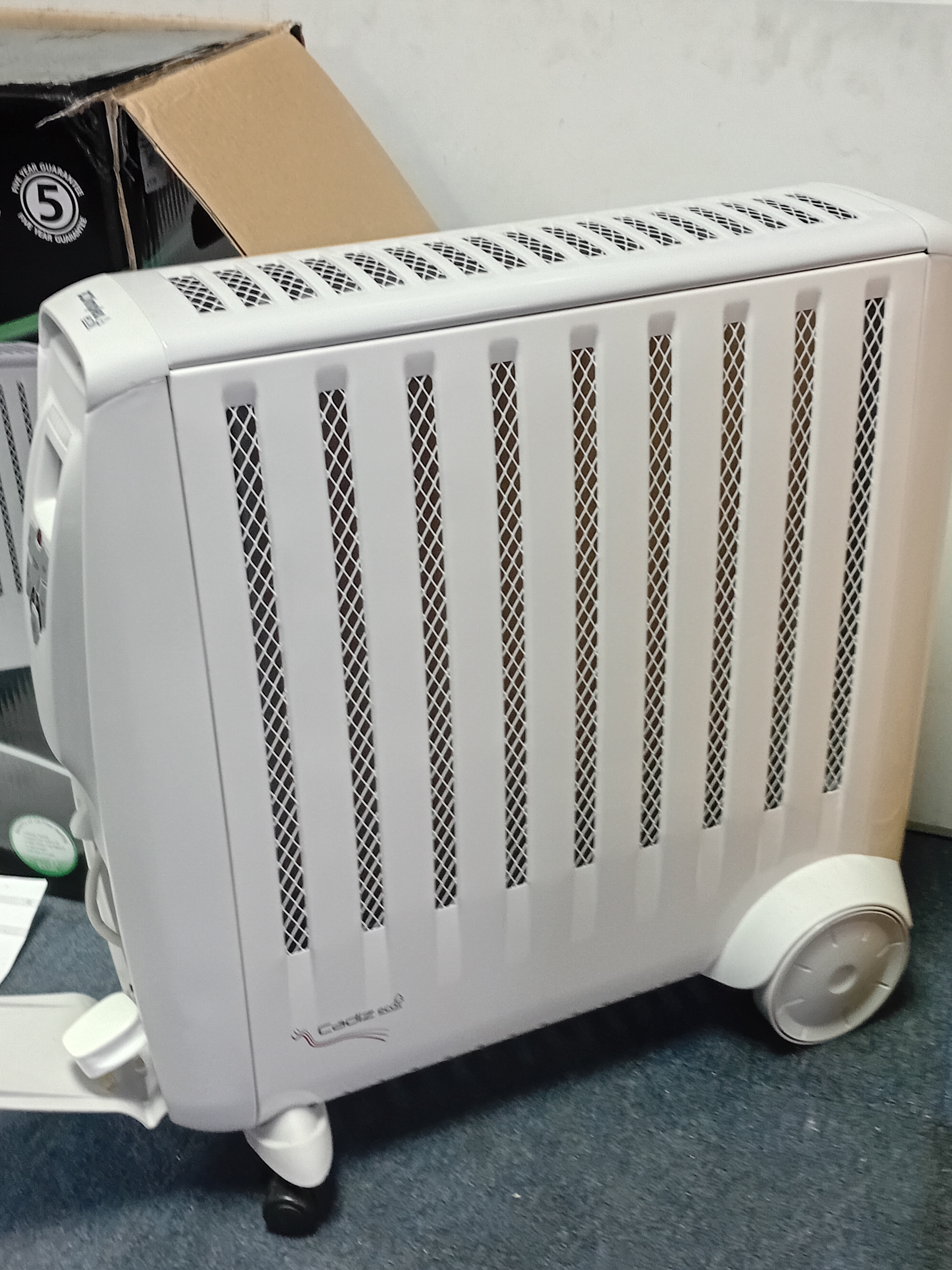 A Dimplex 2kW Cadiz Eco Oil Free Radiator with remote in original box, turns on and working. 61cm x 61cm x 15cm.