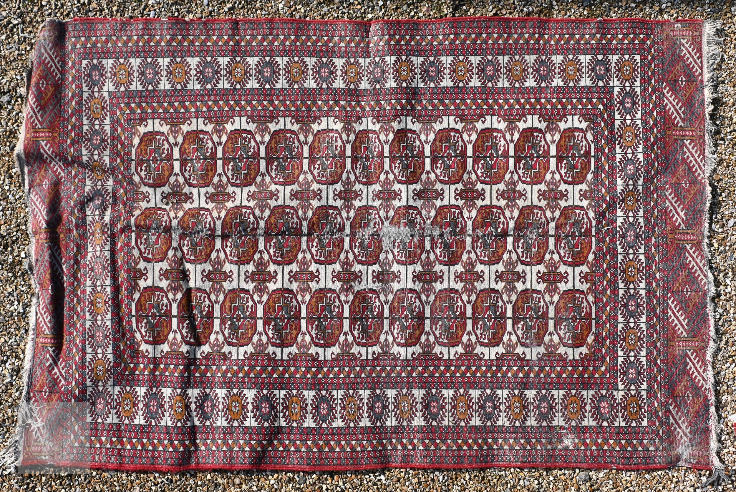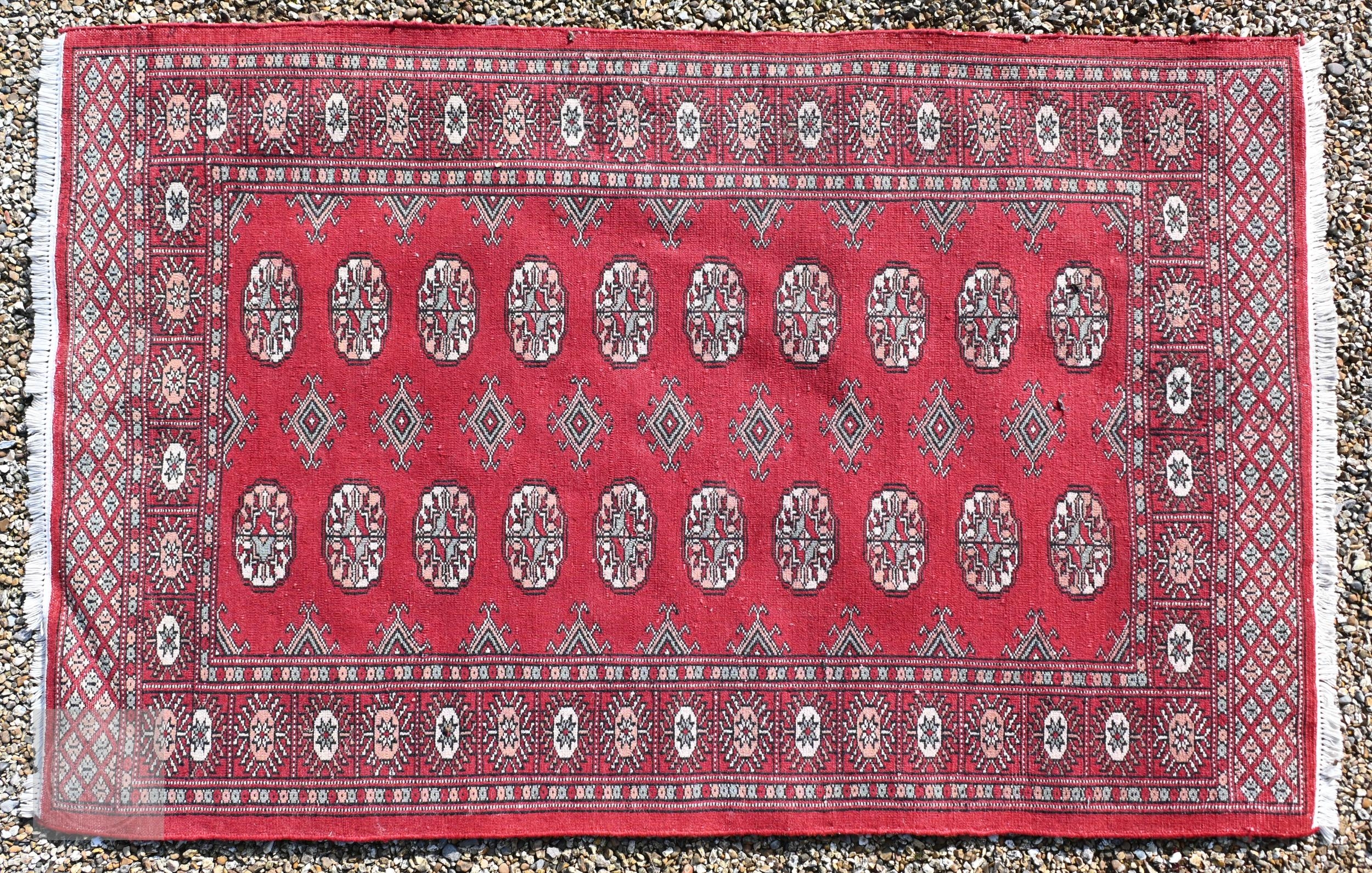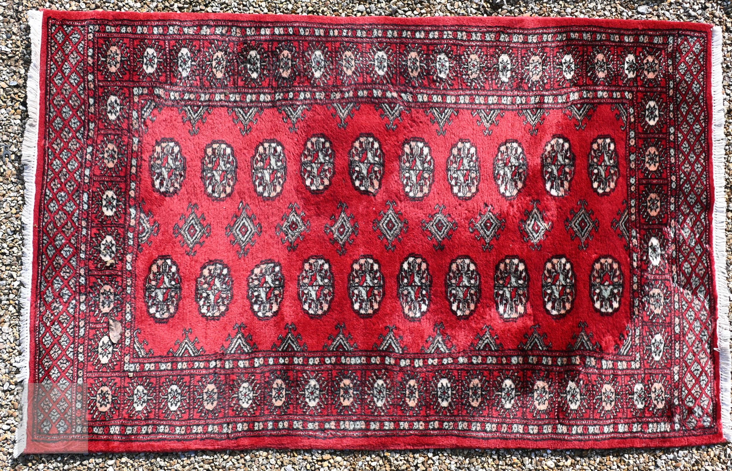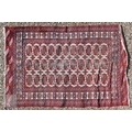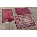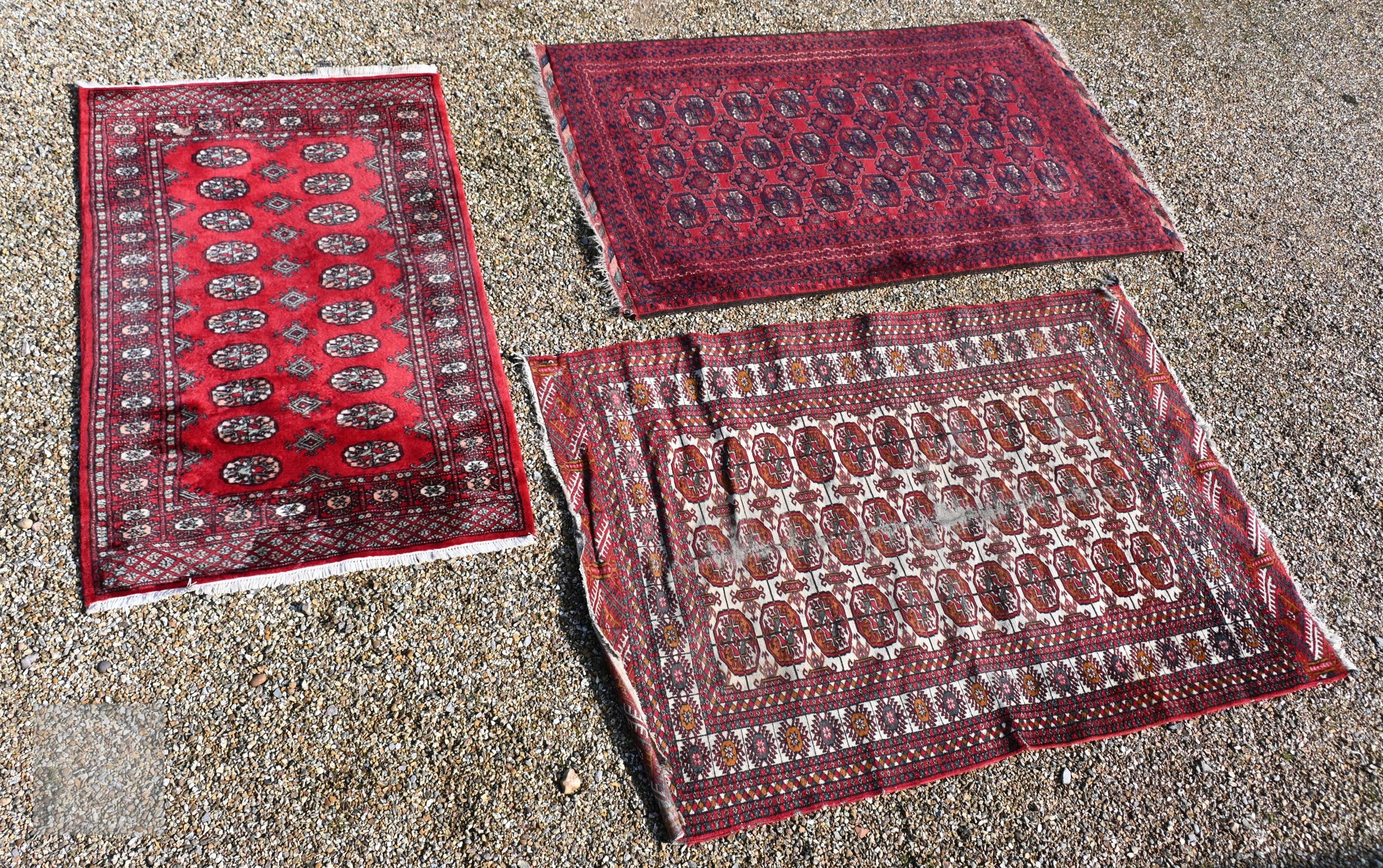 Three old Turk/Afghan rugs, red ground, sizes 183 cm x 106 cm; 188 cm x 125 cm; 158 cm x 99 cm (3)