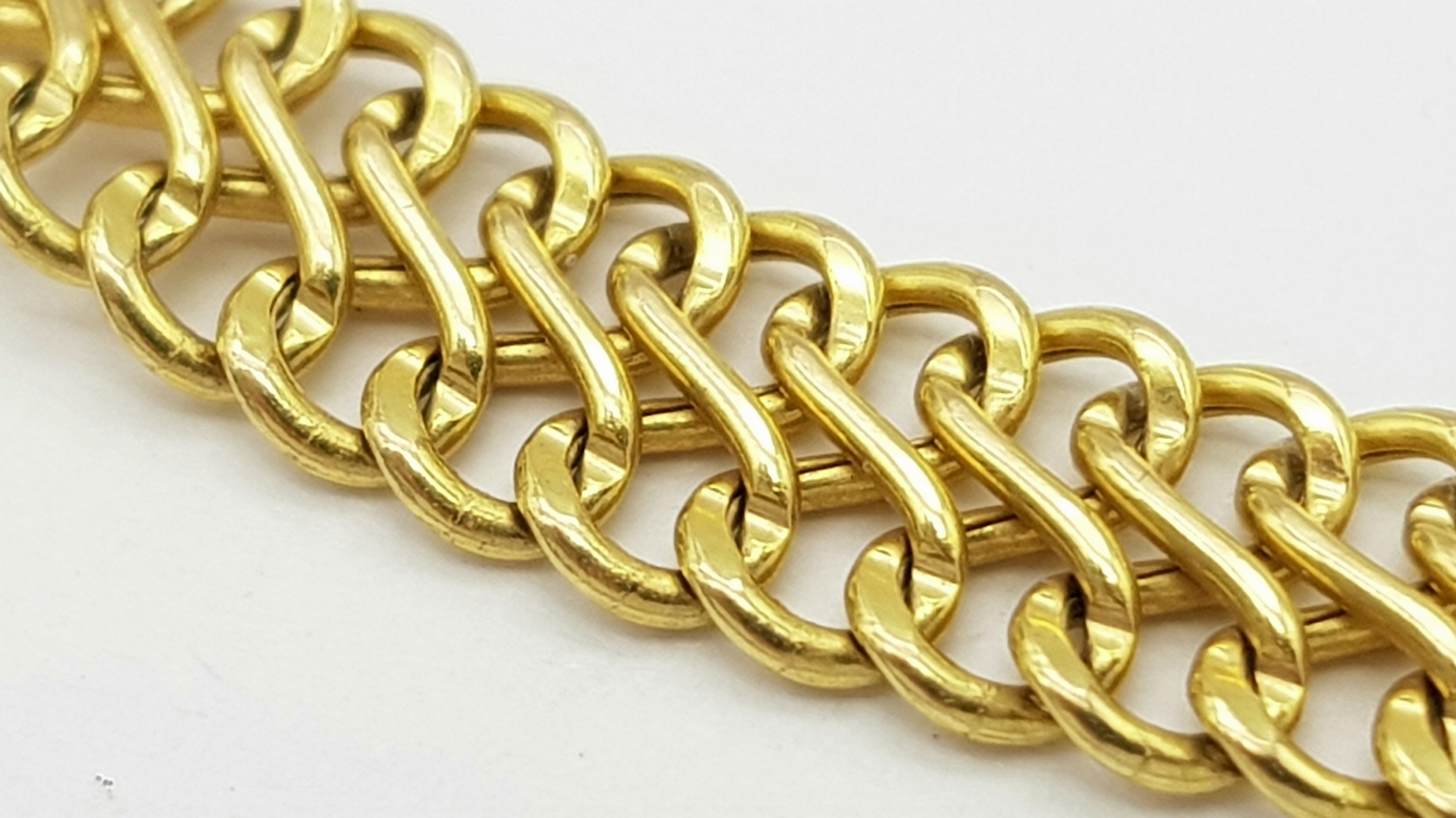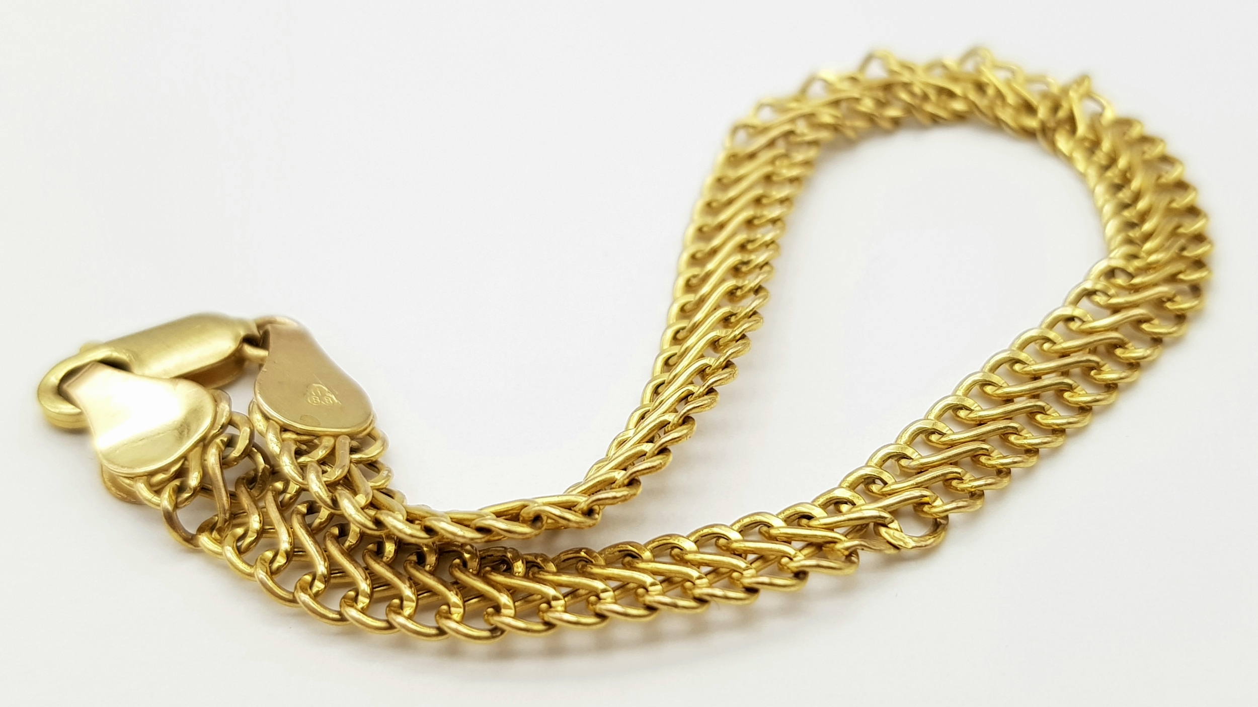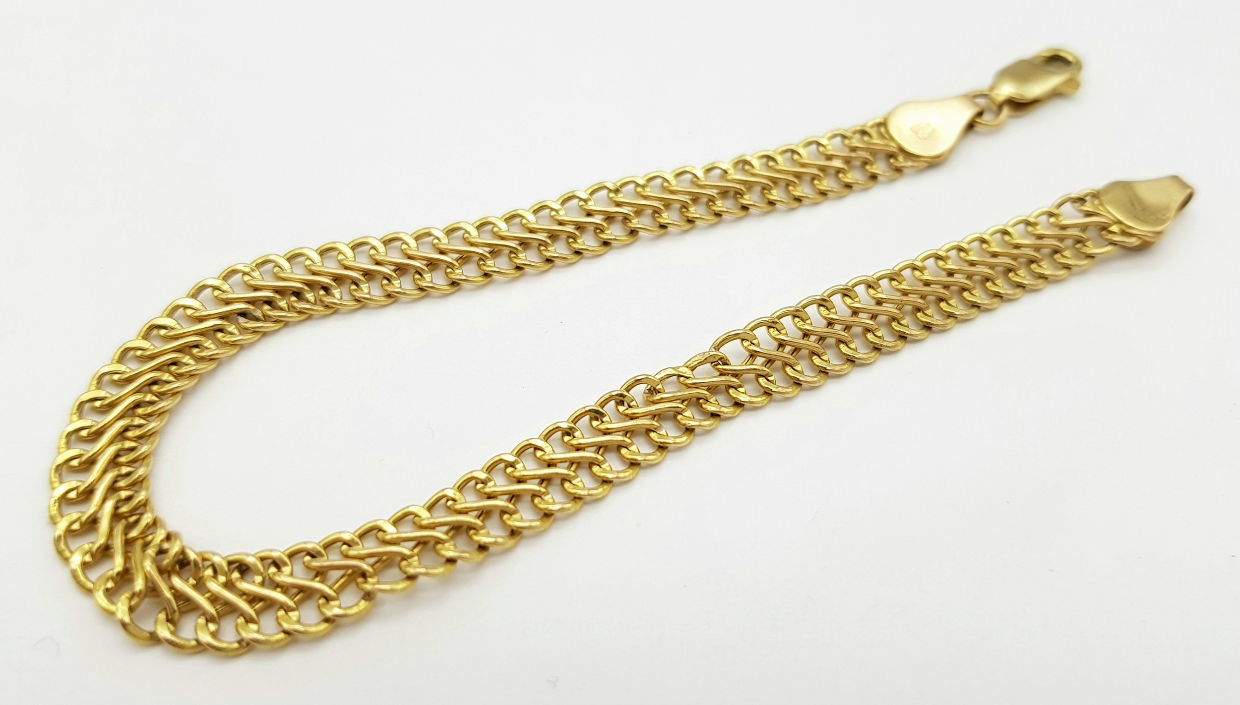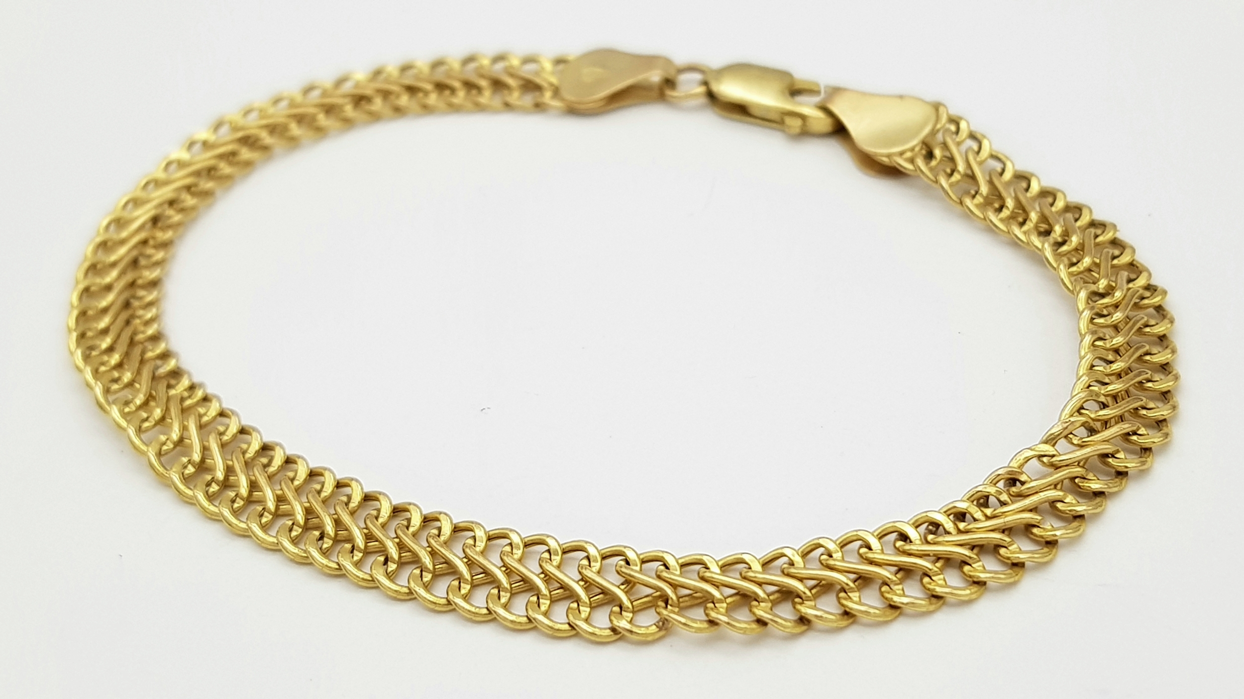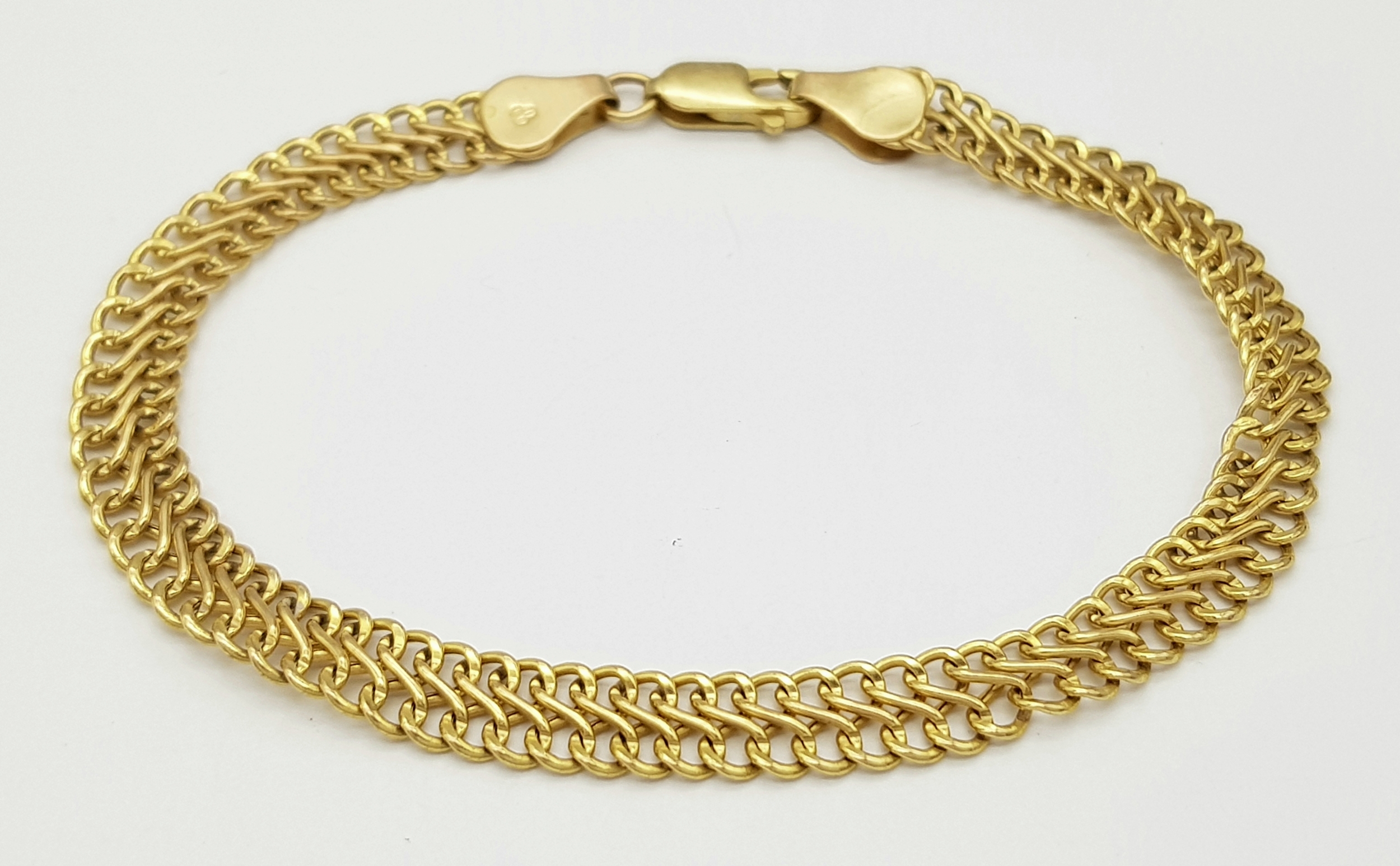 A VERY NICE HERRINGBONE LINK BRACELET IN 9K GOLD . 3.4gms 19cms