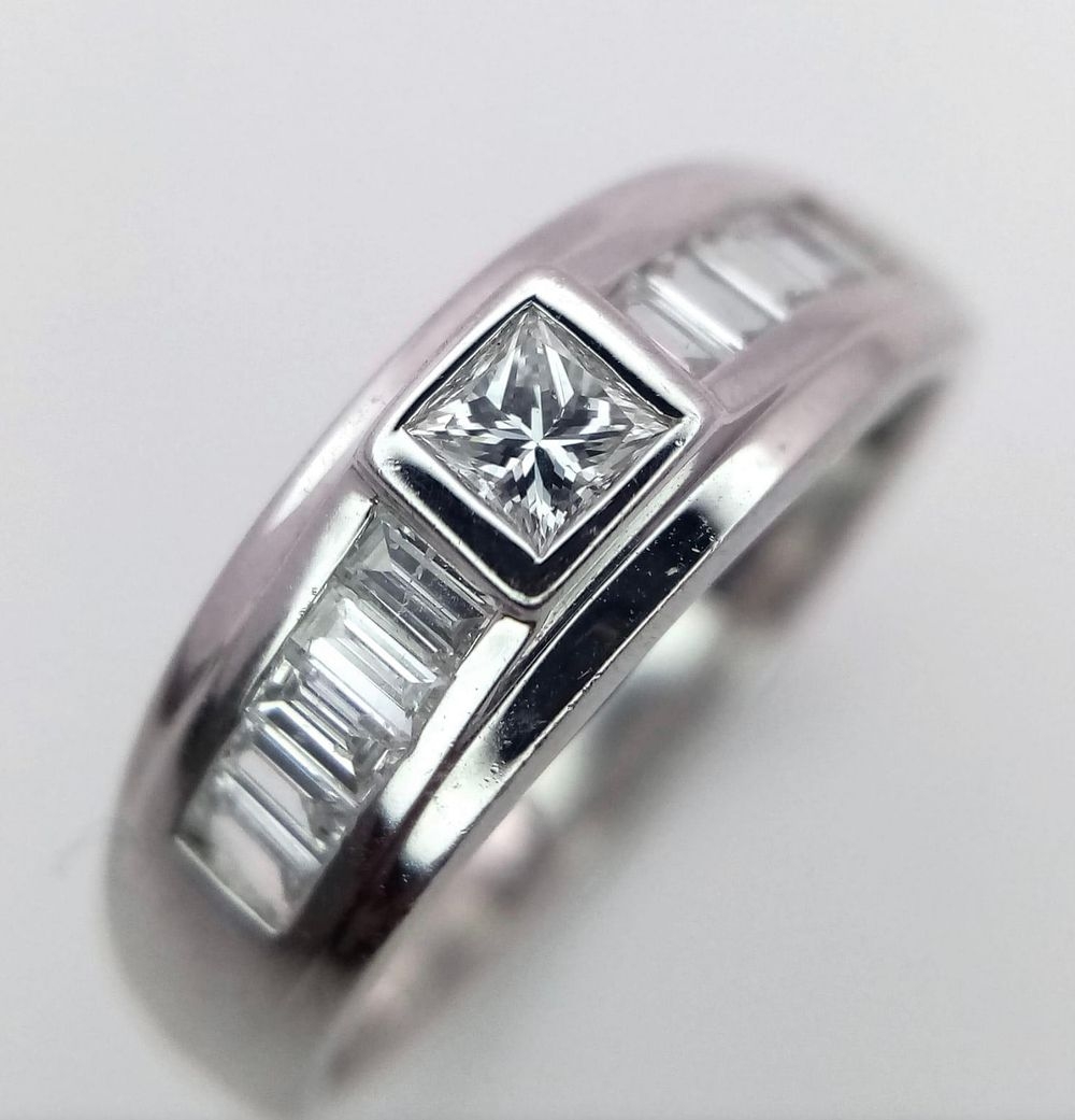 AN 18K WHITE GOLD DIAMOND RING. 0.65CT 4.5G SIZE M. Princess cut in good condition