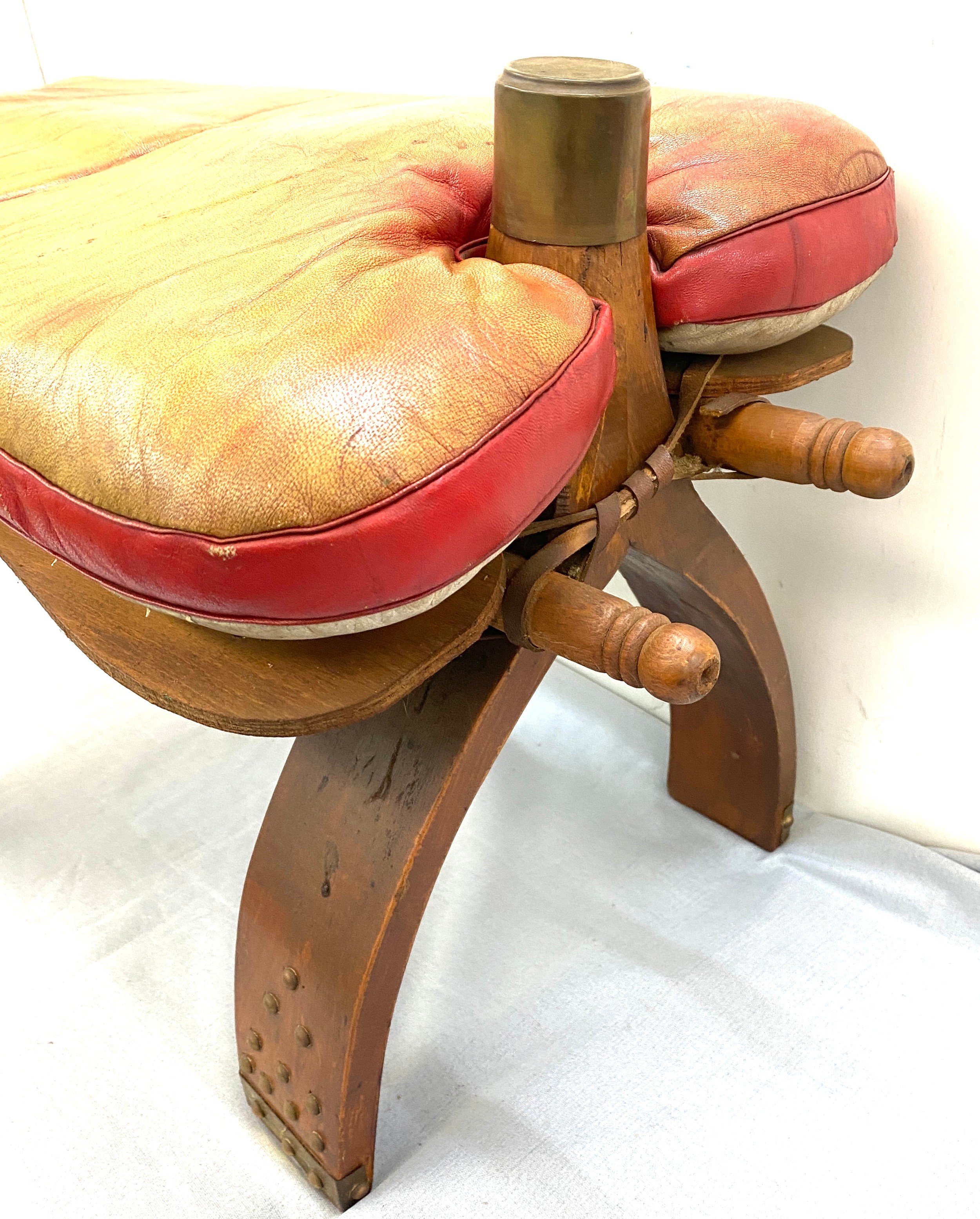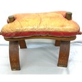 Vintage leather camel stool, approximate measurements: 27 x 14 x 17 inches