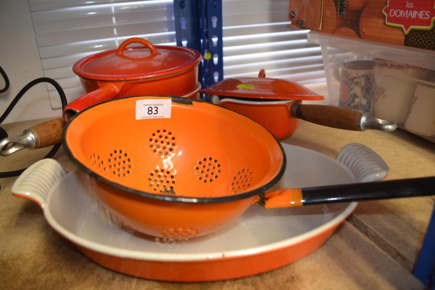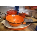 Various Le Creuset & Belgian Le Creuset style items inc. Strainer, inc. models 14, 18, 28