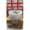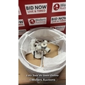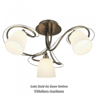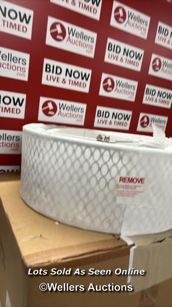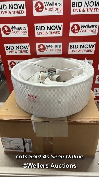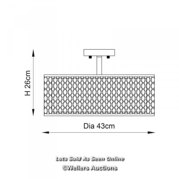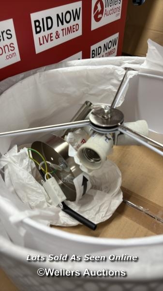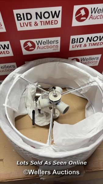 RRP: 84.99 - MERCER41 ERIKA 3-LIGHT 43CM SEMI FLUSH MOUNT / FIXTURE FINISH: SATIN NICKEL/WHITE FABRIC/FROSTED GLASS / SEE IMAGES / BOX NOT FULLY CHECKED / A23