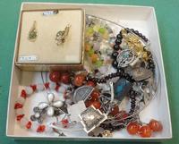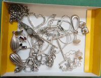 Silver & White Metal Jewellery inc. frog brooch, hinged bracelet, amber set earrings etc.