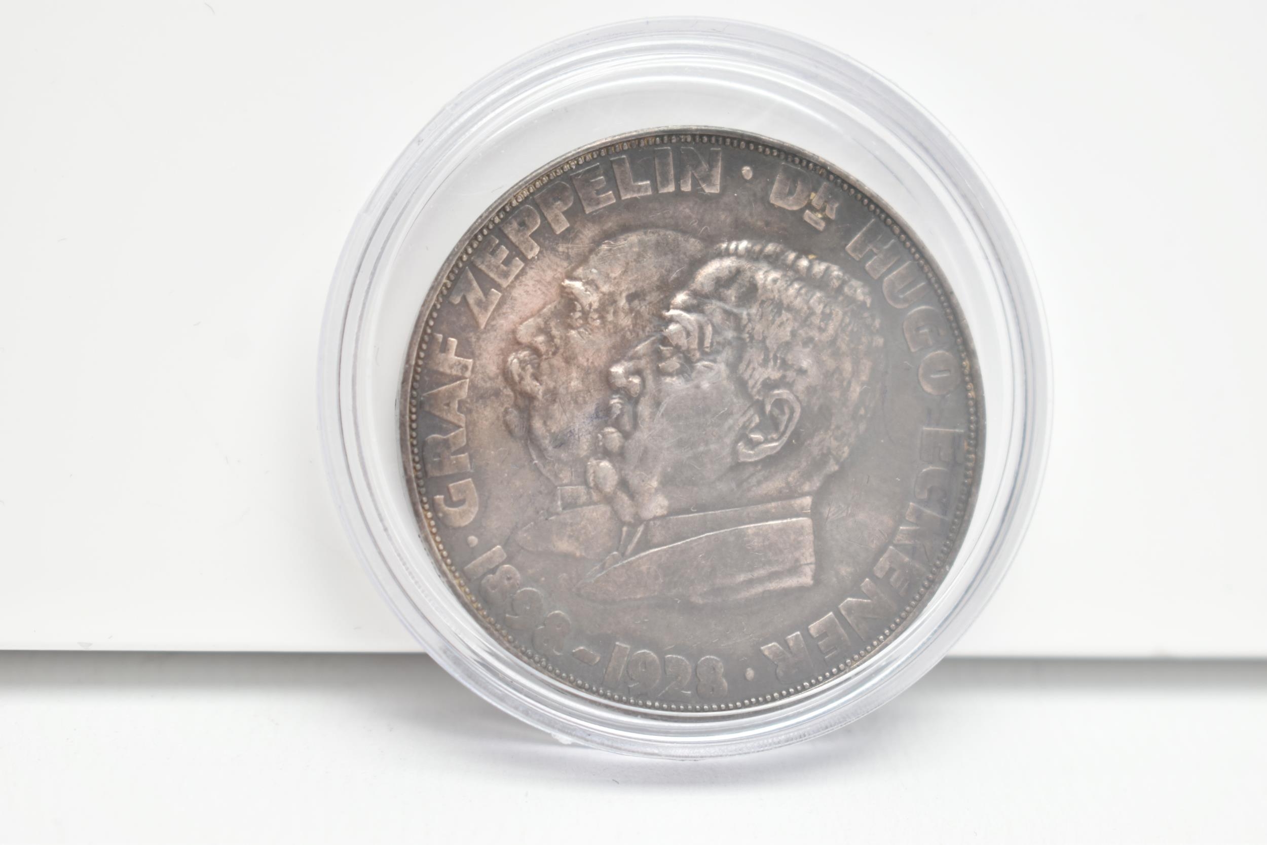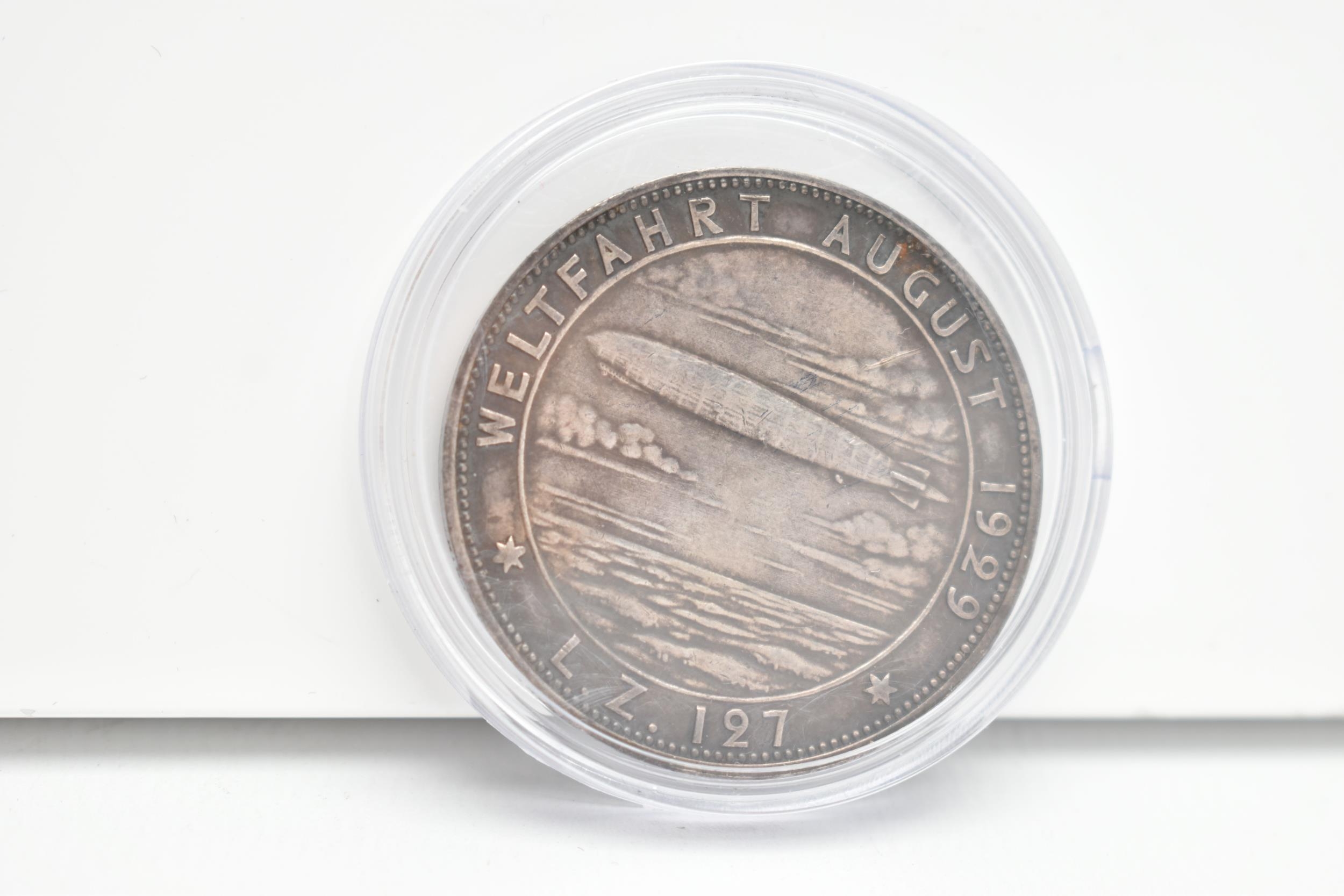 A RARE GERMAN PROOF COMMEMORATIVE BY Dr HUGO ECKENER 1898-1928 OF THE GRAFF ZEPPELIN L.Z.127, 1929 36mm, 24.83 grams, 0.900 SILVER