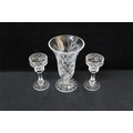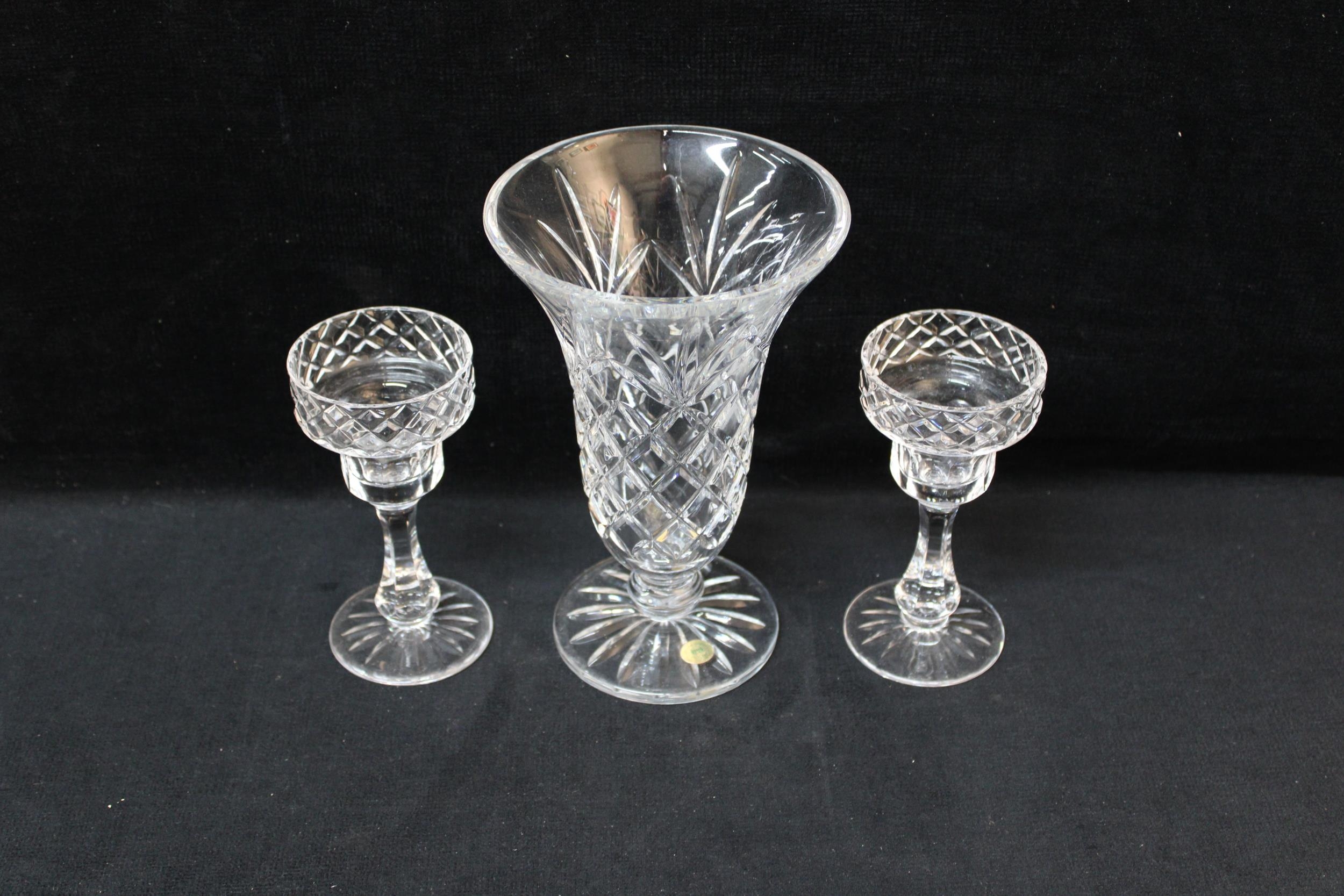 A Tyrone cut crystal glass vase - 20cmH and two candle holder