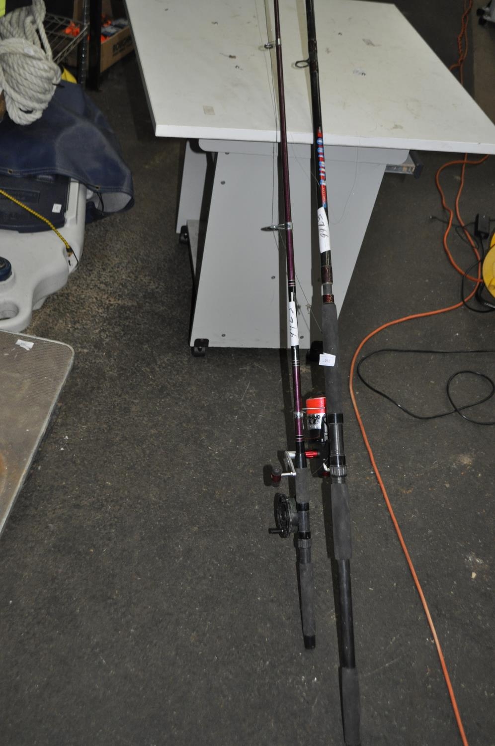 2 X SEA FISHING RODS, BOTH WITH REELS