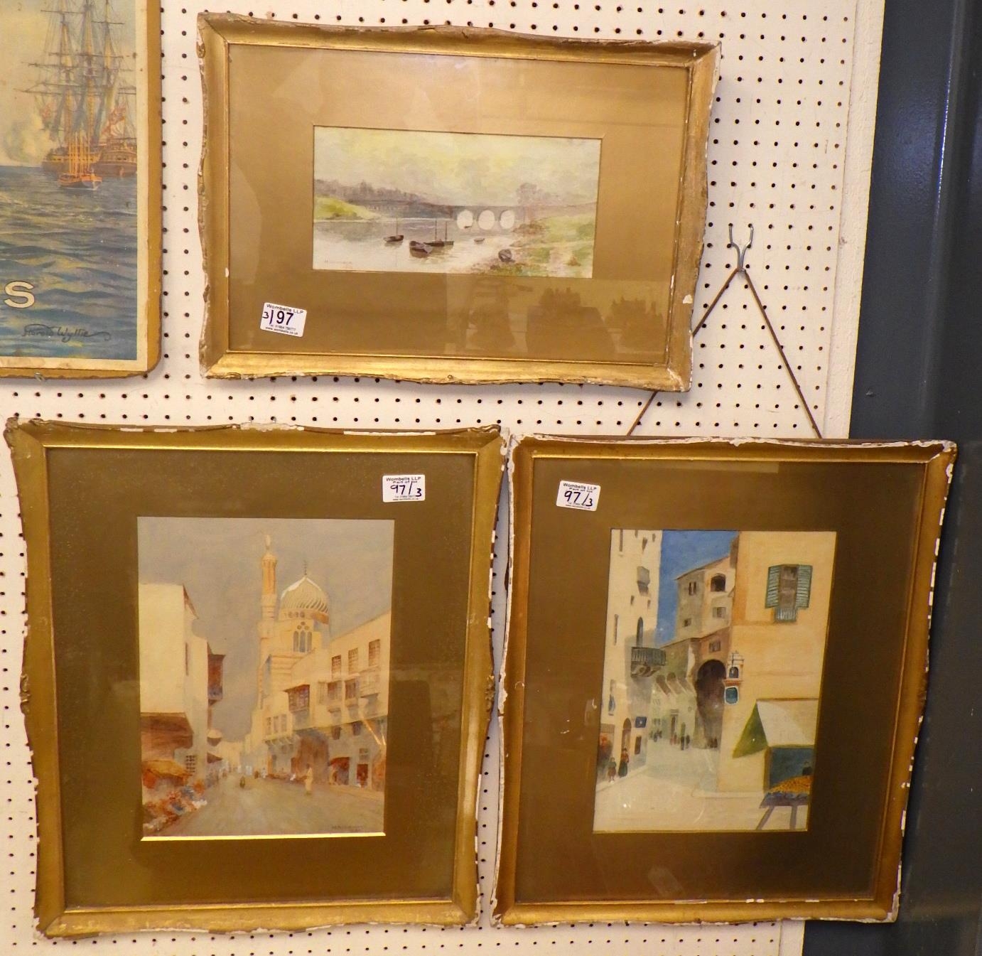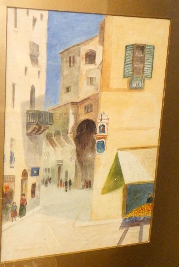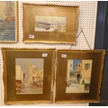 Three H Riddiough watercolours 1919 Chester and two 1921 continental street scenes (3)