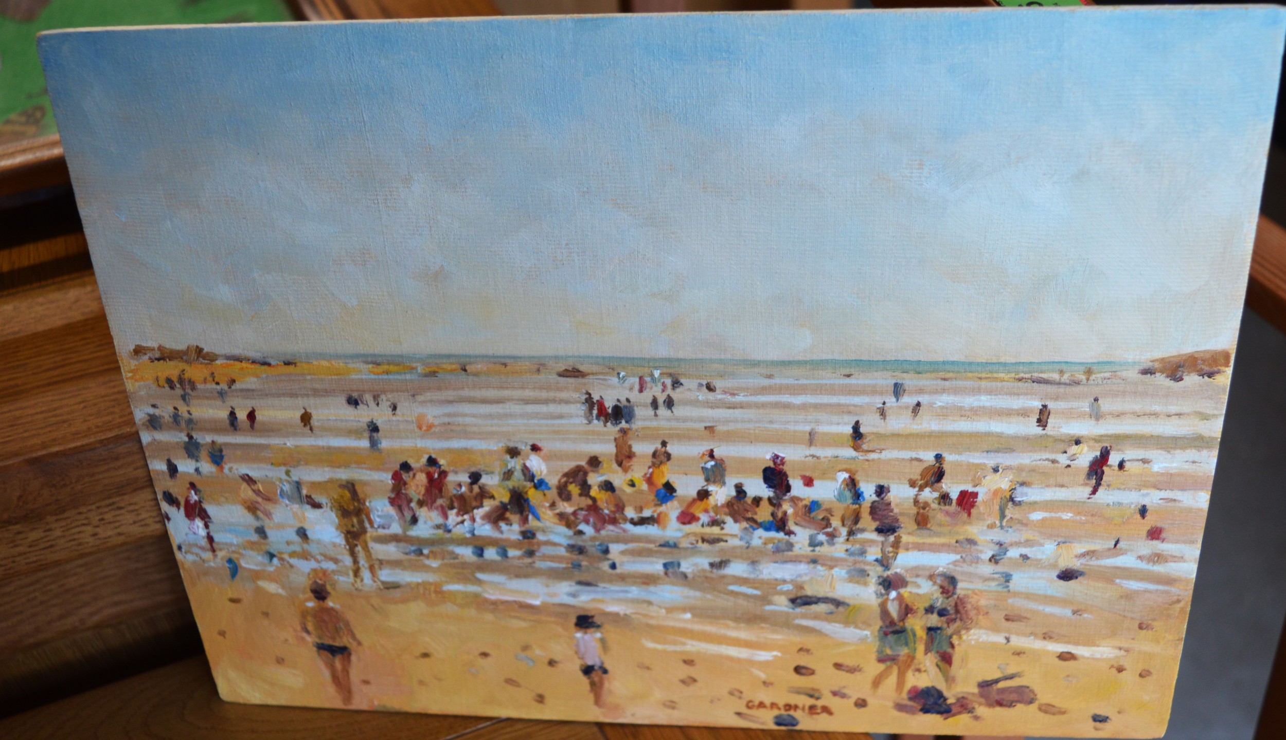 Oil on Board by Keith Gardner RCA - Paddling Pool, West Kirby Beach (12" x 9")