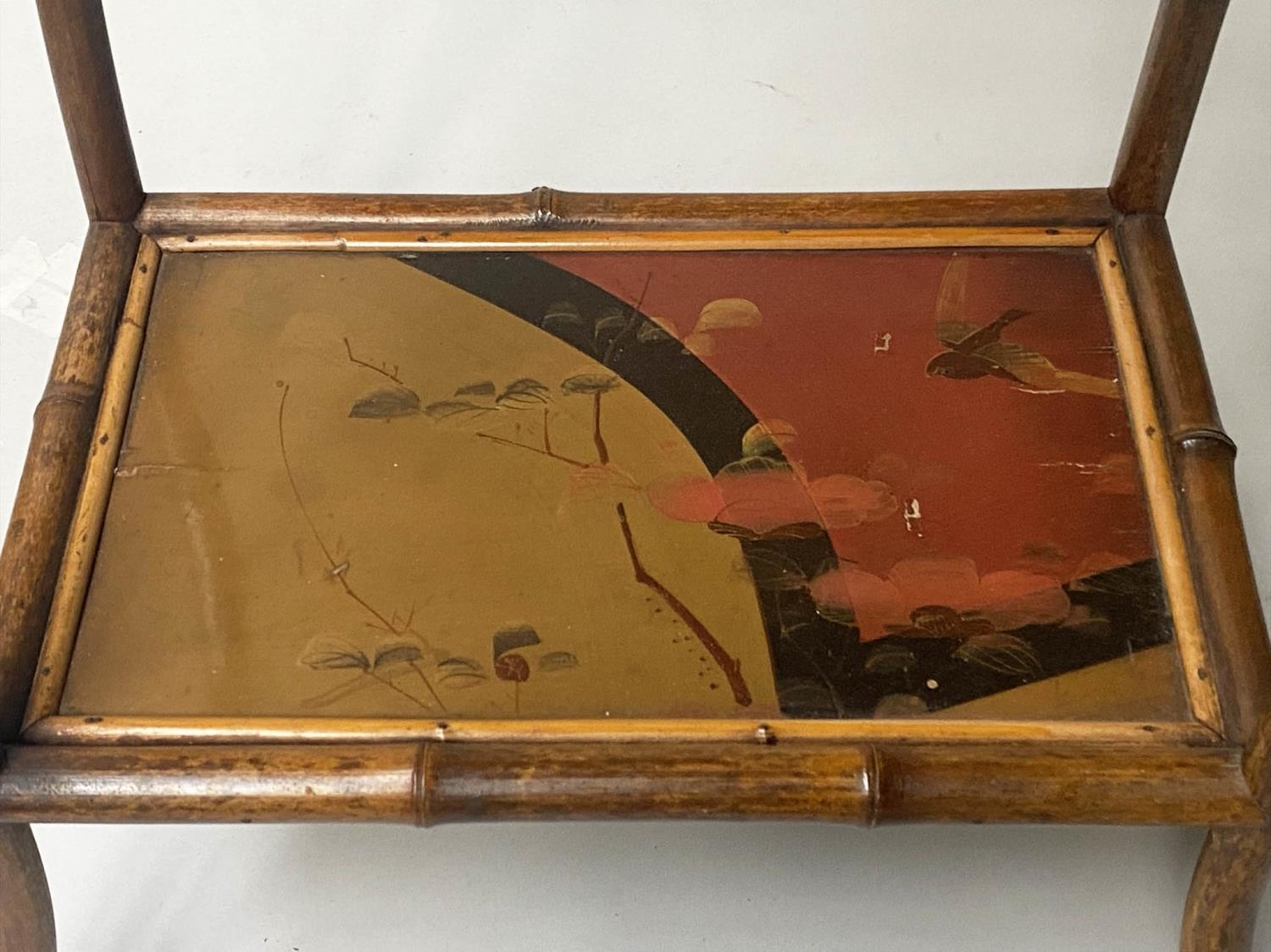 RACK/SIDE TABLE, 19th century bamboo and scarlet and gilt Ja...