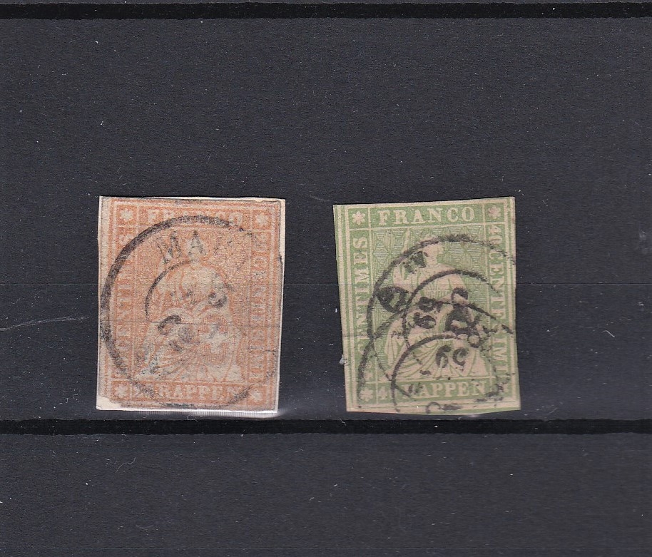 Switzerland 1854 Imperf SG 50 used 20r and SG 51 used 40r. Cat £185