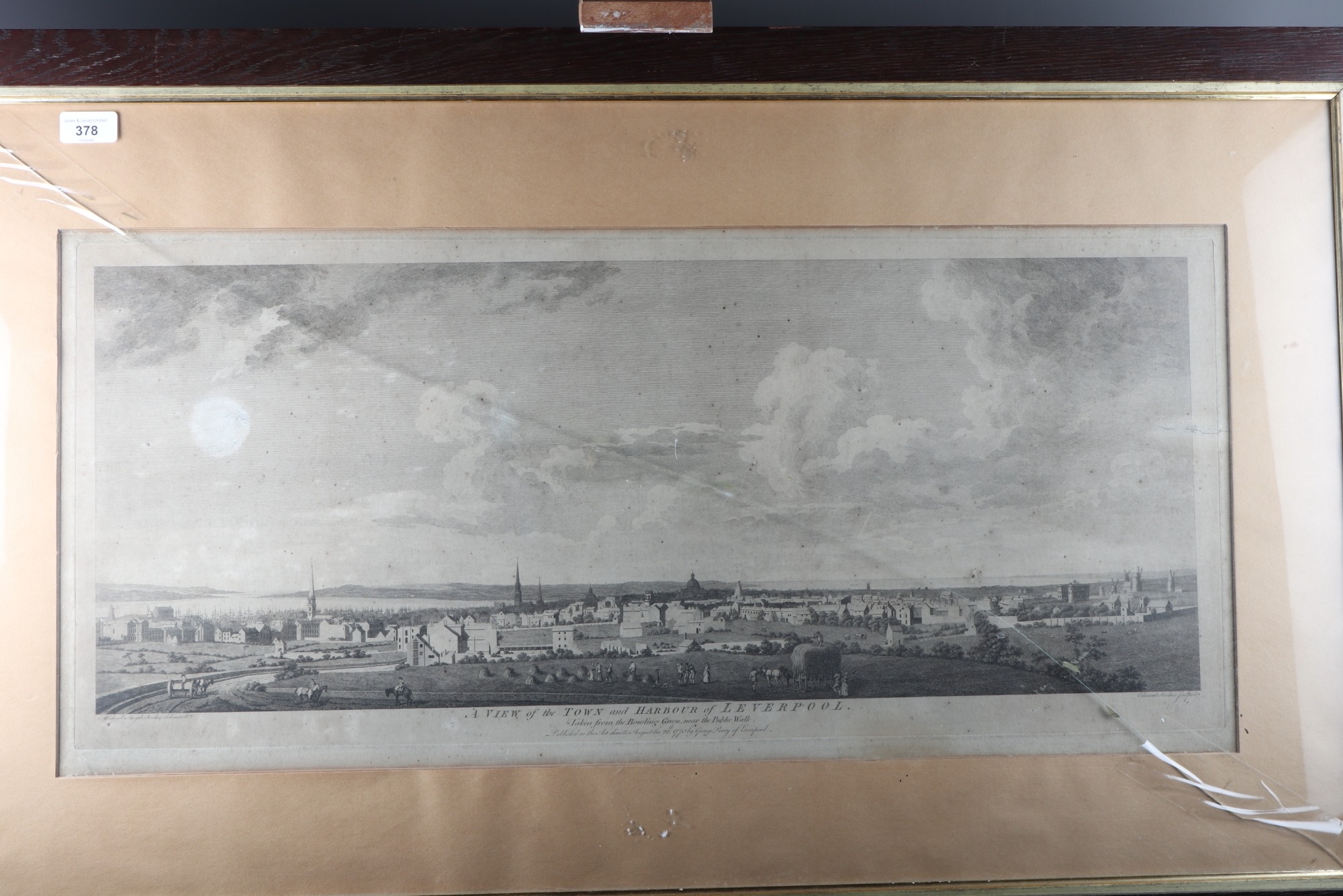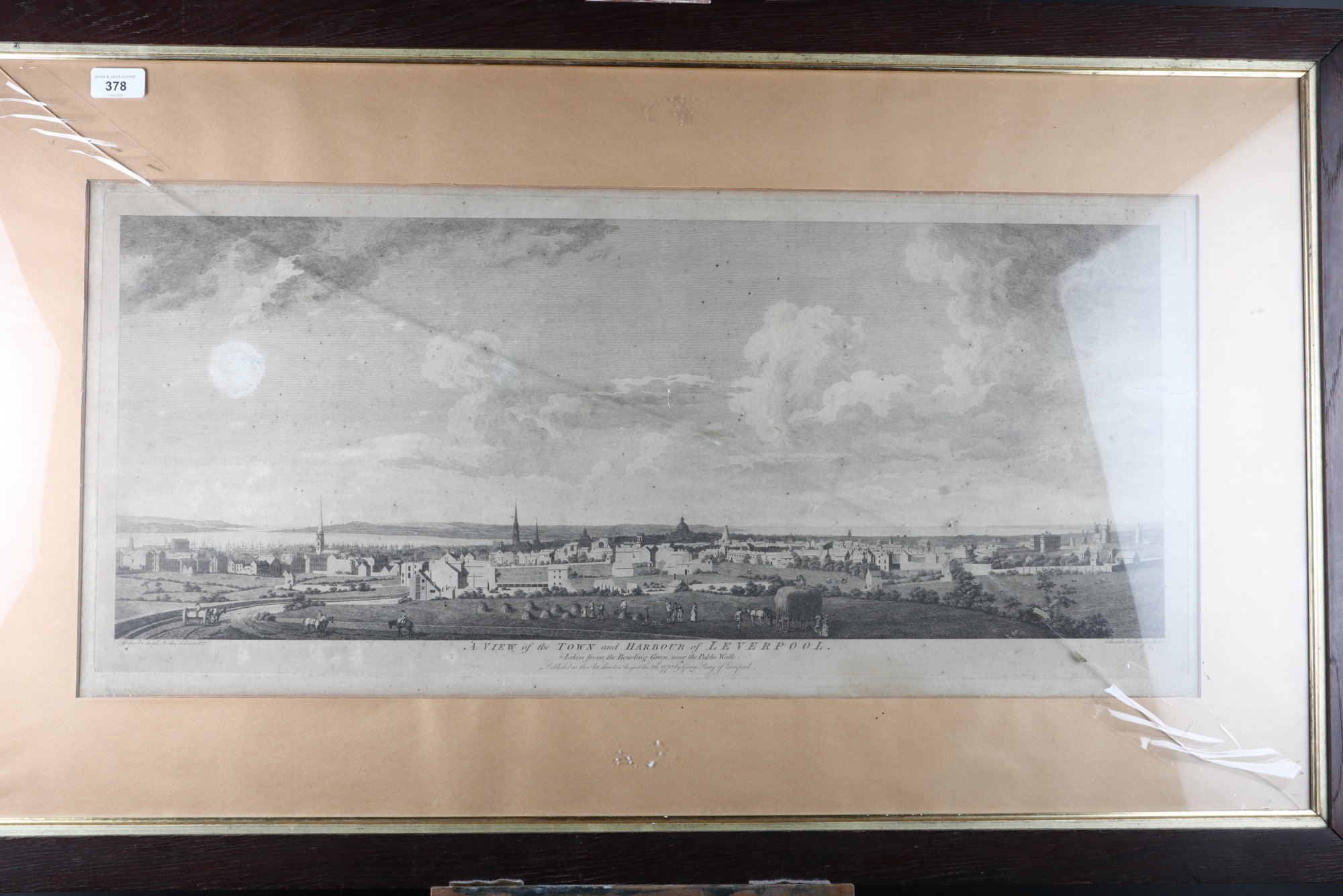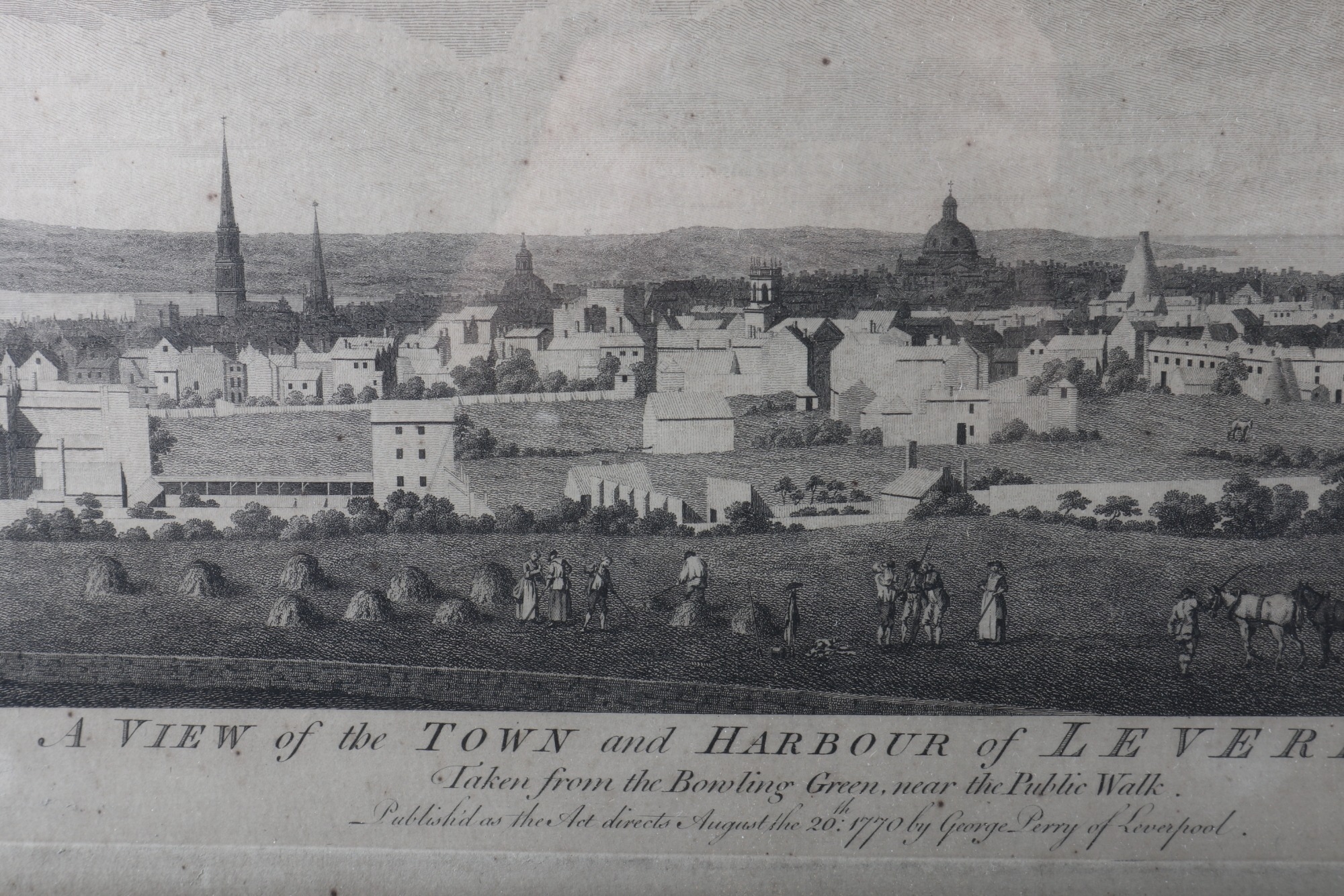 After Michaelangelo Rooker: an 18th century engraving "a view of the town and harbour of Liverpool", Pub 1770, in oak frame