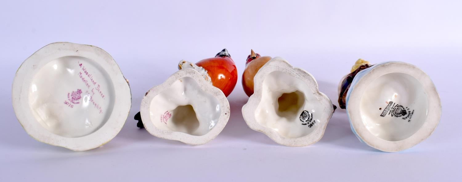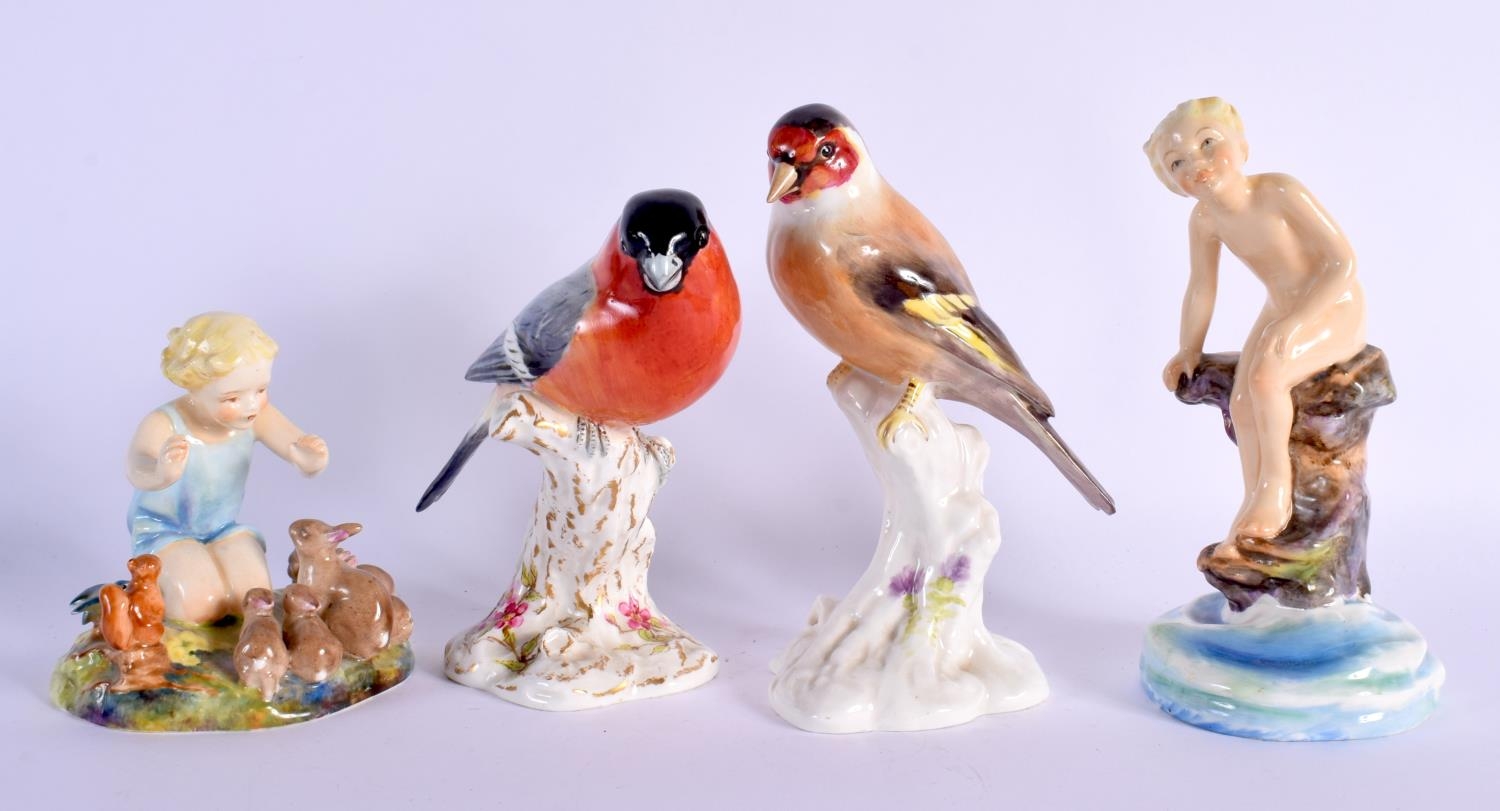 TWO ROYAL WORCESTER F G DOUGHTY FIGURES together with two figures of birds. (4)