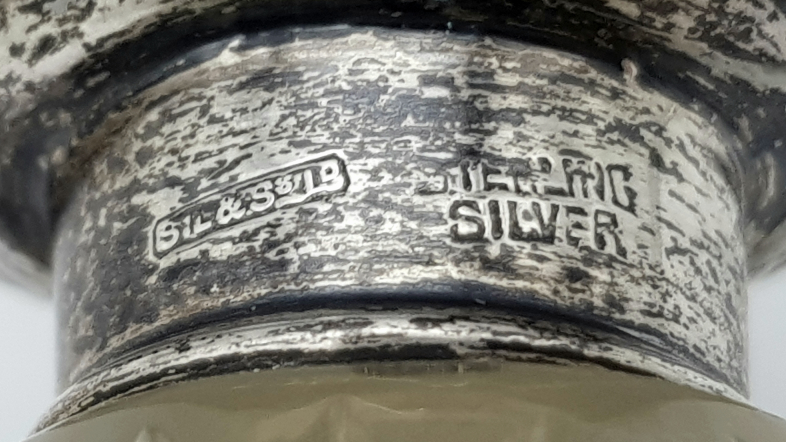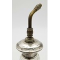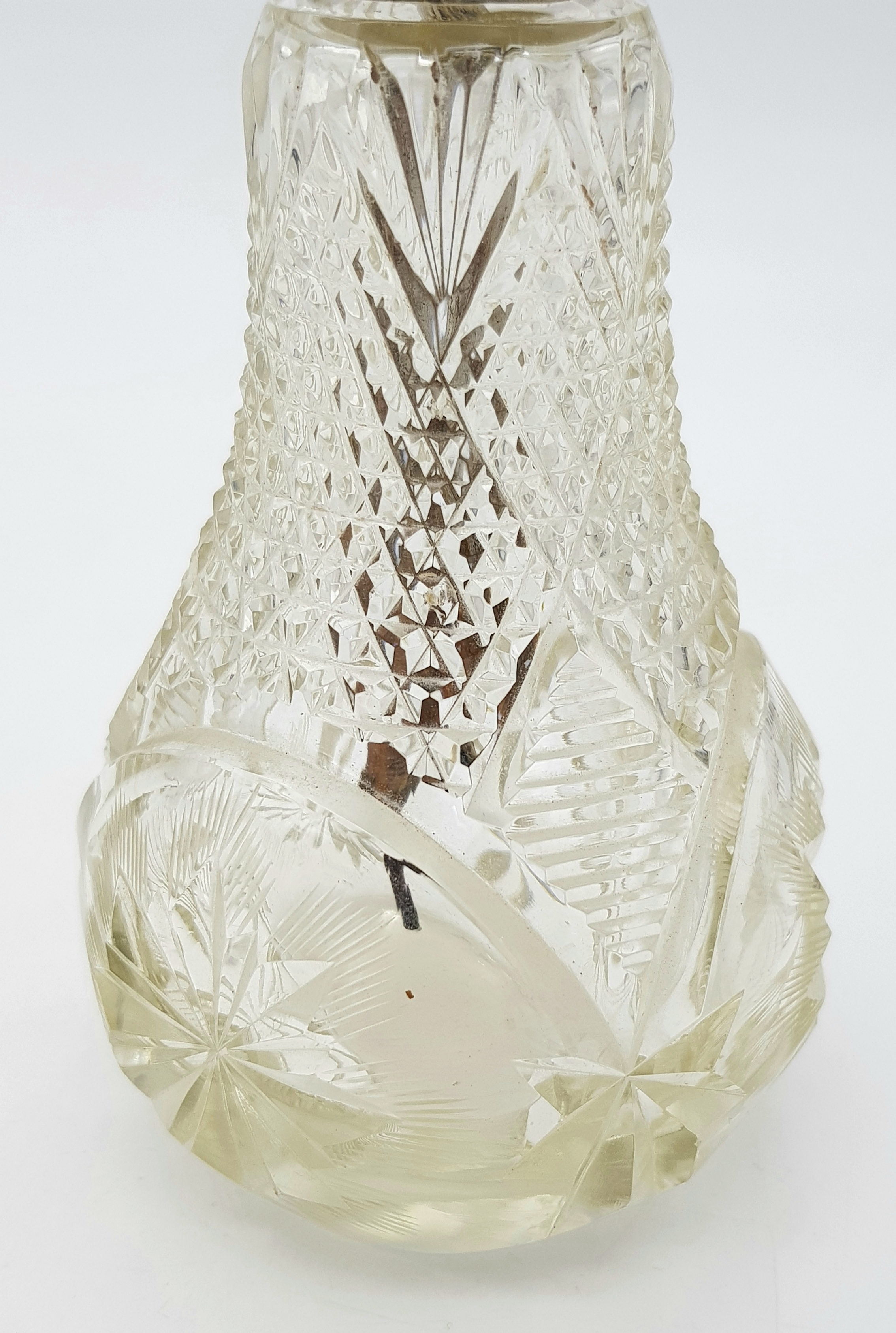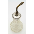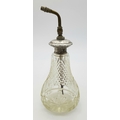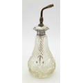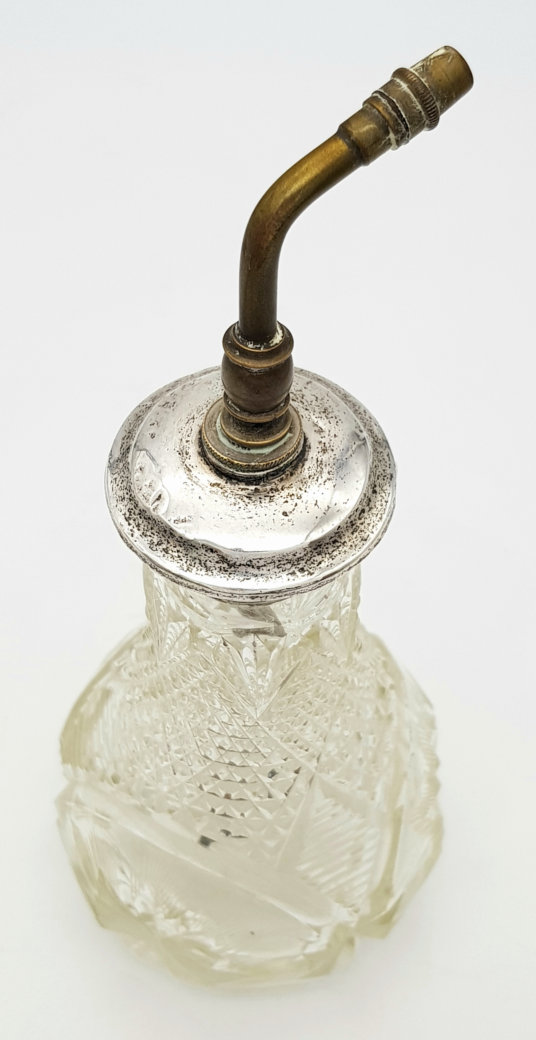 A Vintage Possibly Antique Cut Glass Perfume Atomiser - With Sterling Silver Collar and top. Brass metal spray nozzle.