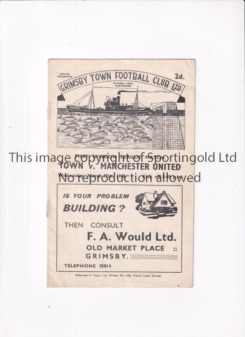 MANCHESTER UNITED Programme for the away League match v Grimsby Town 17/3/1948. Generally good
