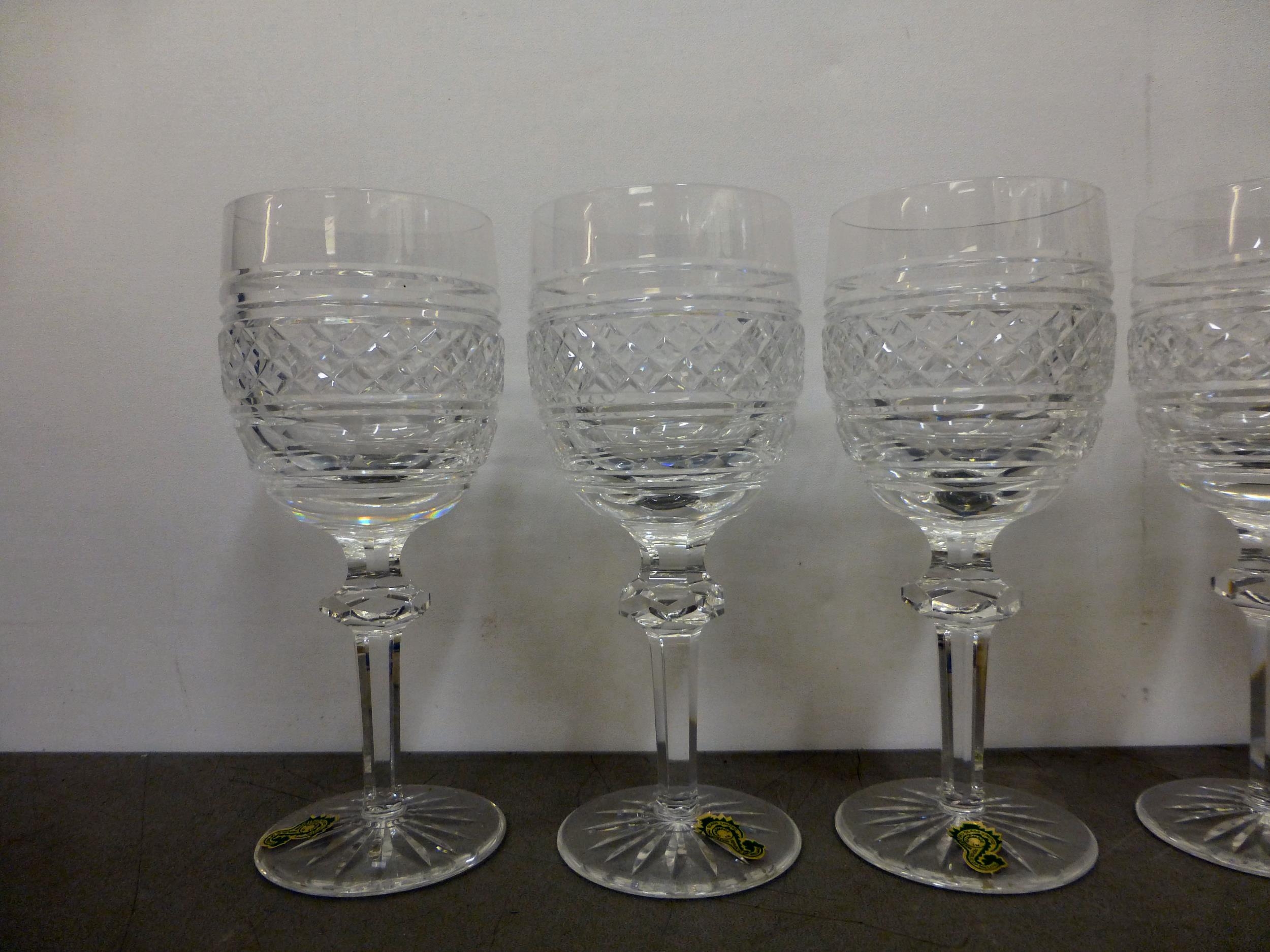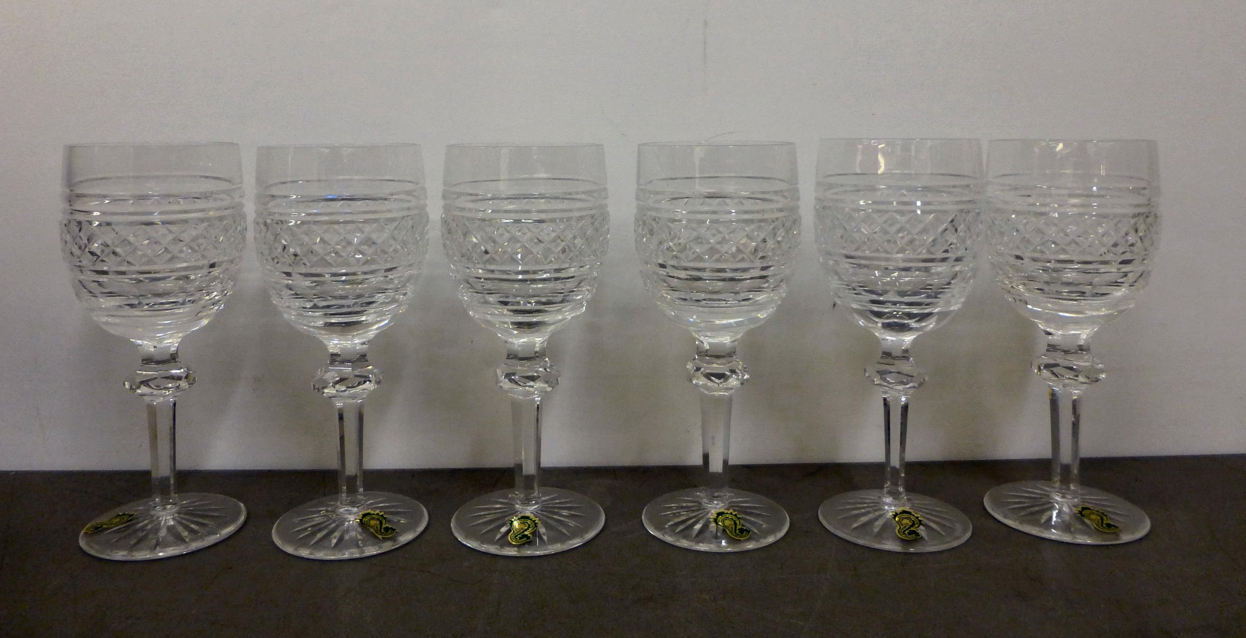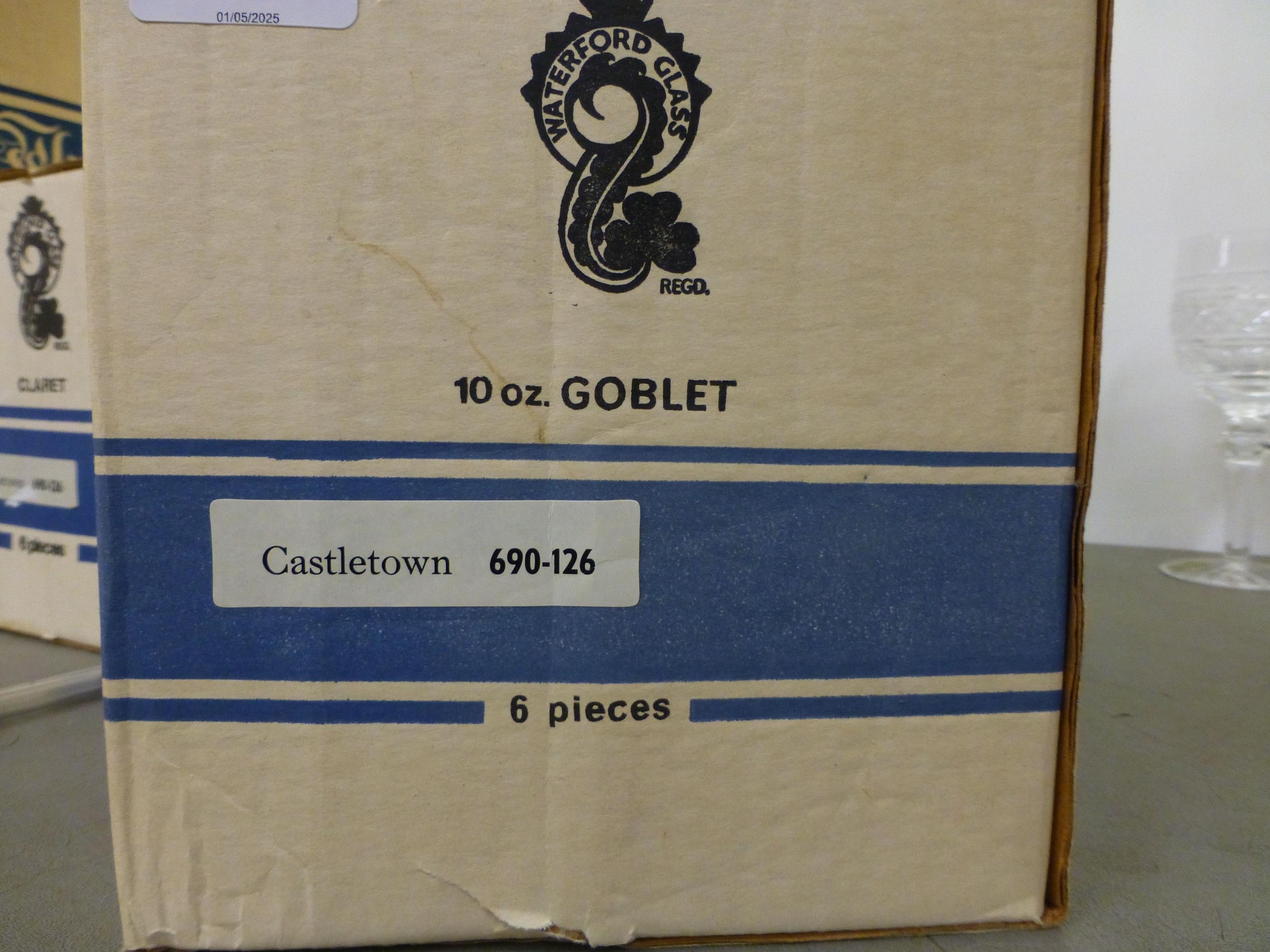 A set of six Waterford crystal Castletown 10oz goblets each 7.5"h boxed