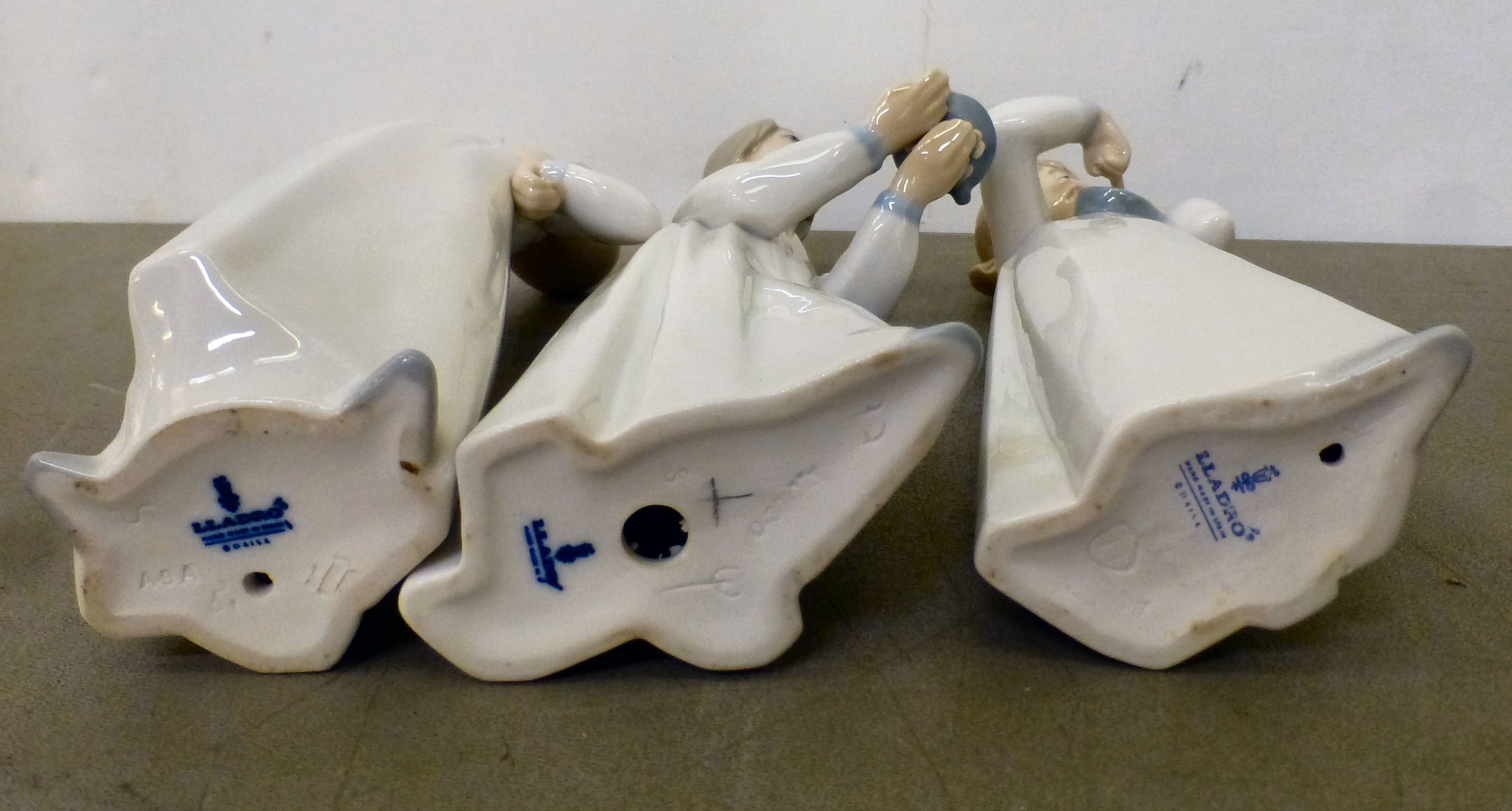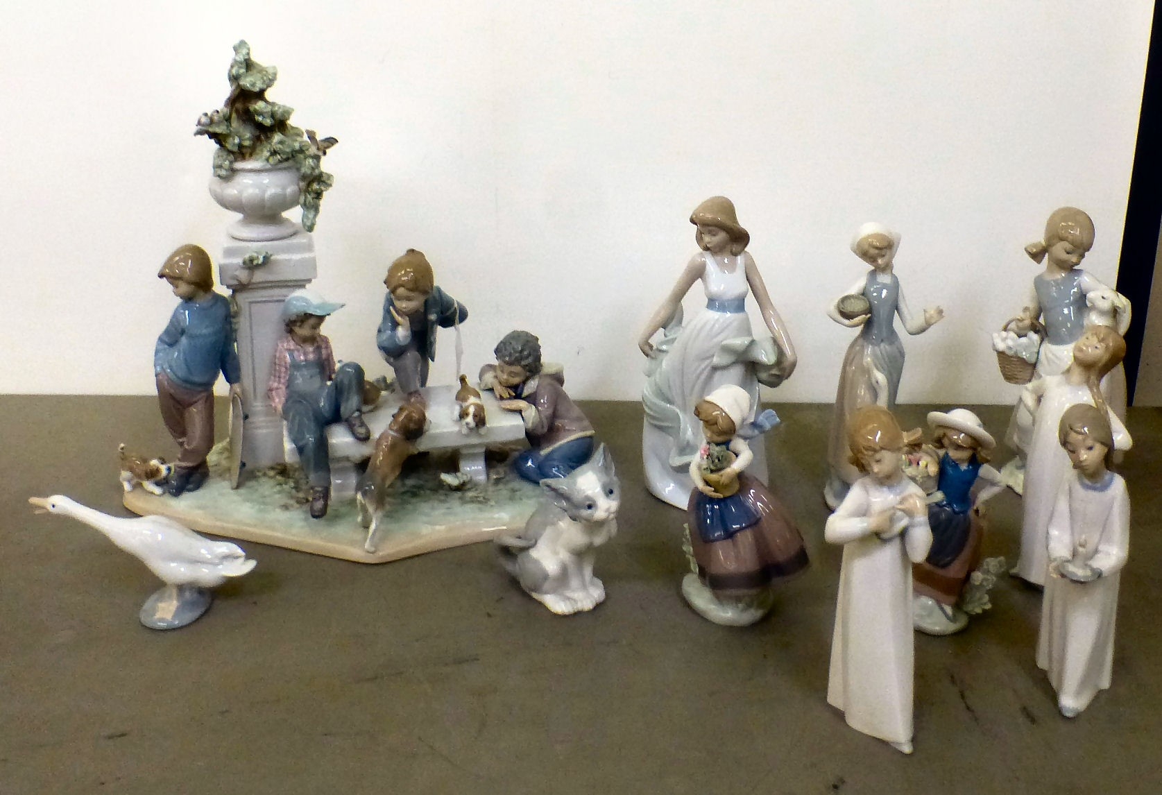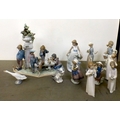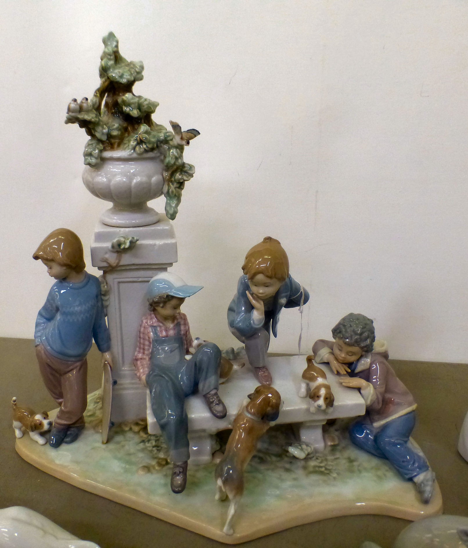 Lladro china figures: to include a figure group, depicting children and puppies 15"h