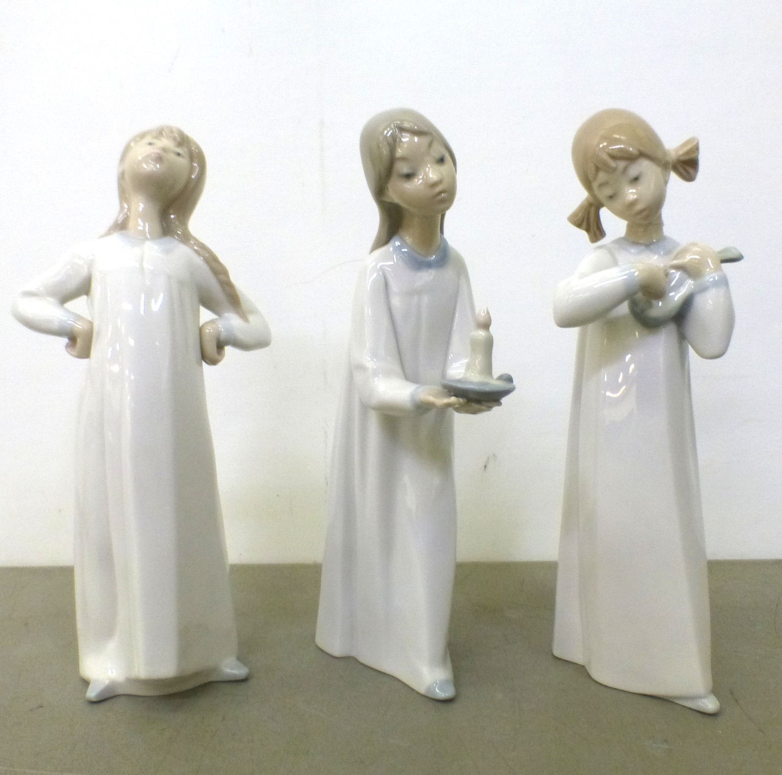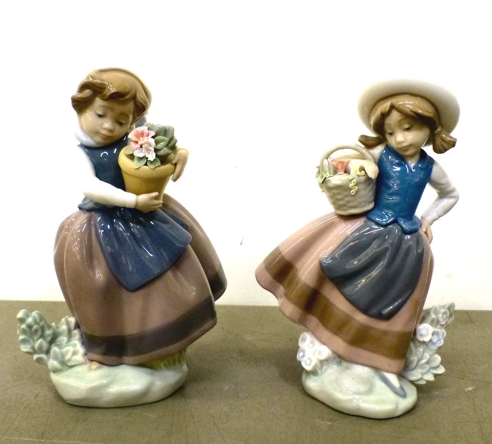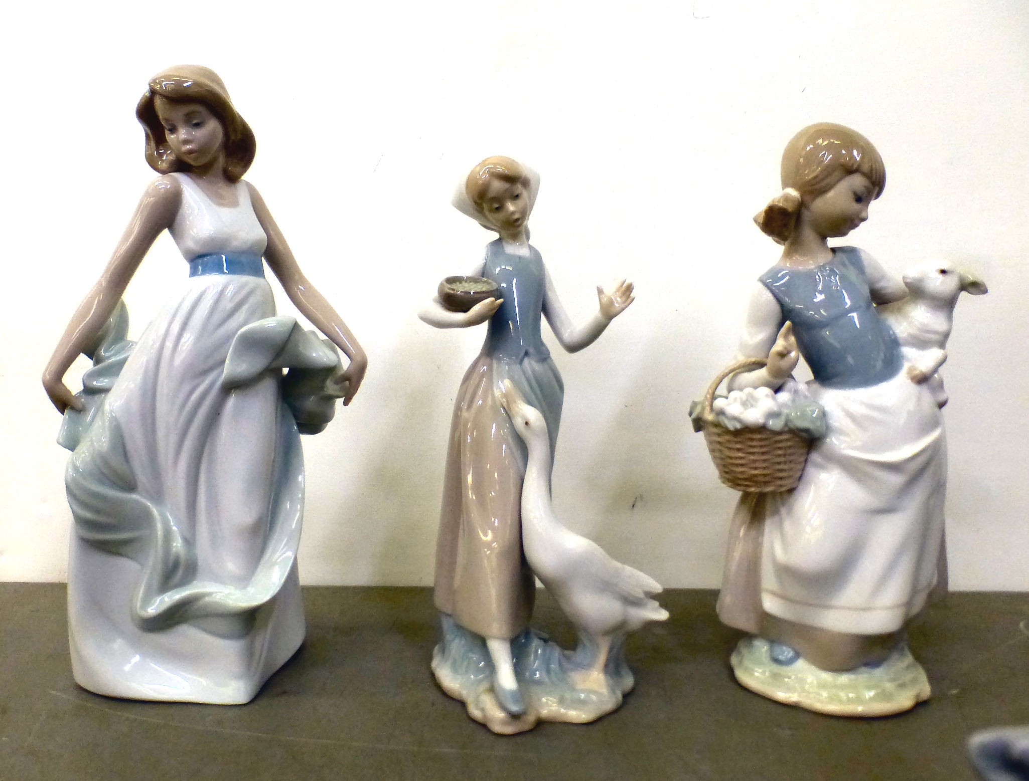 Lladro china figures: to include a figure group, depicting children and puppies 15"h