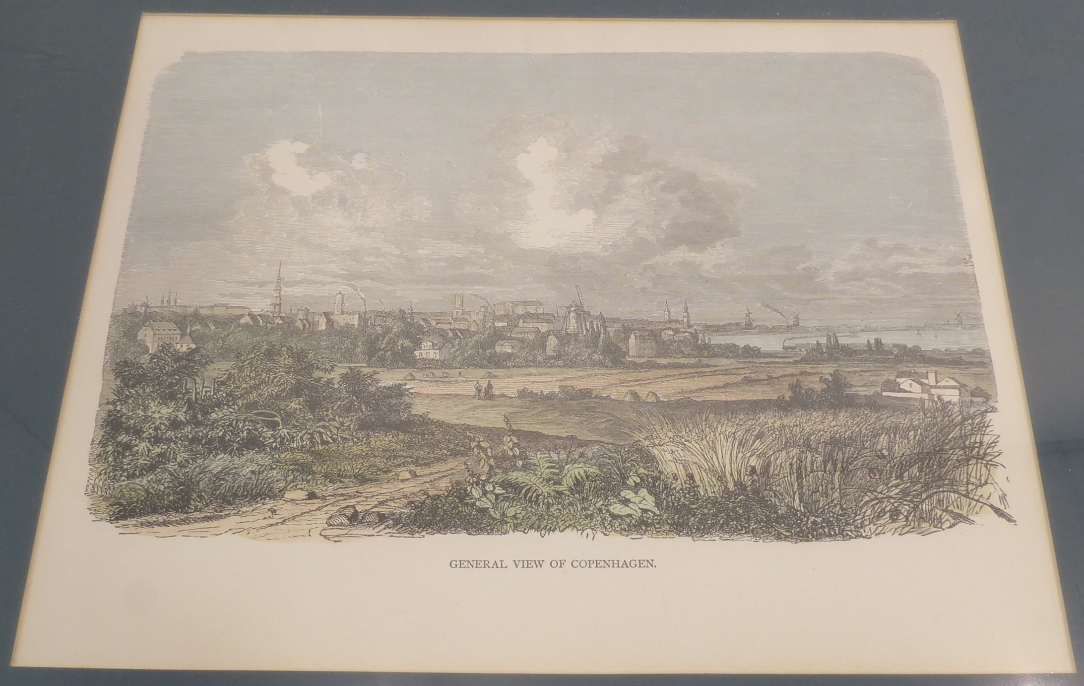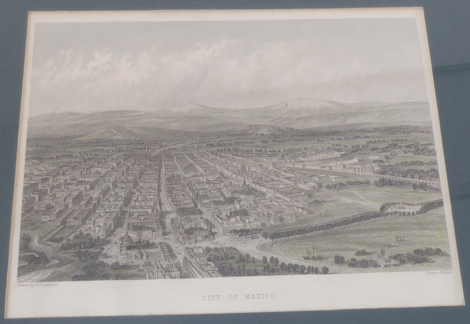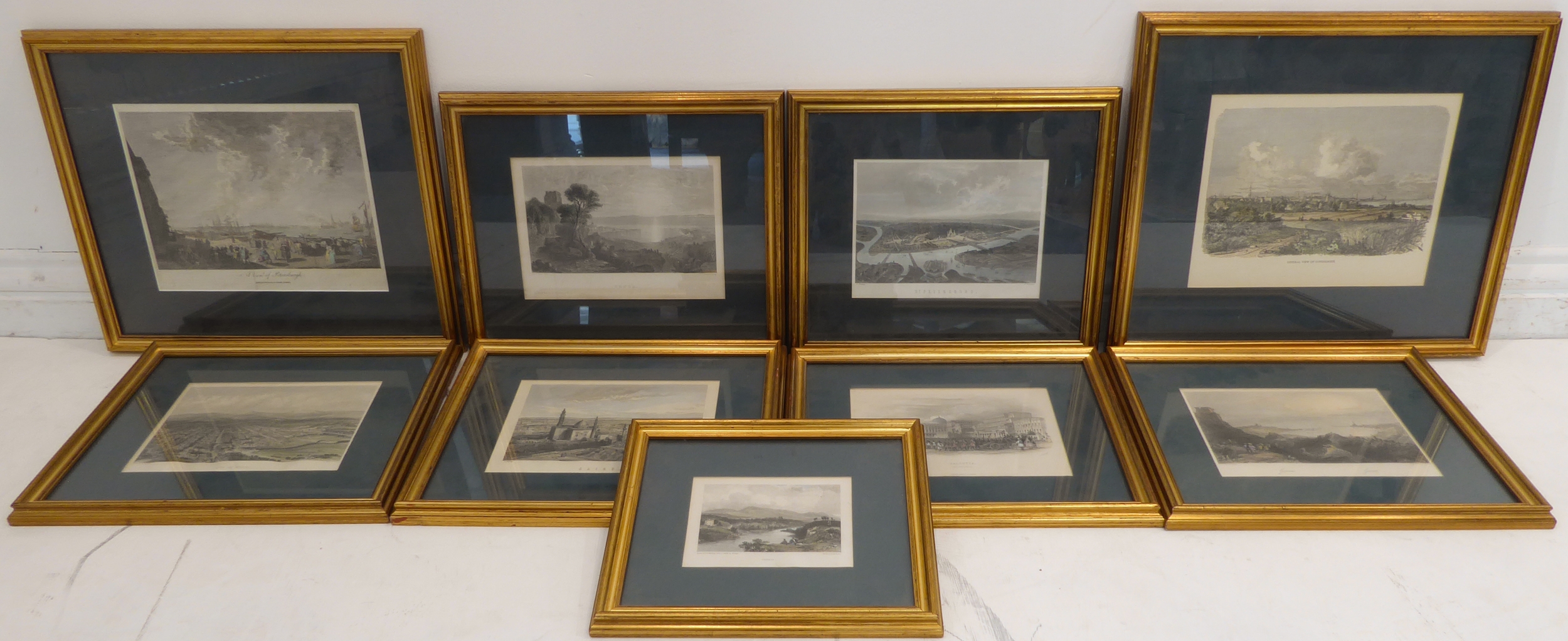 Nine hand-coloured 18th and 19th century topographical engravings to include City of Mexico, Cairo, Calcutta, Genoa, St. Petersburg and Central View of Copenhagen (finely gilt framed and glazed, and all in good condition)