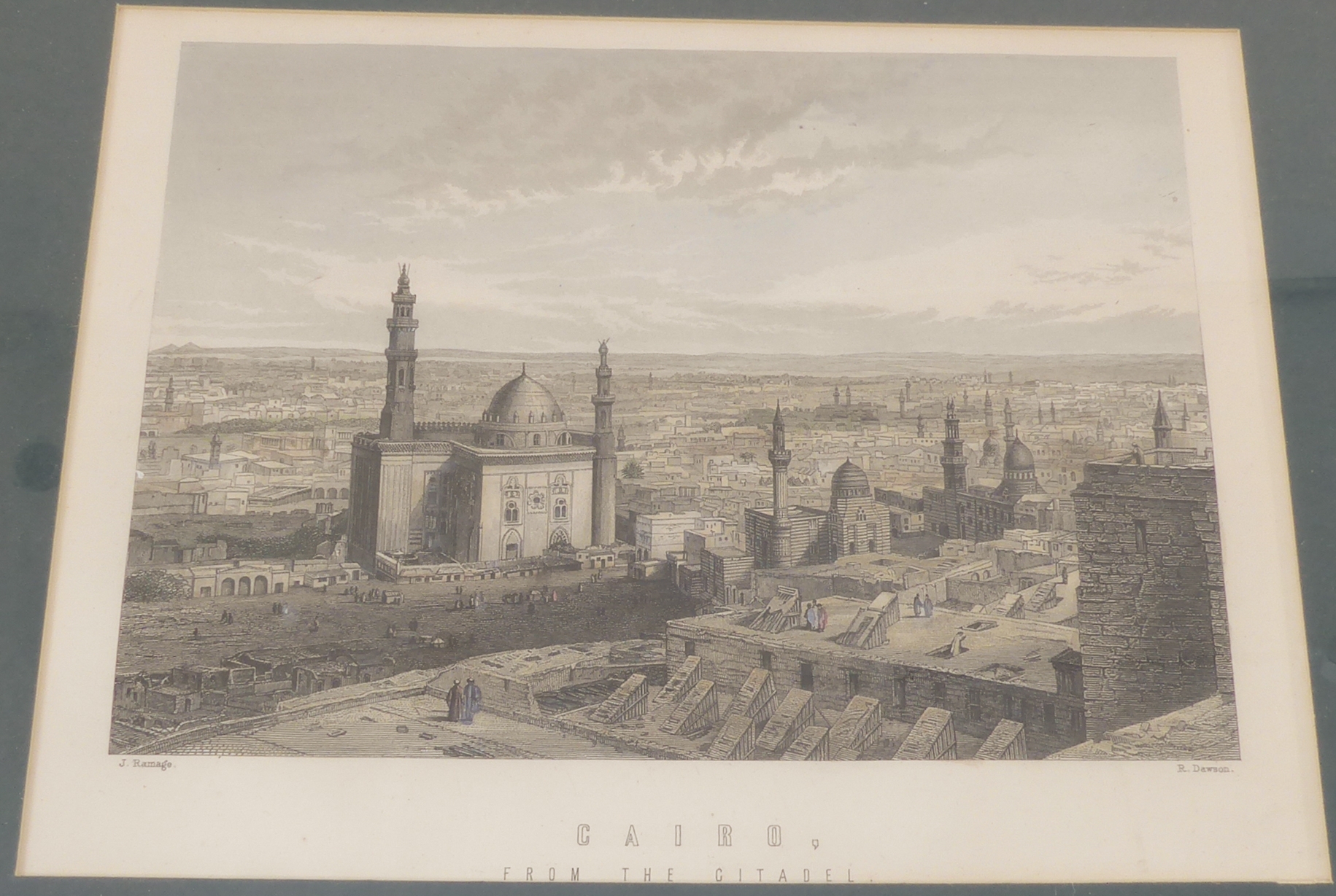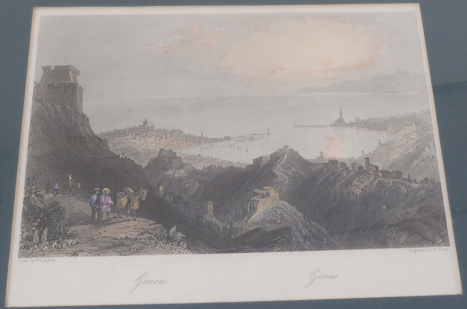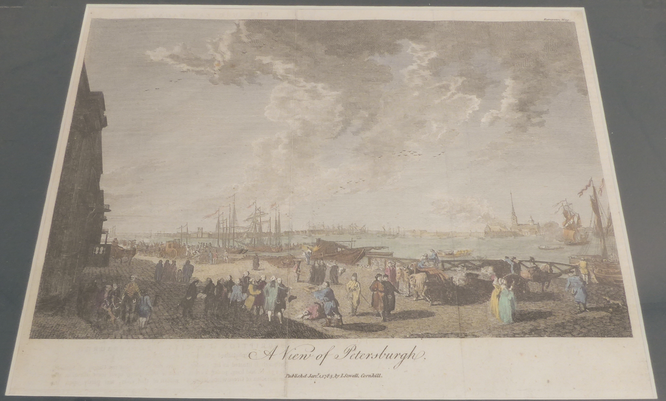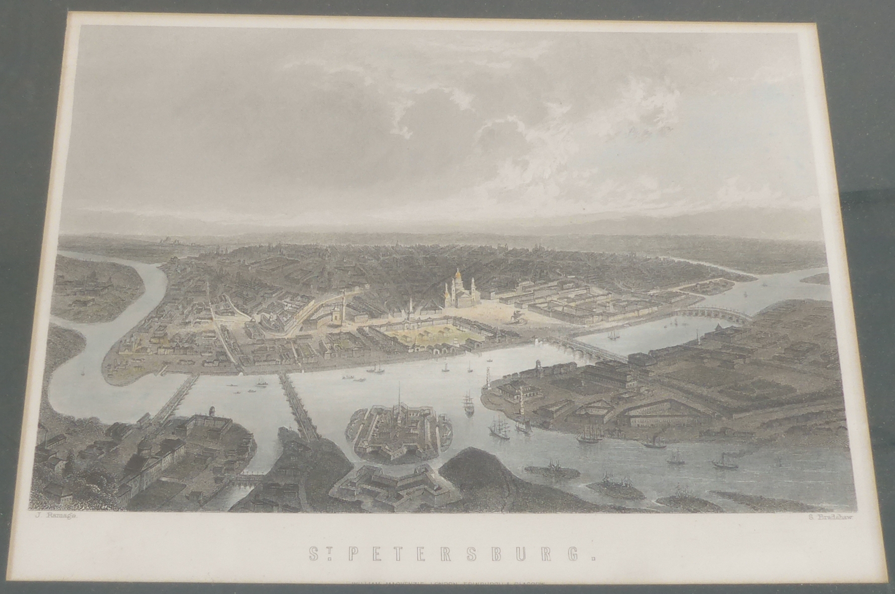 Nine hand-coloured 18th and 19th century topographical engravings to include City of Mexico, Cairo, Calcutta, Genoa, St. Petersburg and Central View of Copenhagen (finely gilt framed and glazed, and all in good condition)