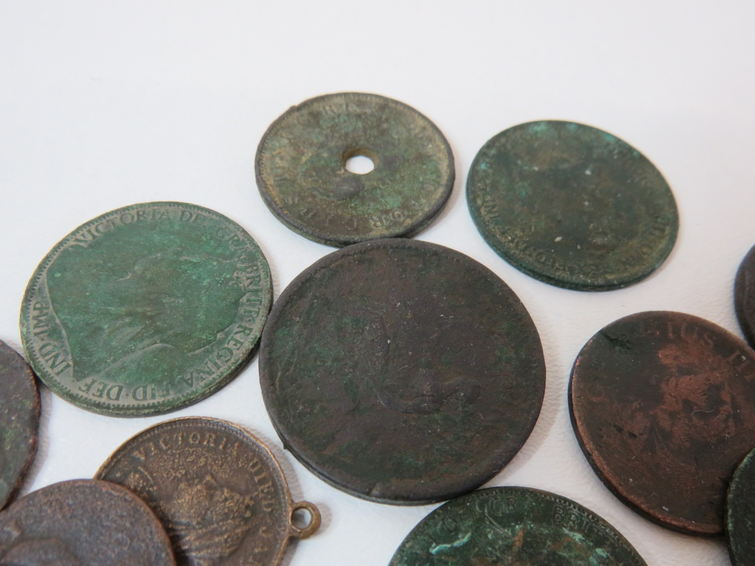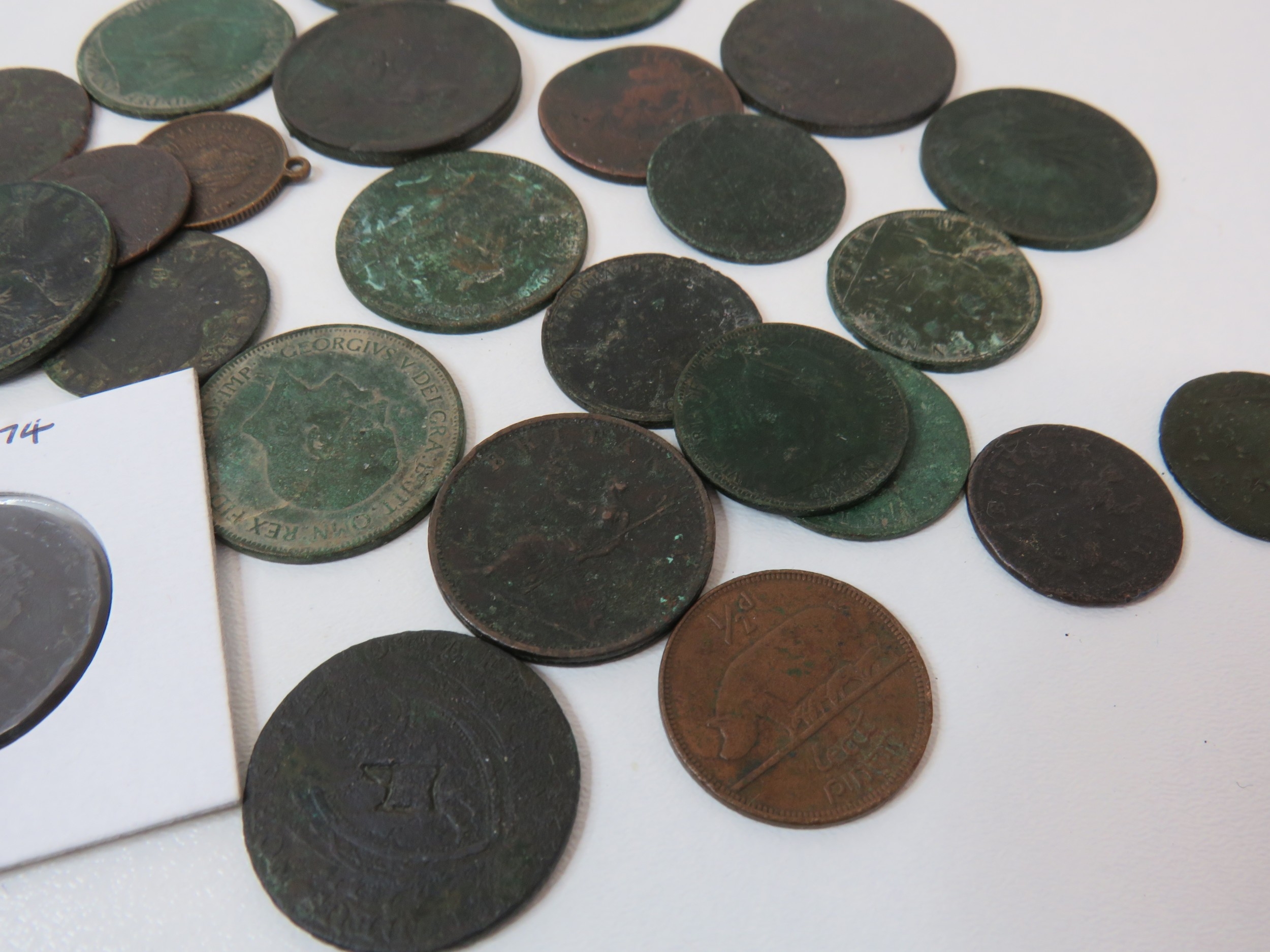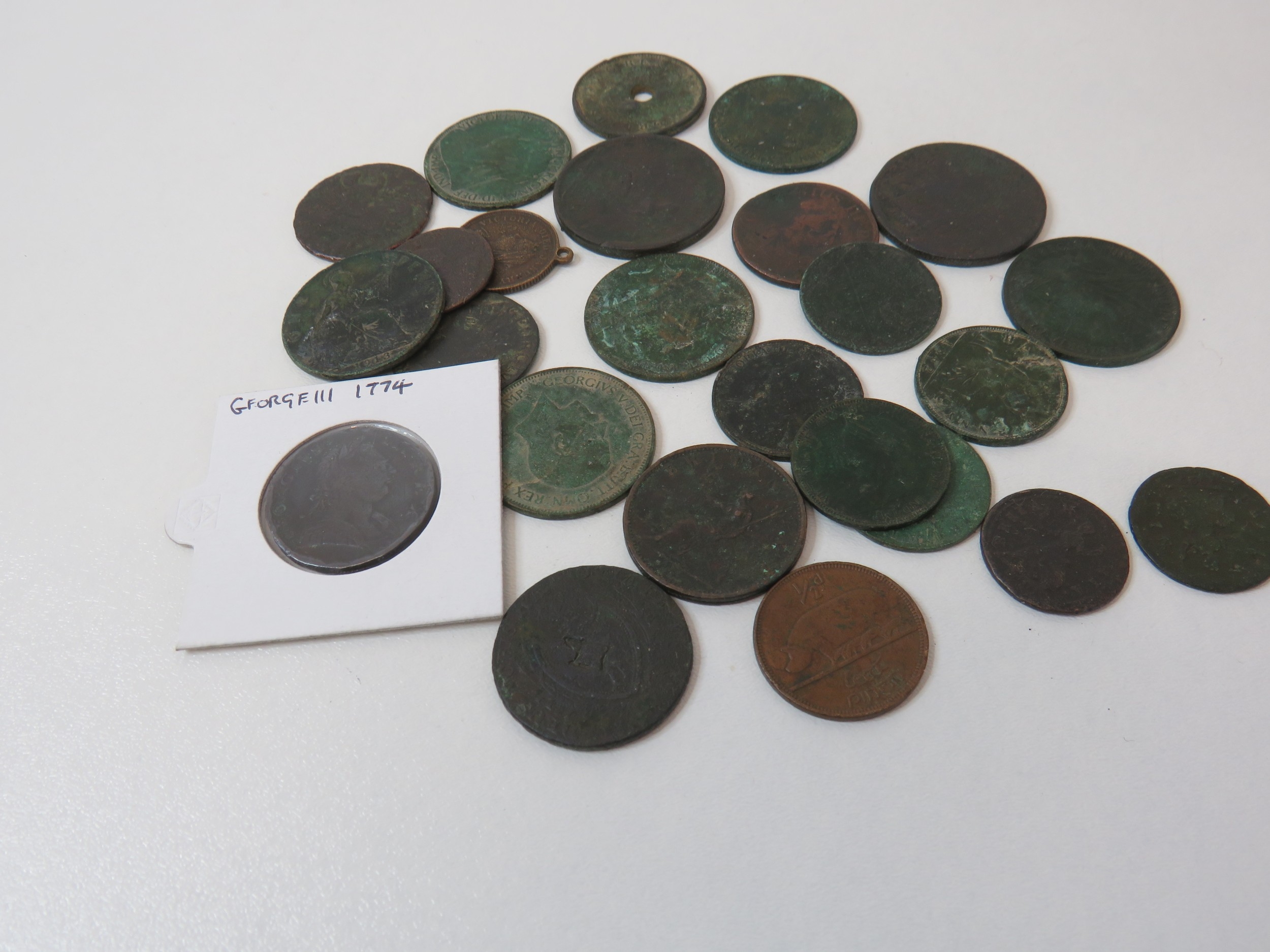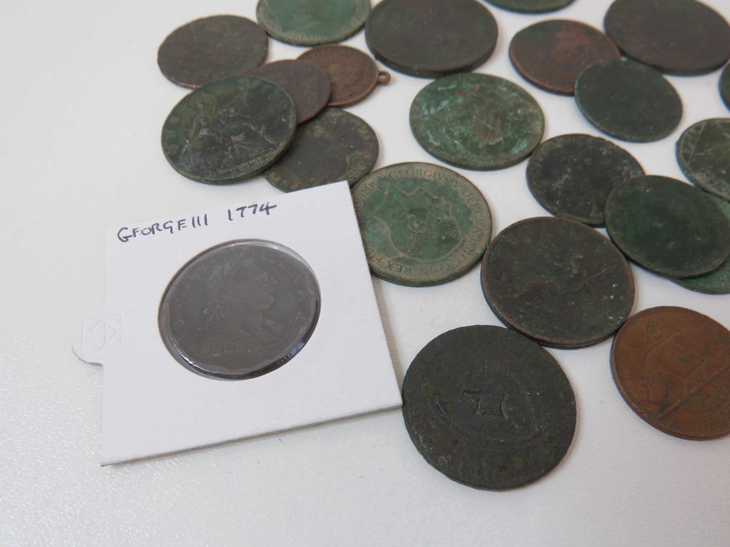 George III 1774 half penny mounted and other Georgian coins and tokens