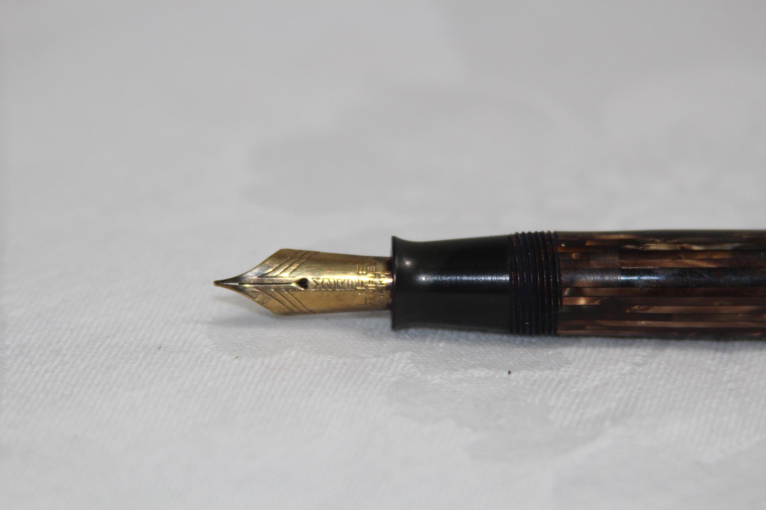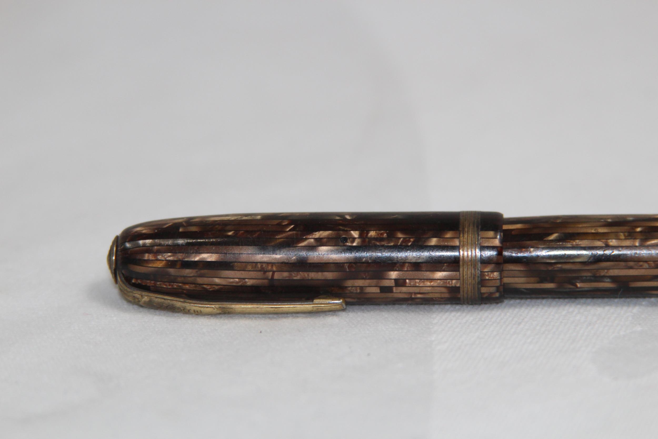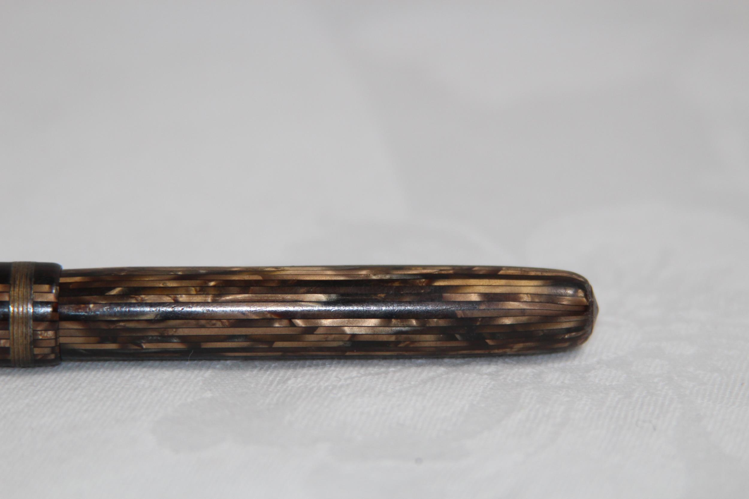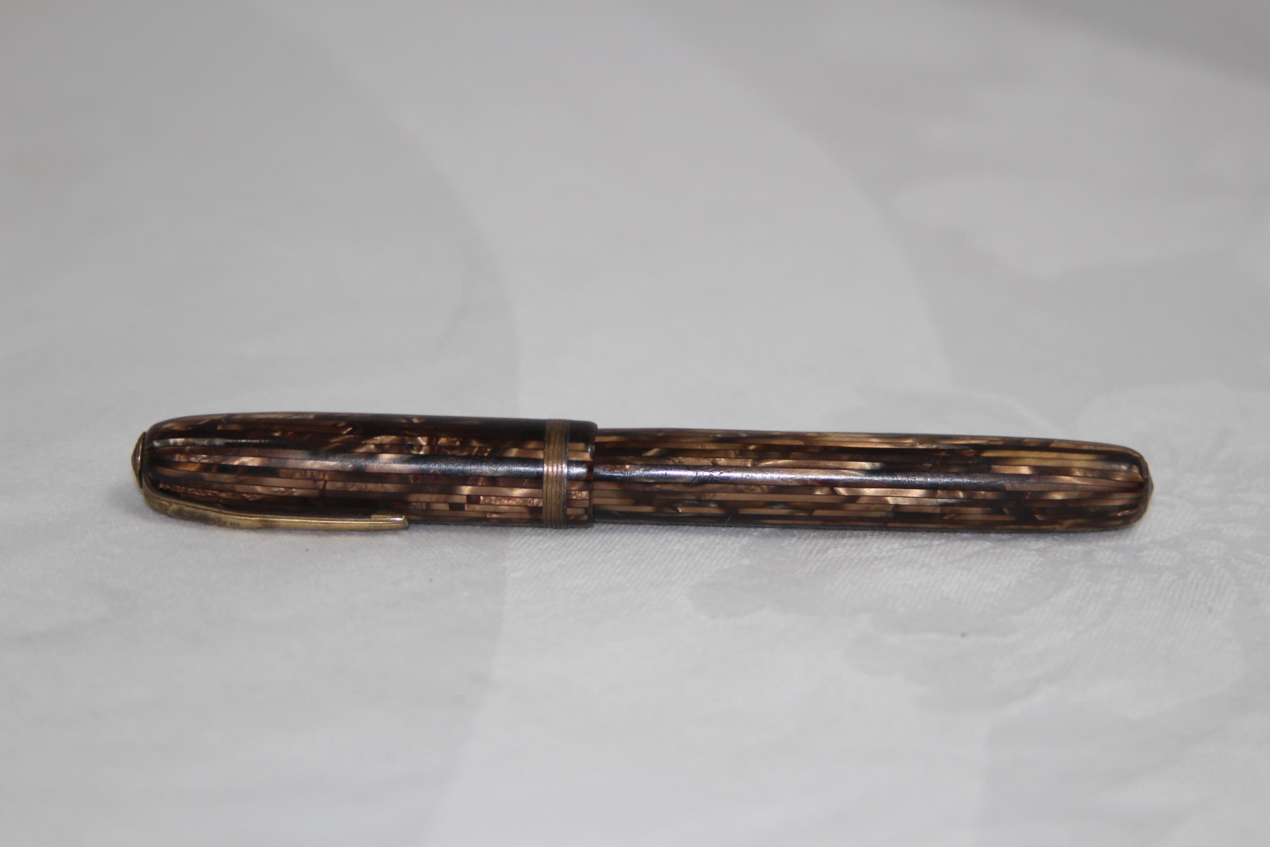 VINTAGE MOORE 14 KT GOLD NIB FOUNTAIN PEN, WITH MOTTLED EFFECT INLAID BODY, NIB ALSO MARKED LIFE MANIFLEX
