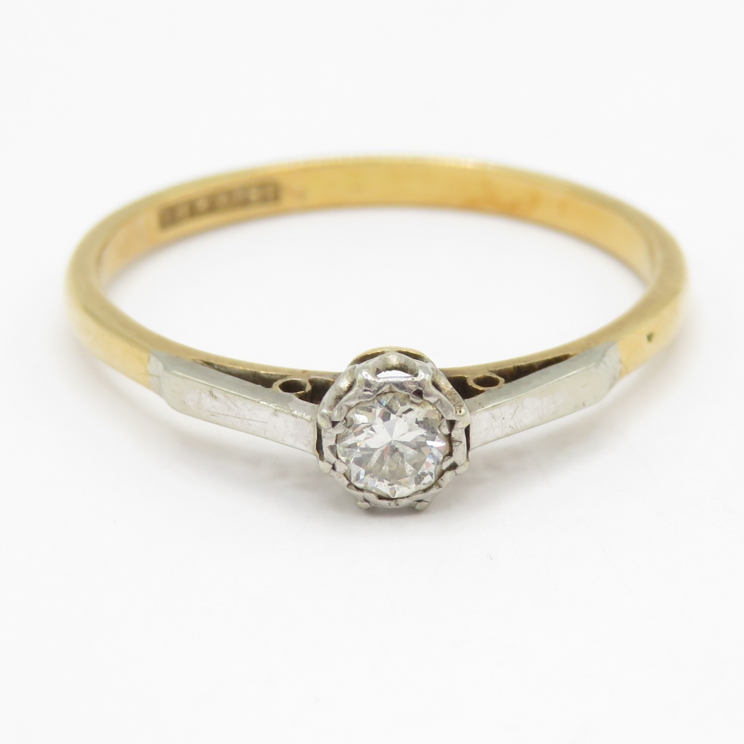 18ct gold and platinum diamond solitaire ring (2.1g) Size R