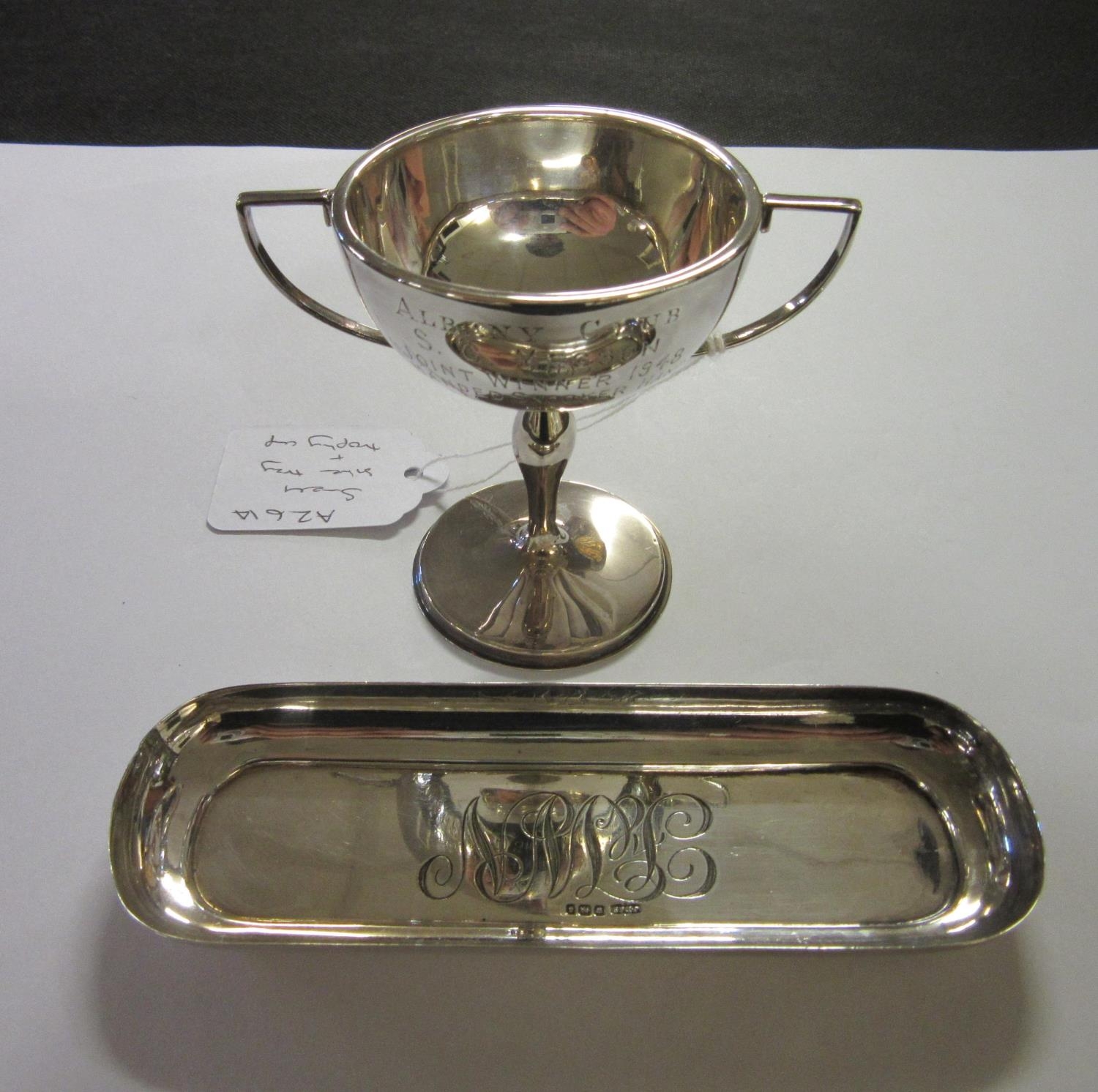 SMALL SILVER TRAY AND TROPHY CUP
