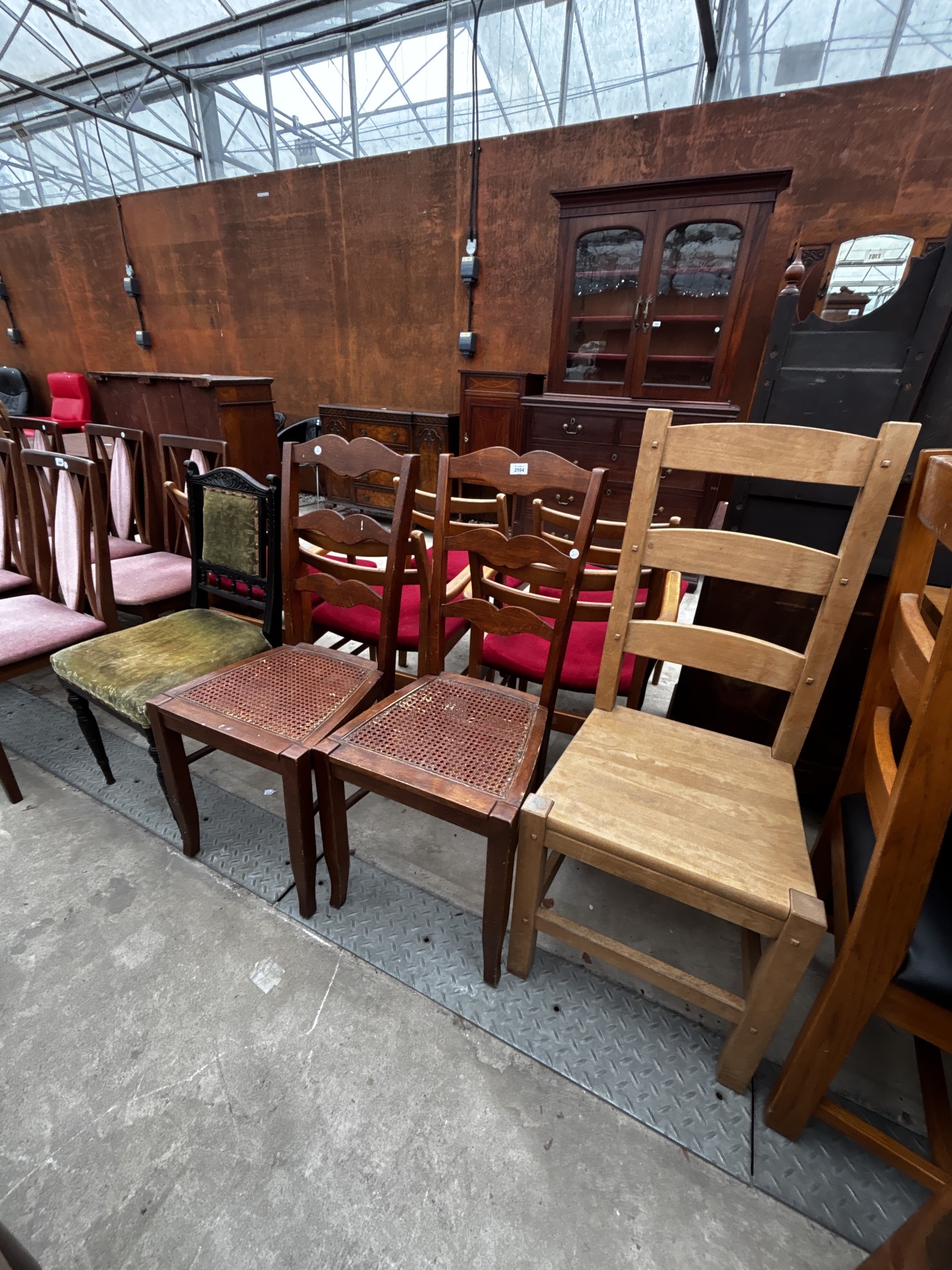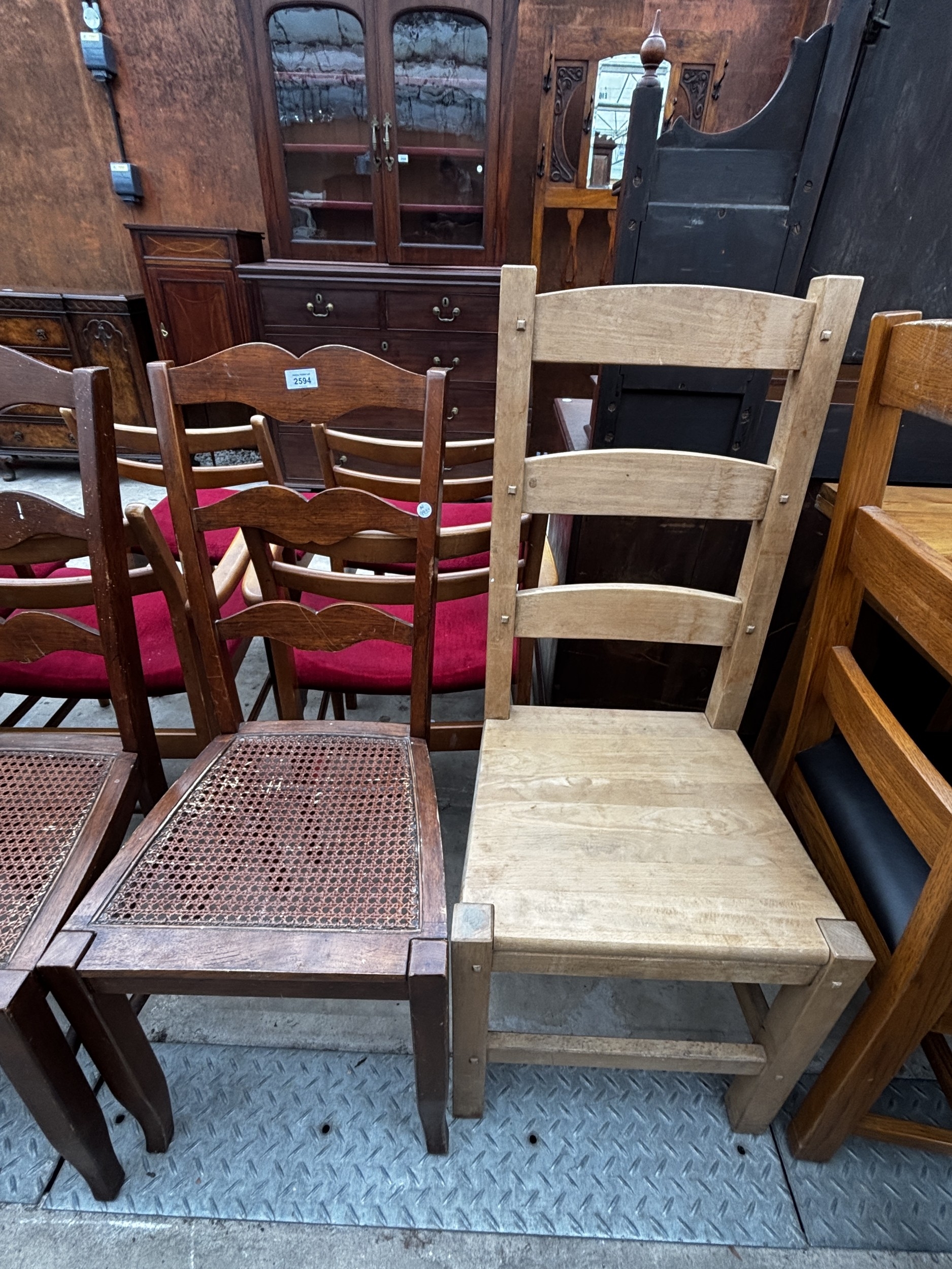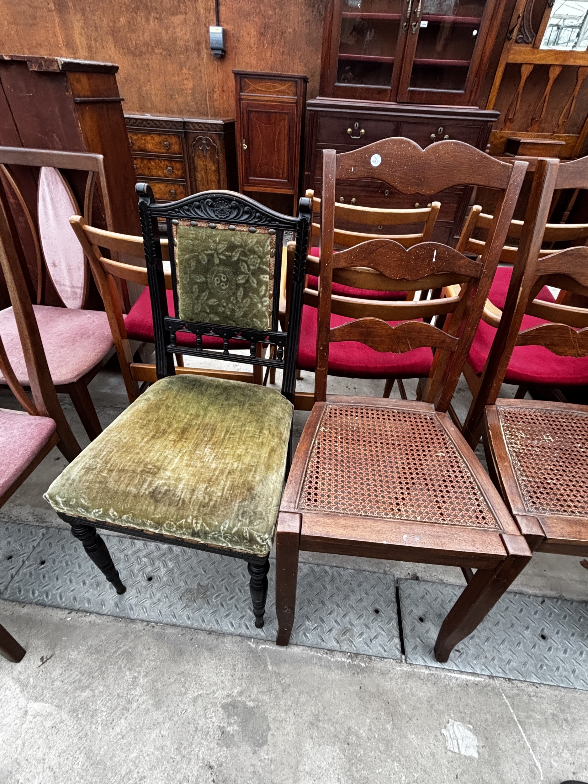 A PAIR OF LADDER BACK BEDROOM CHAIRS AND EBONISED PARLOUR CH...