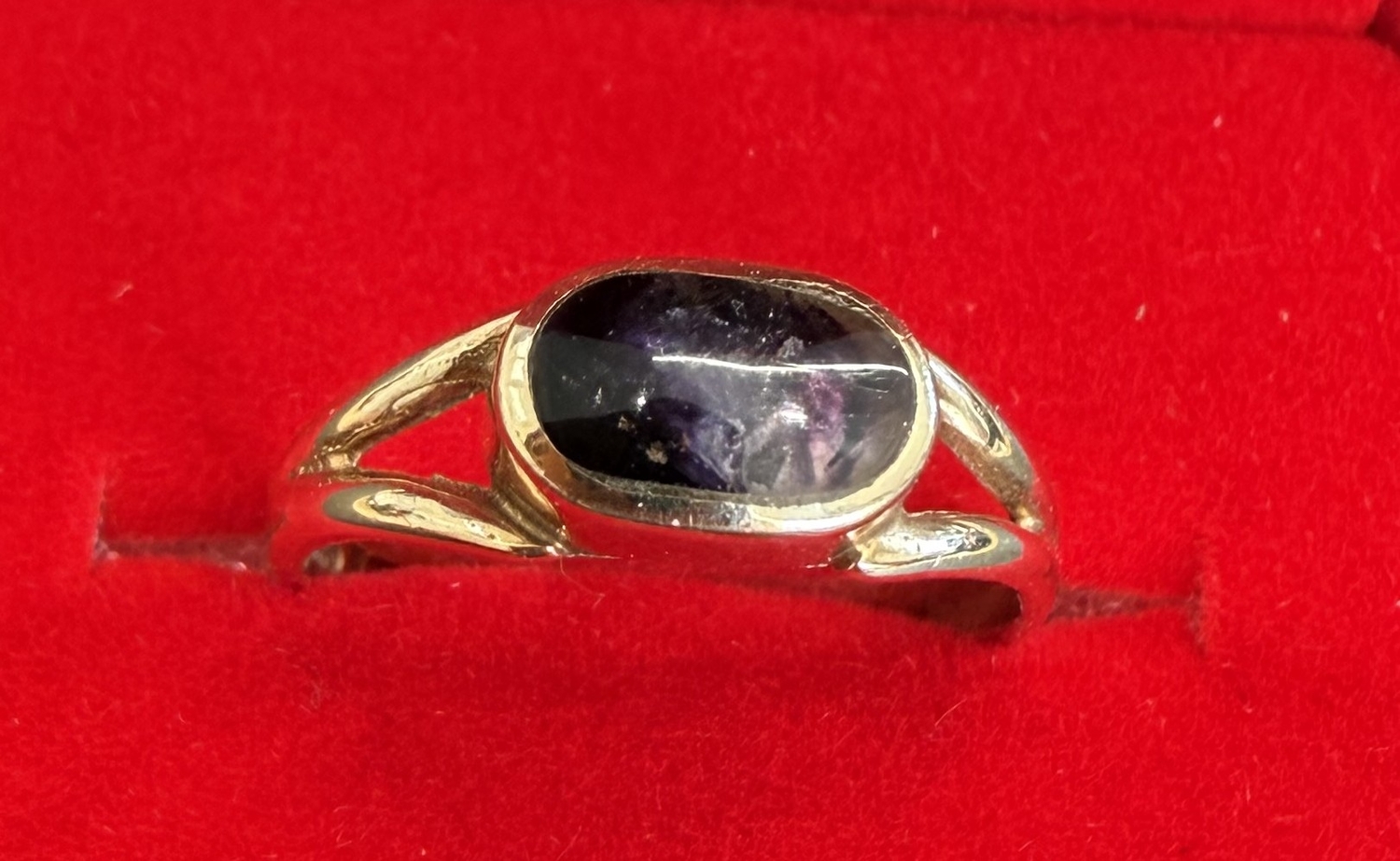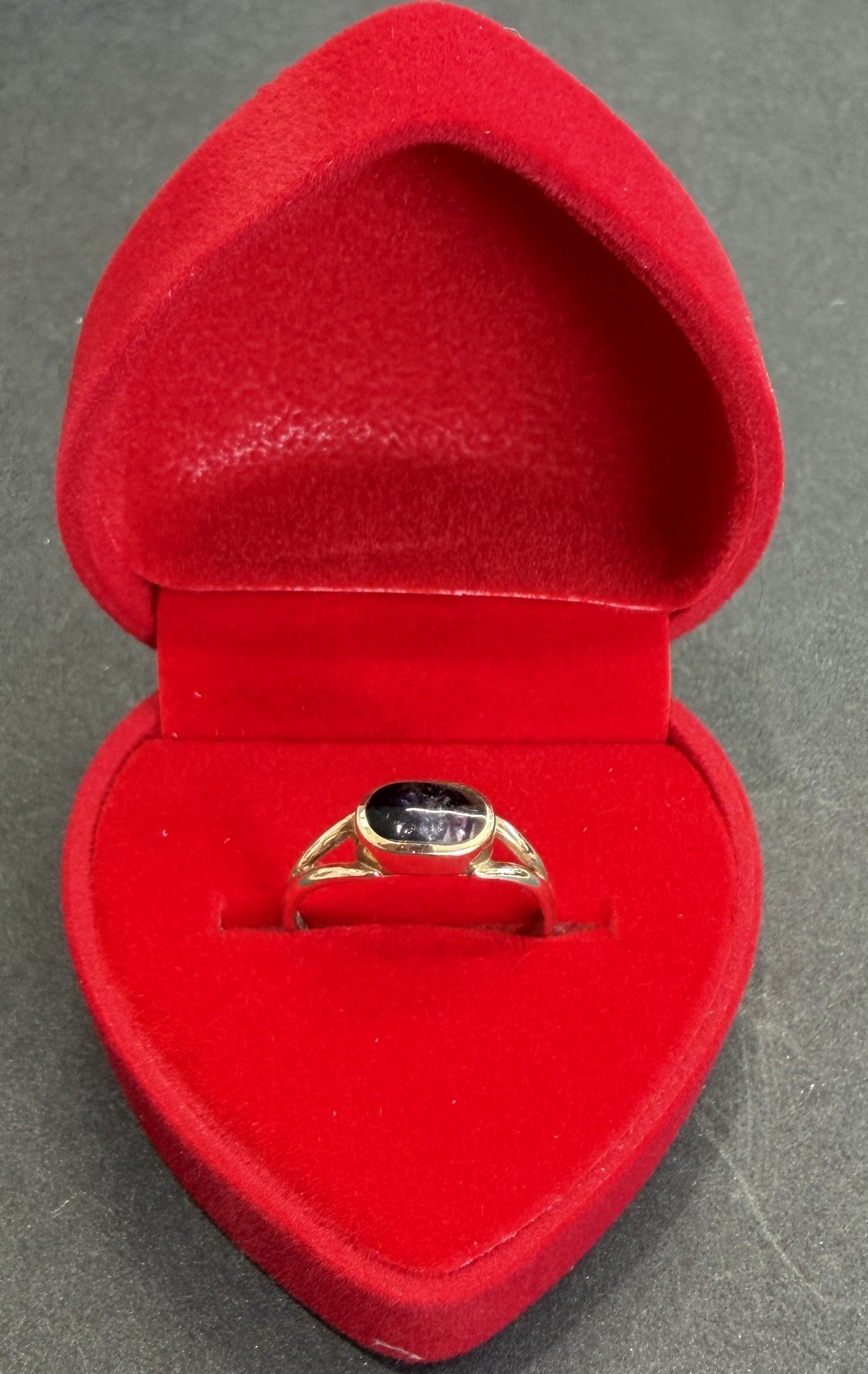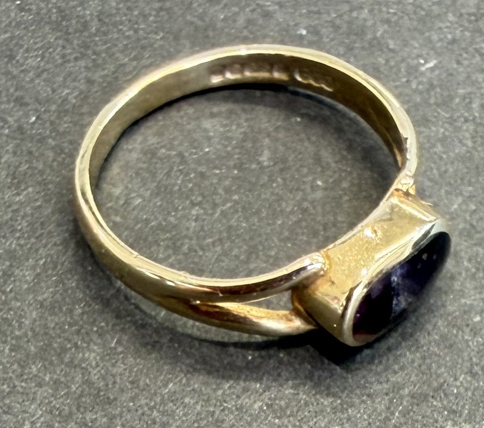 Jewellery : Attractive small 9ct Gold ring with dark blue/purple stone 1.6g Size J clear English hallmark PLEASE MAKE SURE YOU READ TERMS AND CONDITIONS REGARDS PAYMENT OPTIONS, CARD NOT PRESENT TRANSACTIONS NOT ACCEPTED ON GOLD JEWELLERY OR WATCHES.