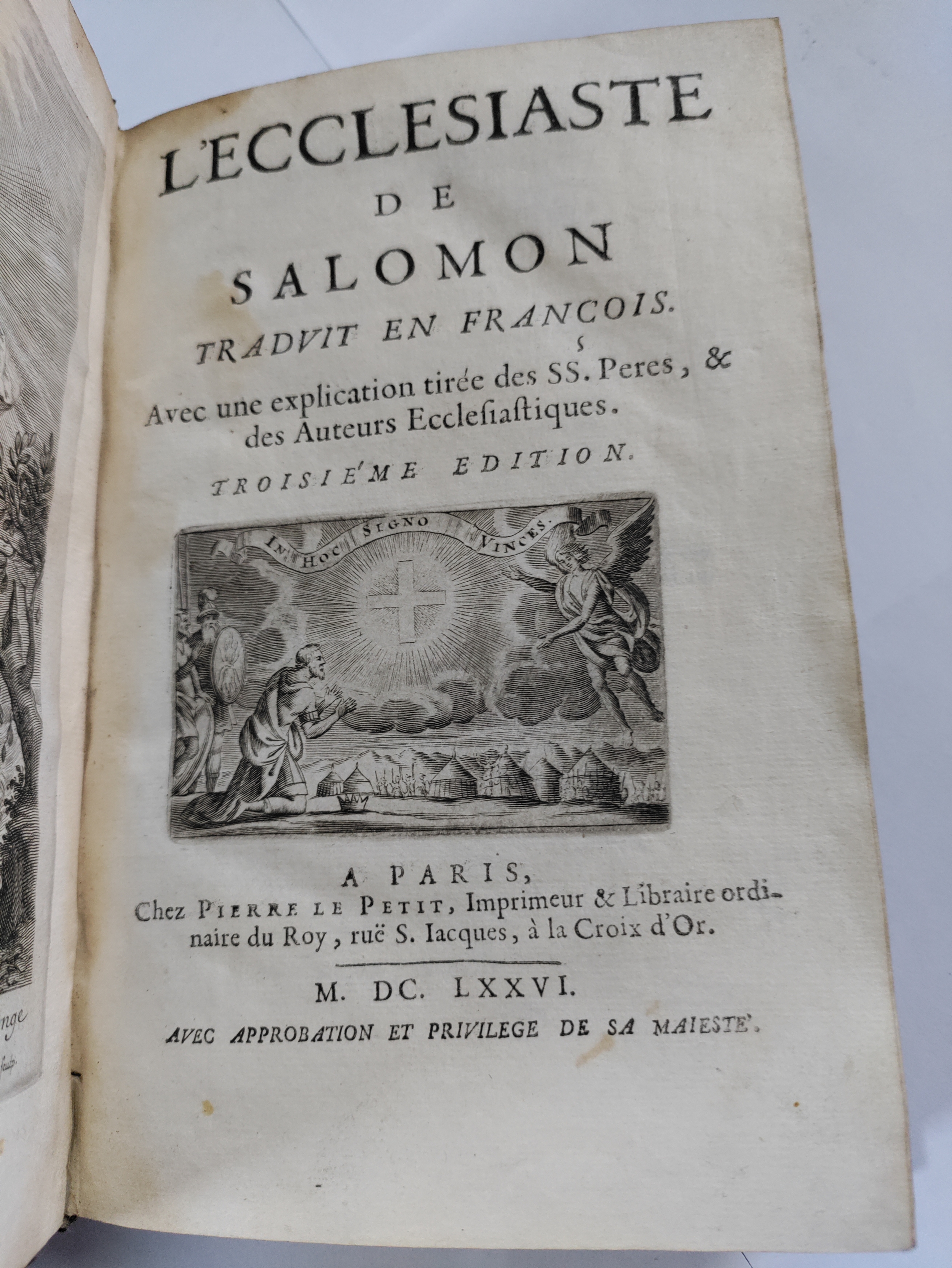 An antique 16th century book titled L'Ecclesiaste De Salomon Tradvit en Francois. Dated 1676.