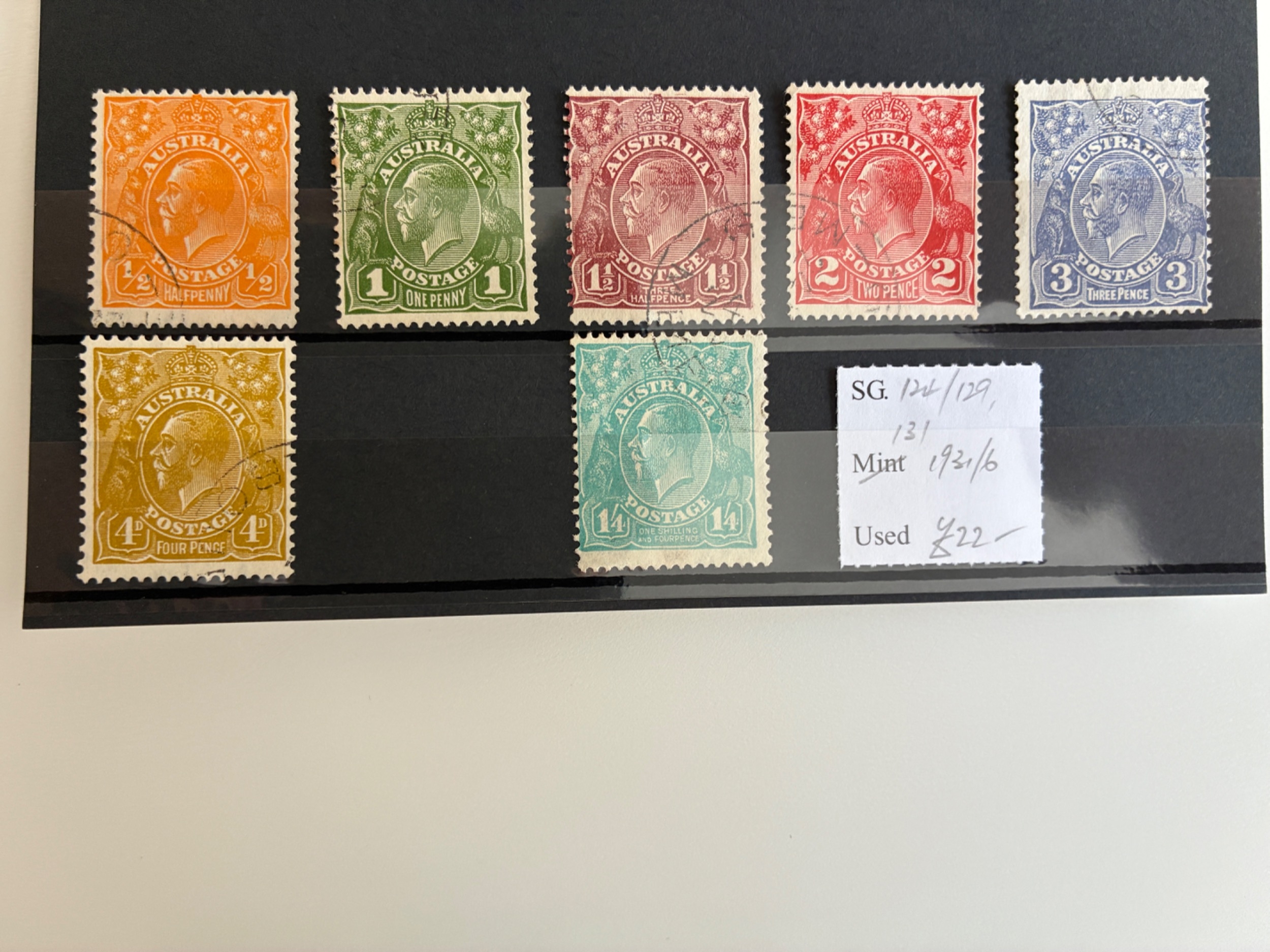 Australia 1931-6 perf 13.5 x 12.5 set minus 5d, vfu (SG 124/9, 131) Cat £22