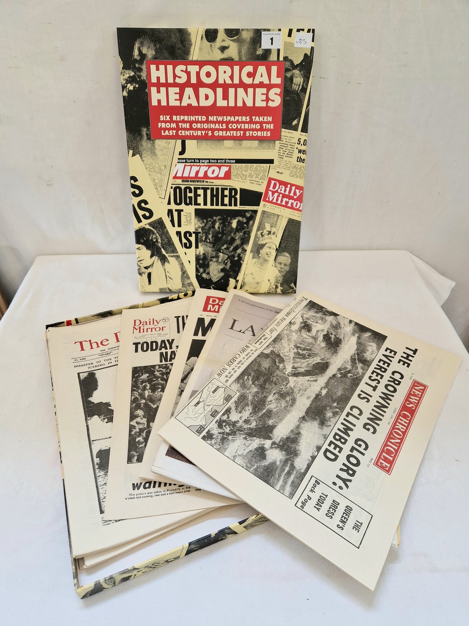 Box set of reproduction newspapers, historical headlines from the 20th century