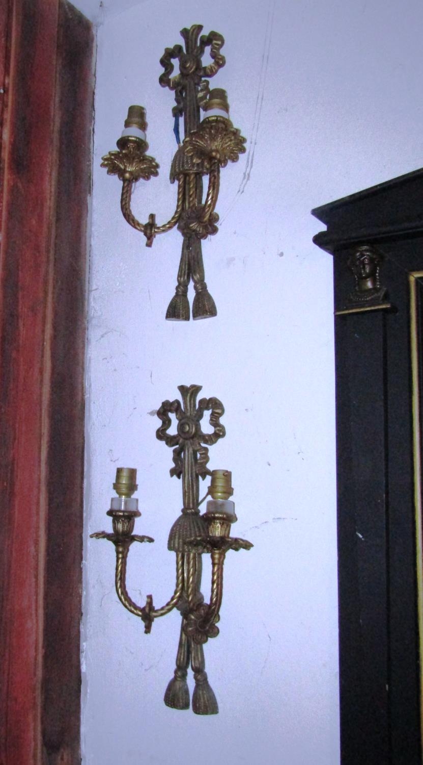 Pair of Antique Ribbon and Swag Motif Twin Sconce Wall Lights Each Approximately 14 Inches High